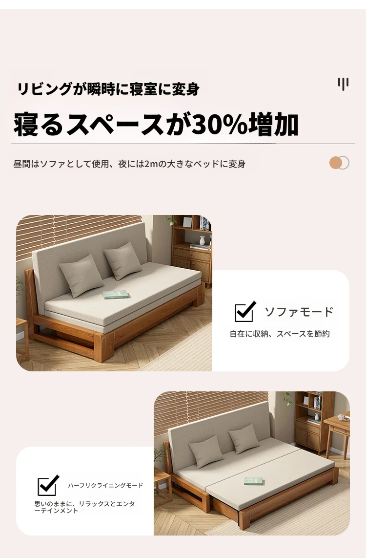 1.8メートル無収納(無塗装の原木)8cmマットレス+クッション付き