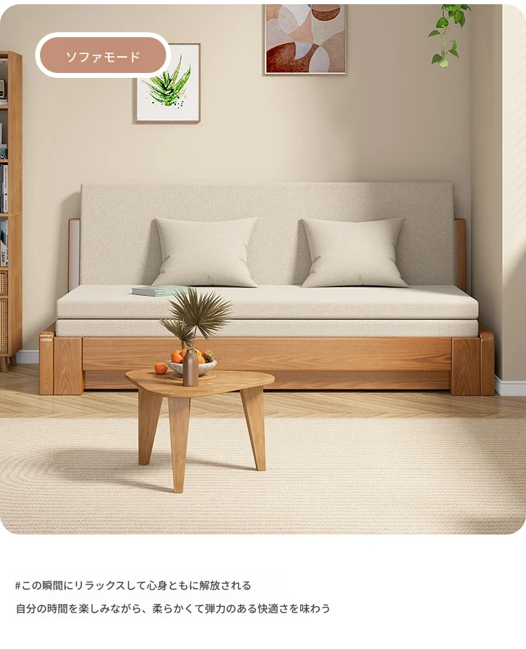 1.2メートル収納タイプ(無塗装の原木)8cmマットレス+クッション付き