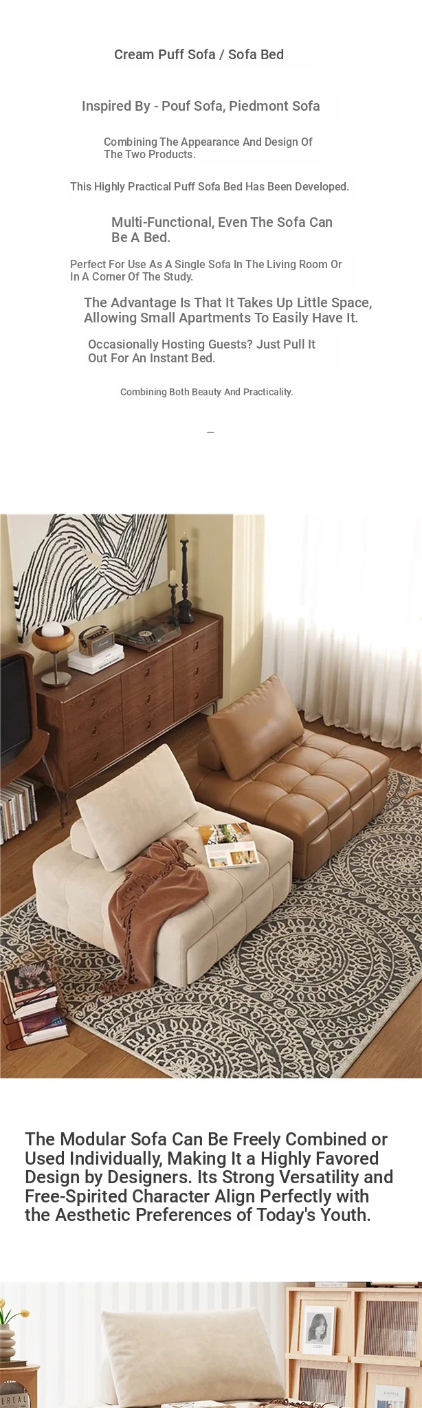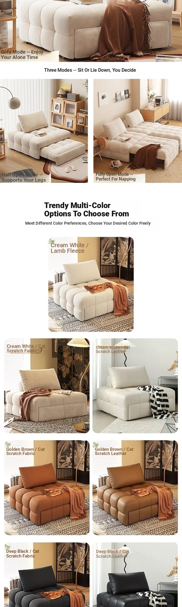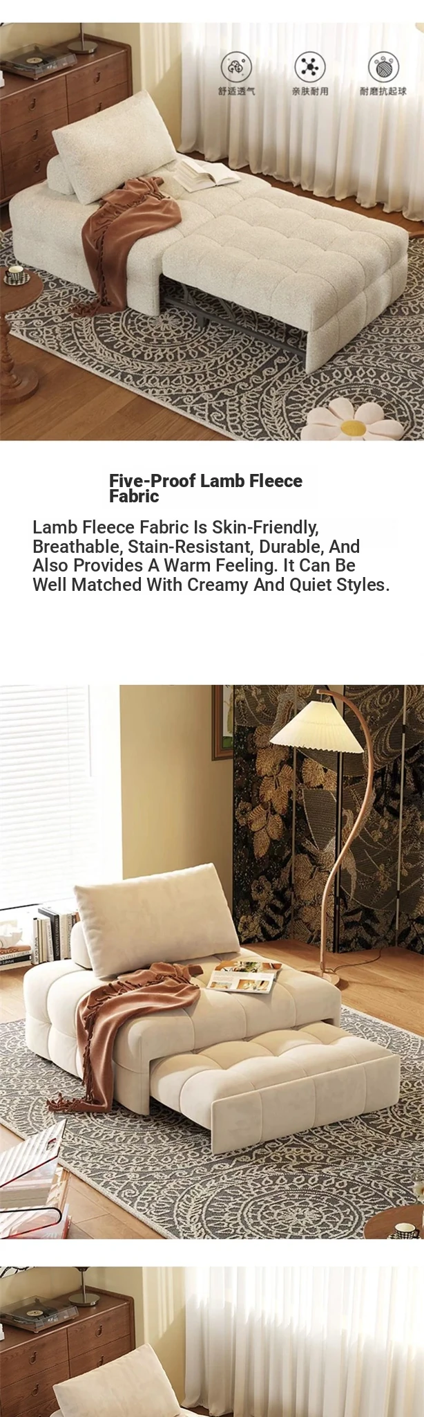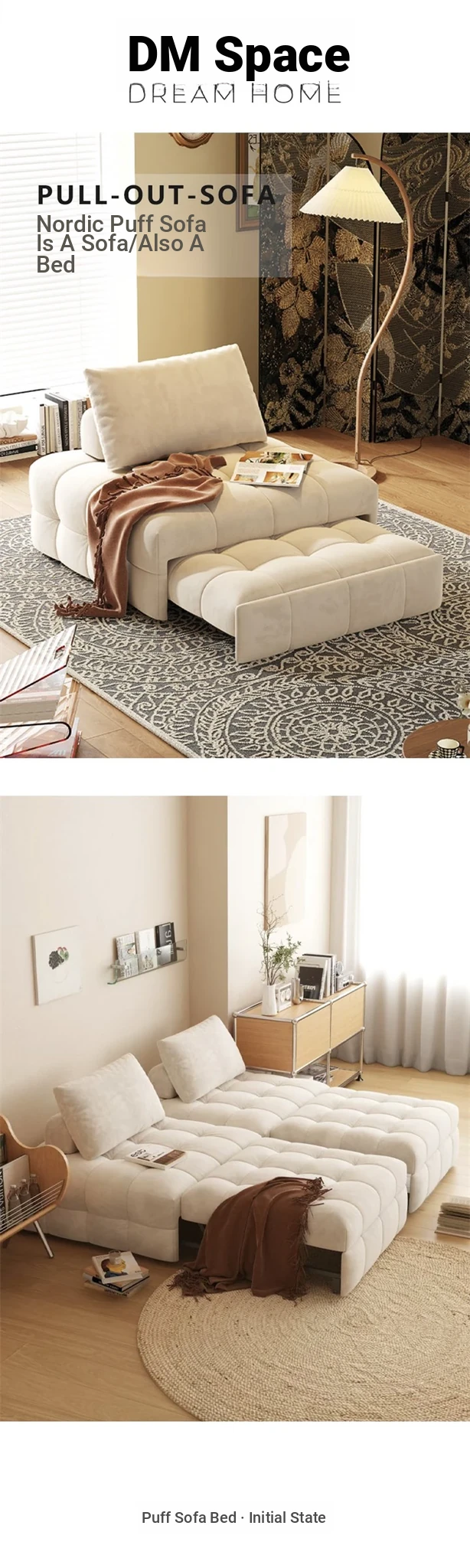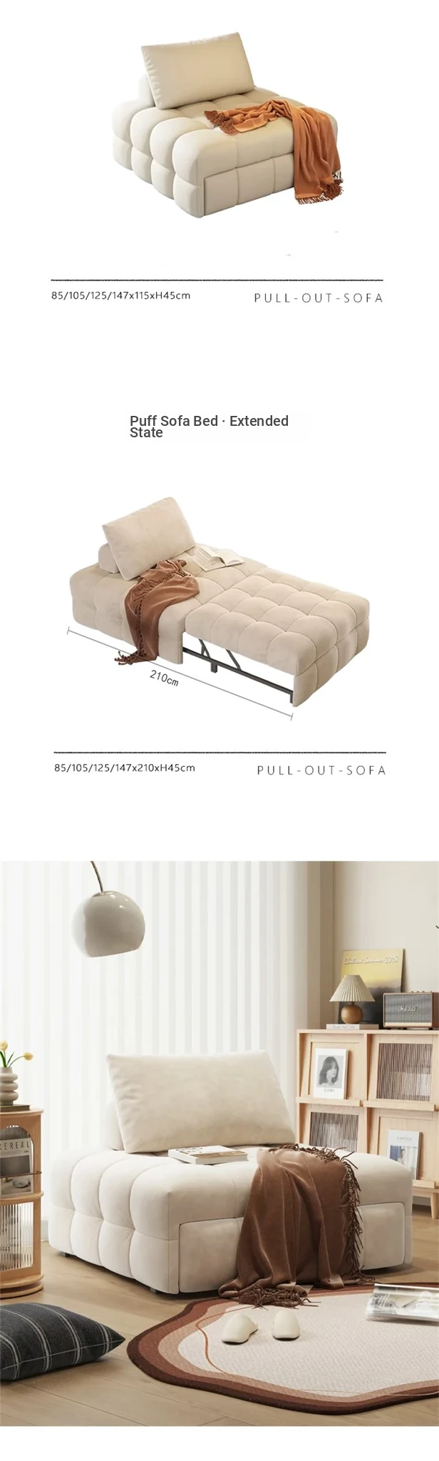 Cream Puff Sofa Bed - Versatile and Space-Saving Faux Fur Sleeper Sofa, Ideal for Small Living Spaces, Perfect for Relaxation and Comfort