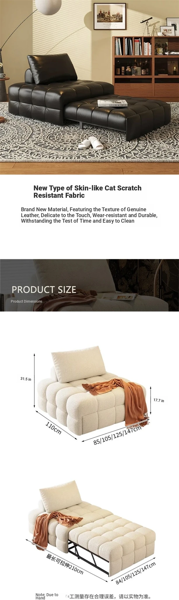 57.87in*43.31in*17.72in sofa bed can stretch to 78.74in