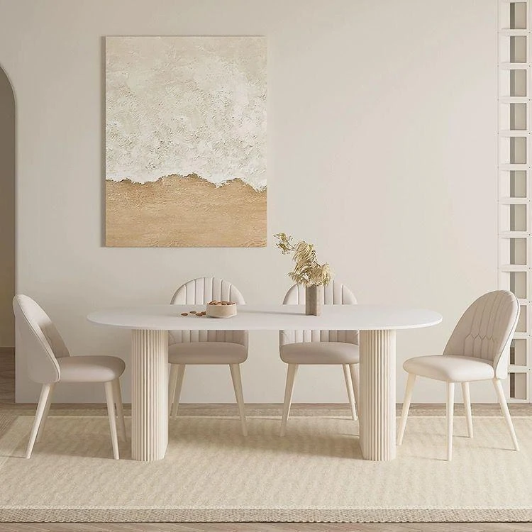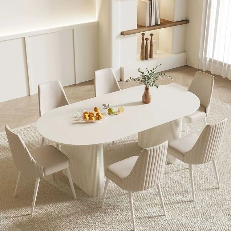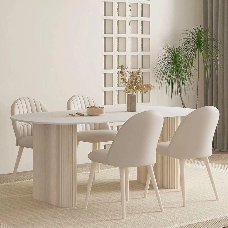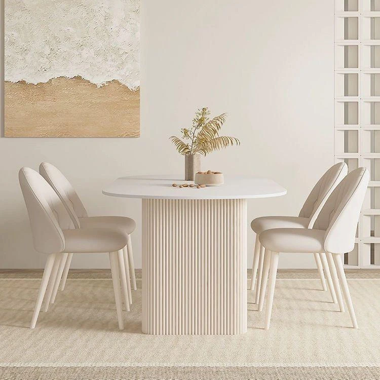 クリーミーなホワイトラミネートテーブル - モダンでシンプルなデザイン、軽やかなラグジュアリー感!小さなスペースにもぴったりなフレンチスタイルのコンビネーション。おしゃれな食卓で、特別なひとときを演出します。