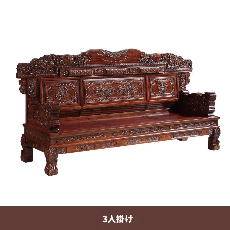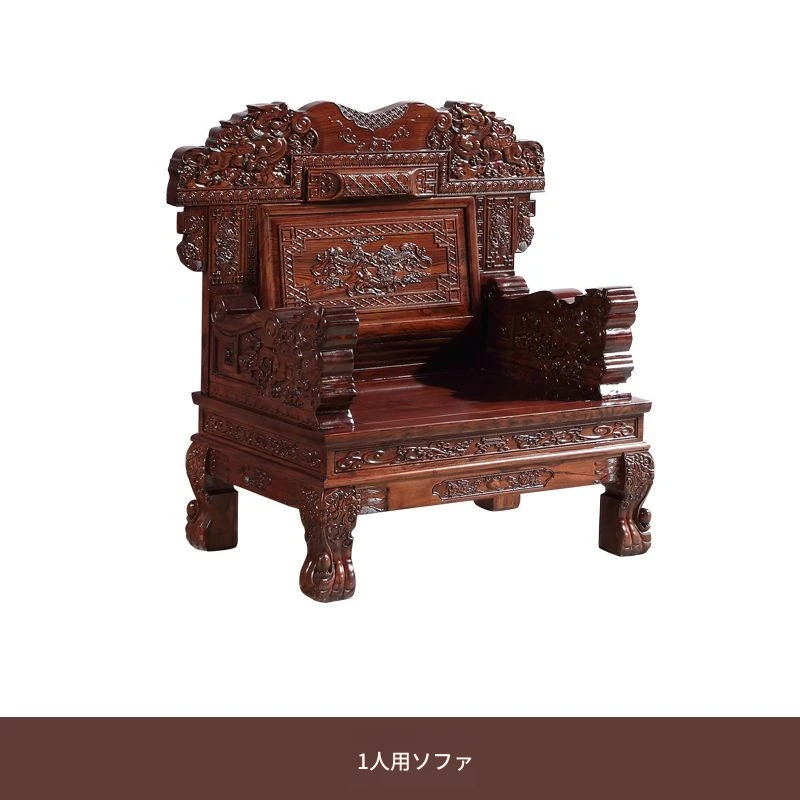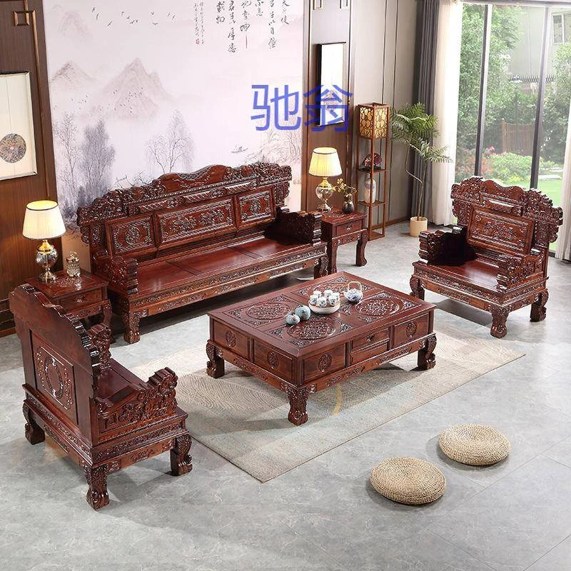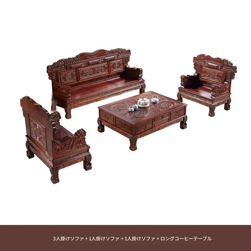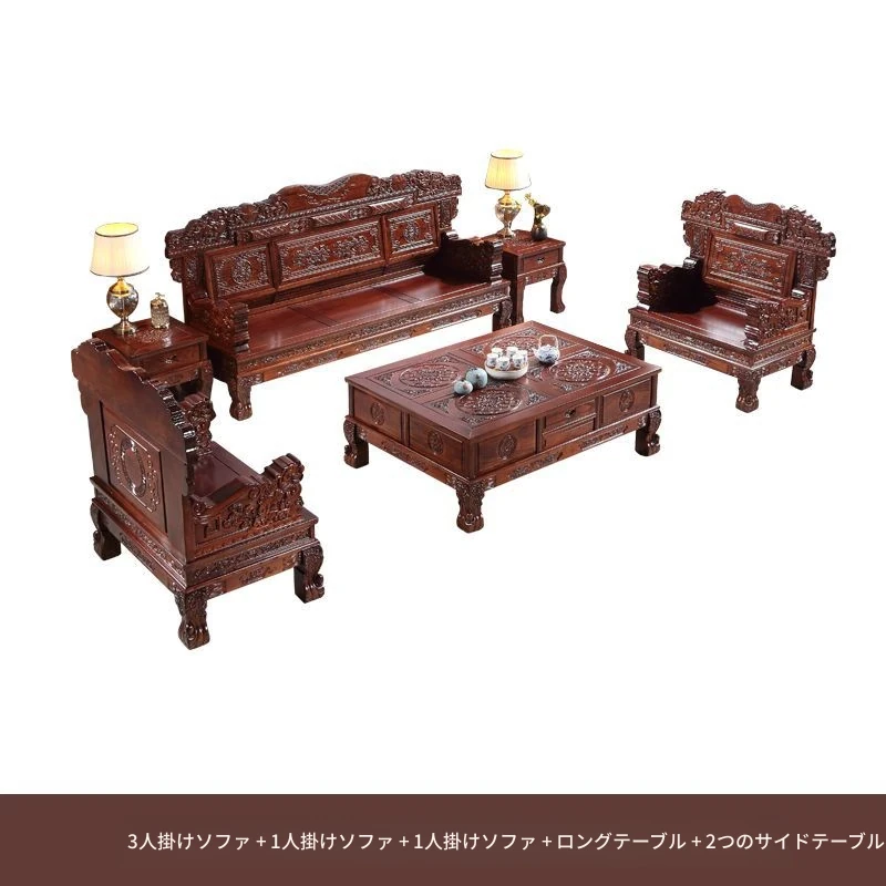 CWF中式古典彫刻ソファセット - 大型リビングに最適!老榆木と花梨の贅沢な全木製デザインで、古き良き中国の美をお楽しみください。高品質な仕上げで、居心地の良い空間を演出します。
