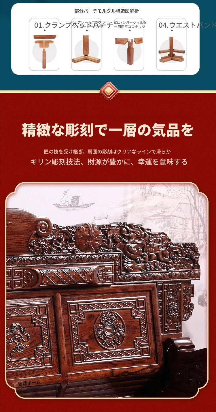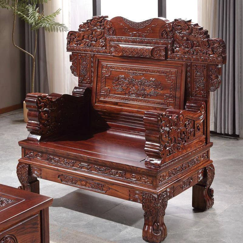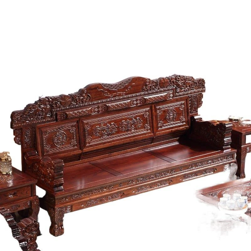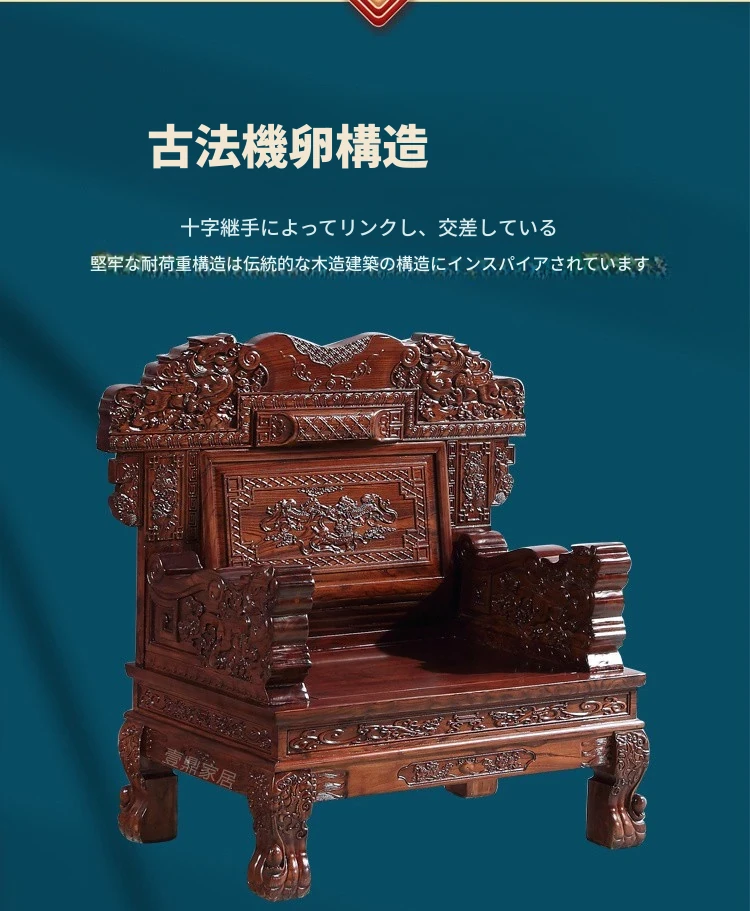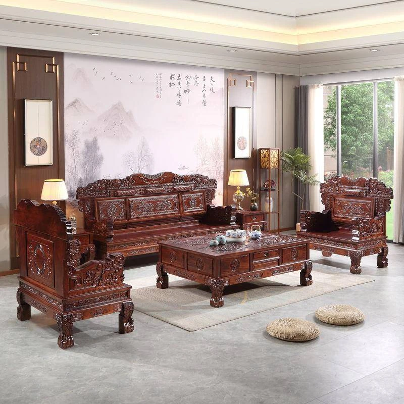 CWF中式古典彫刻ソファセット - 大型リビングに最適!老榆木と花梨の贅沢な全木製デザインで、古き良き中国の美をお楽しみください。高品質な仕上げで、居心地の良い空間を演出します。
