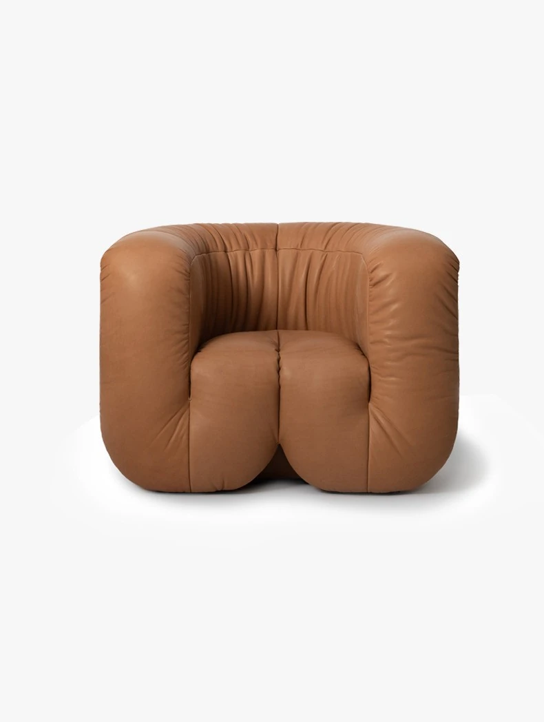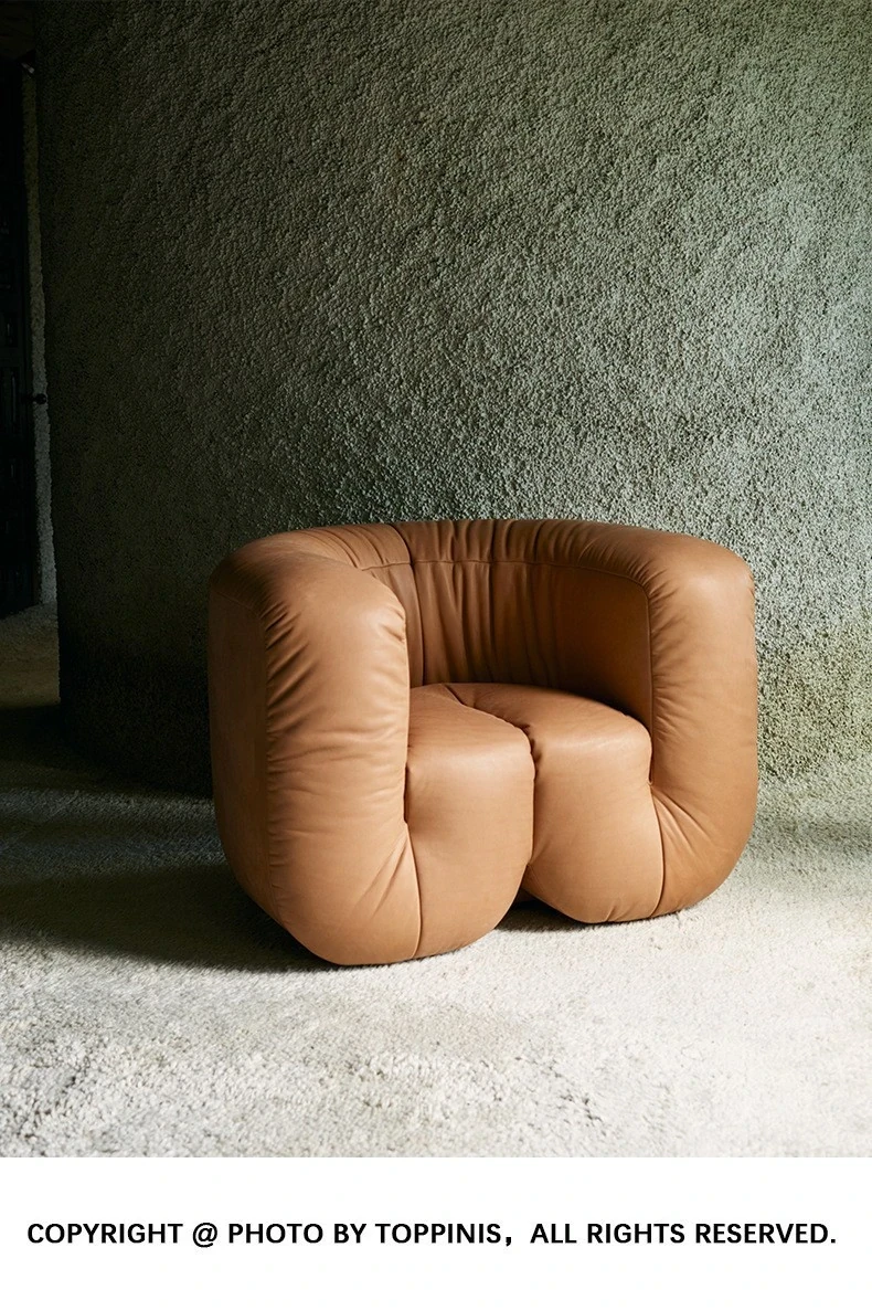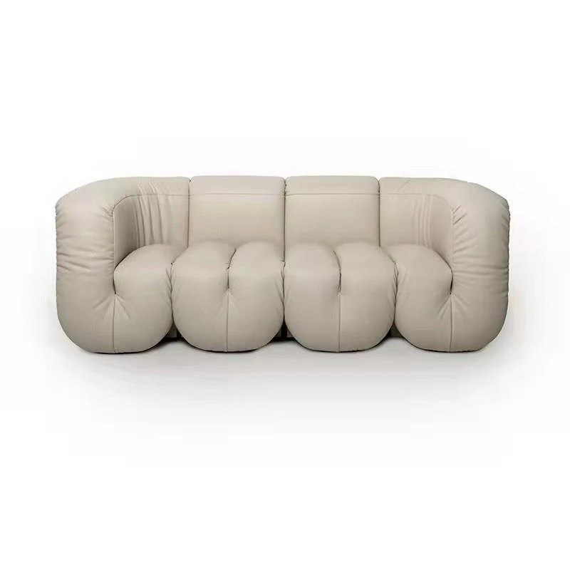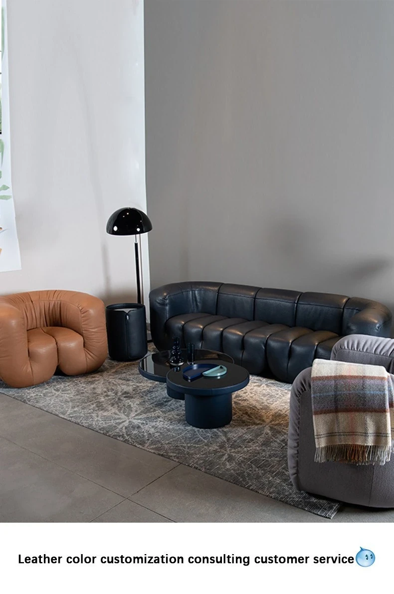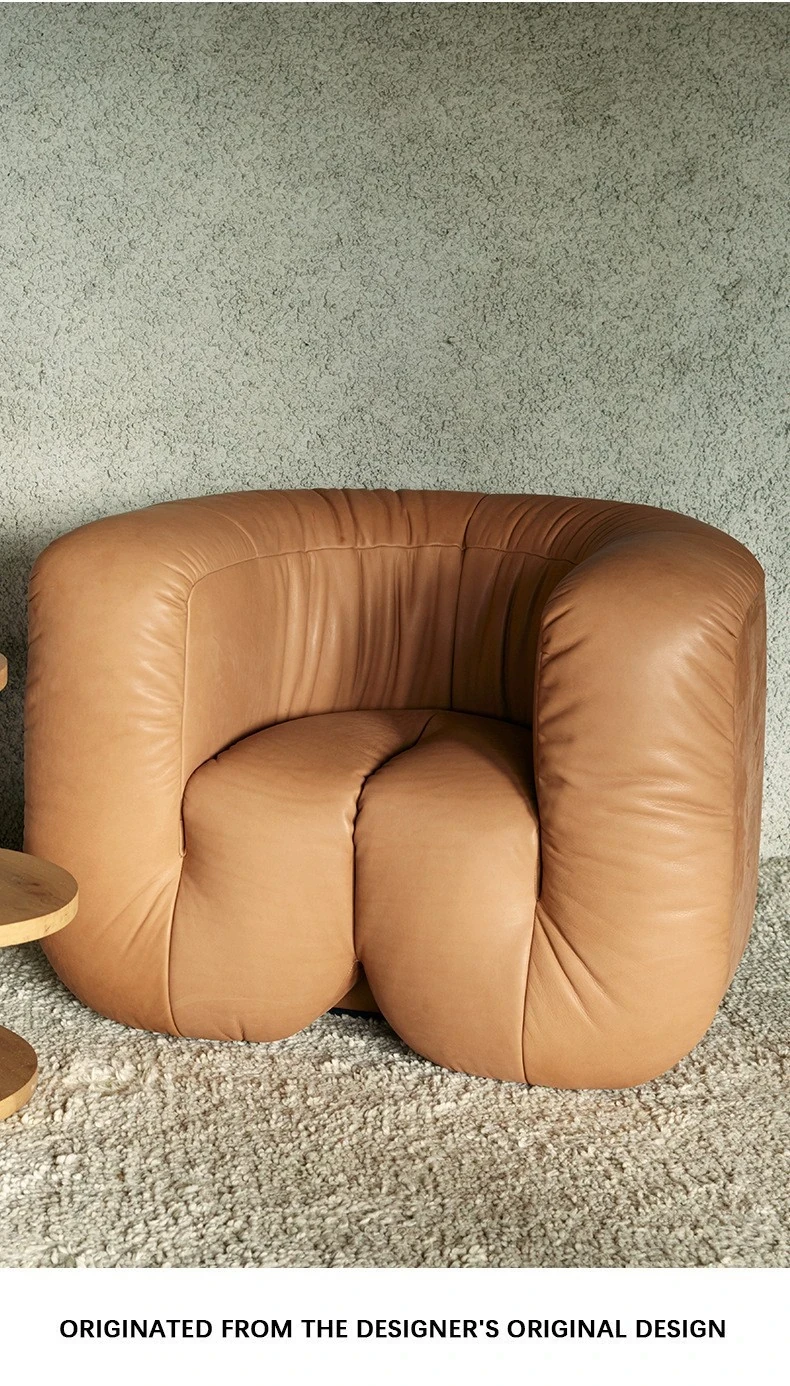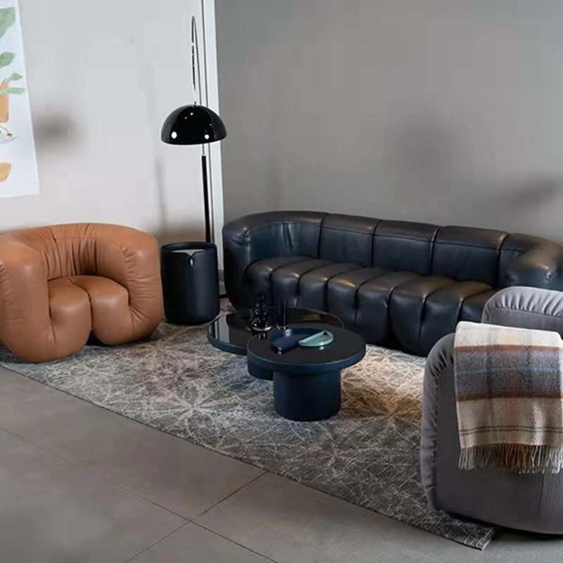 デザイナーズ本革ソファチェア|ホテルロビーにぴったりのクリエイティブな接客椅子|販売ルームや会議に最適な三人掛け異形ソファ!おしゃれで快適な空間を演出します。