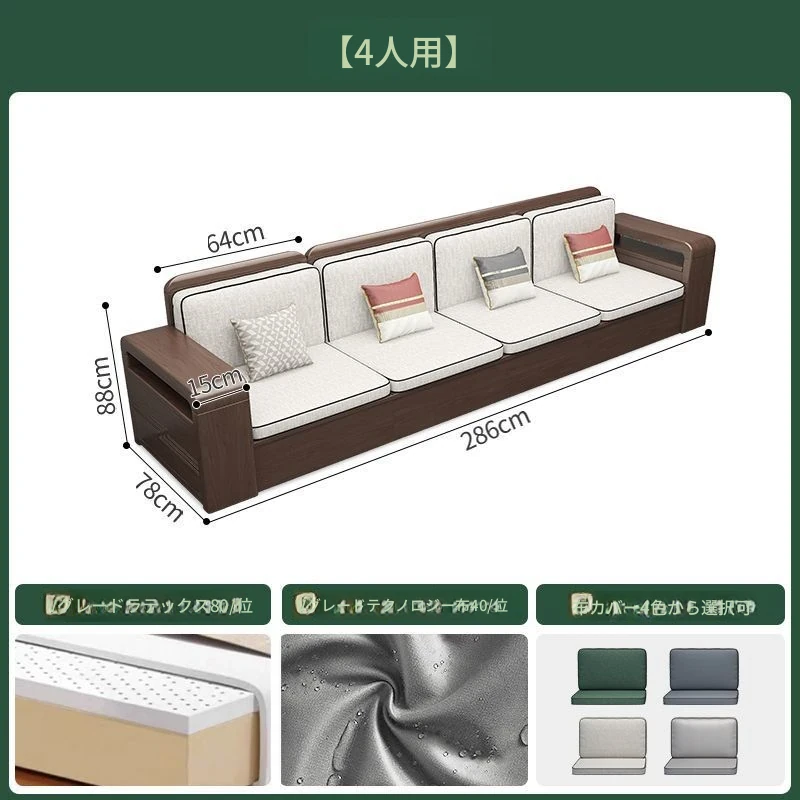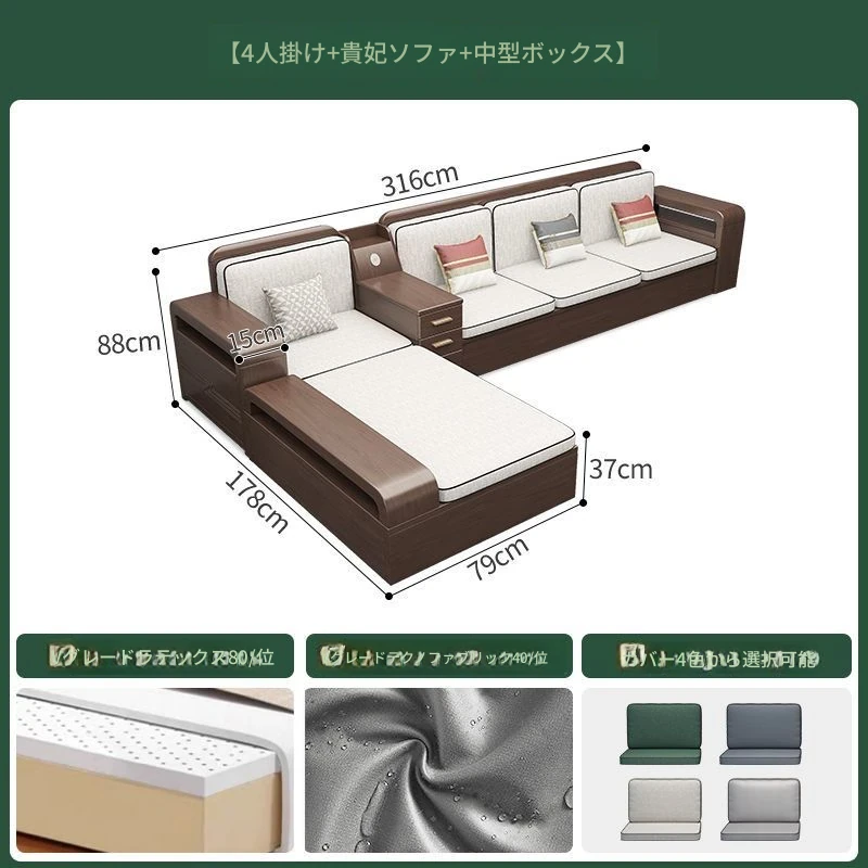 四人掛け+貴妃ソファ+中箱【ウォールナット】