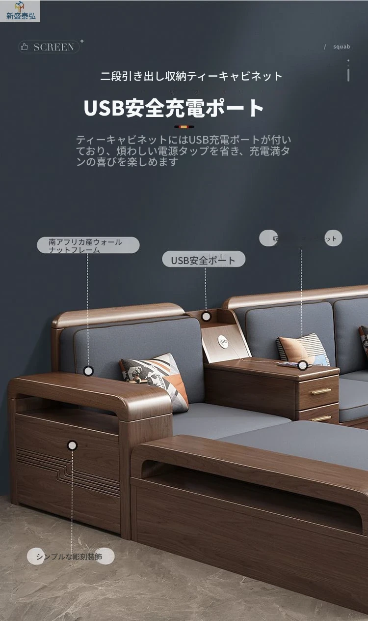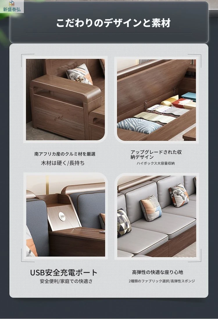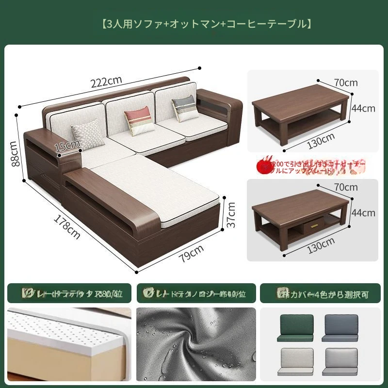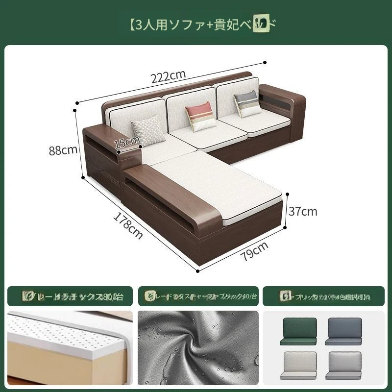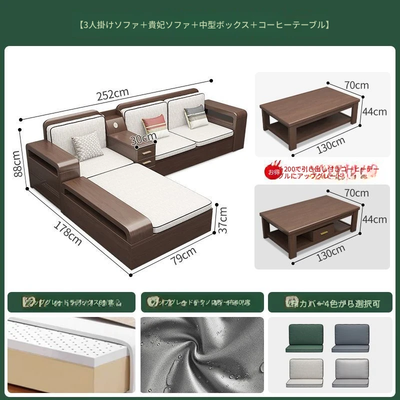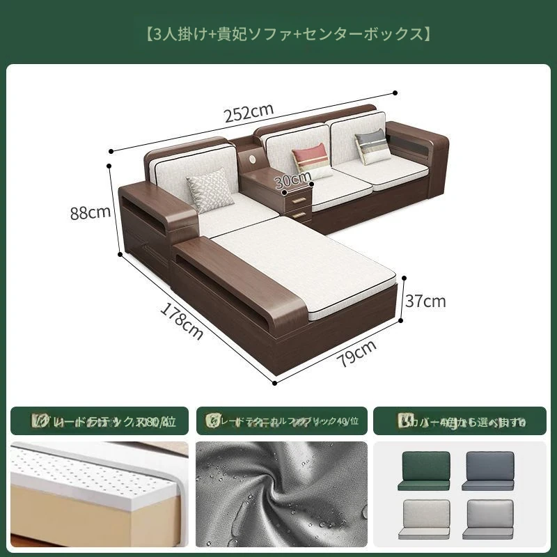 三人掛け+貴妃ソファ+中箱+コーヒーテーブル【2.52メートル】
