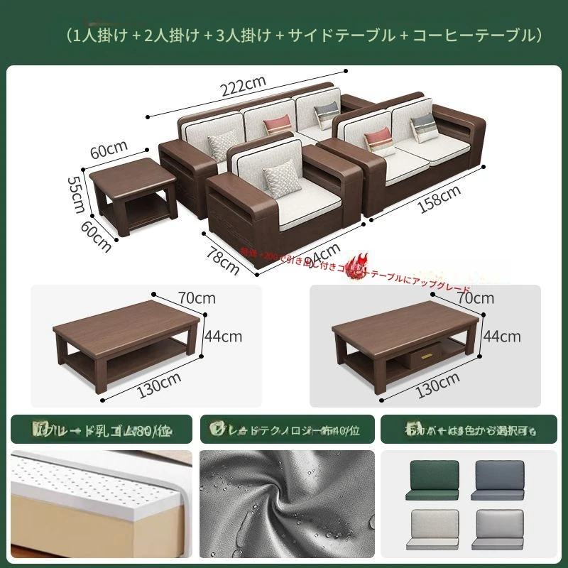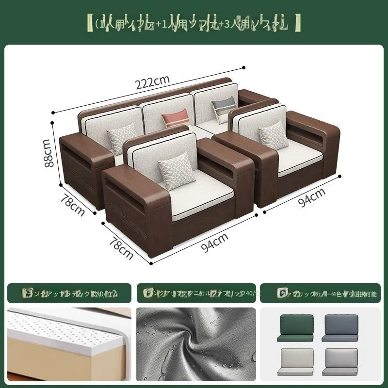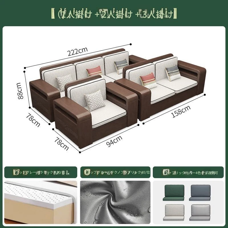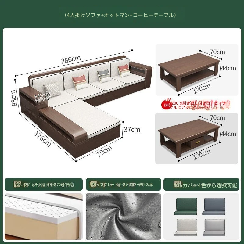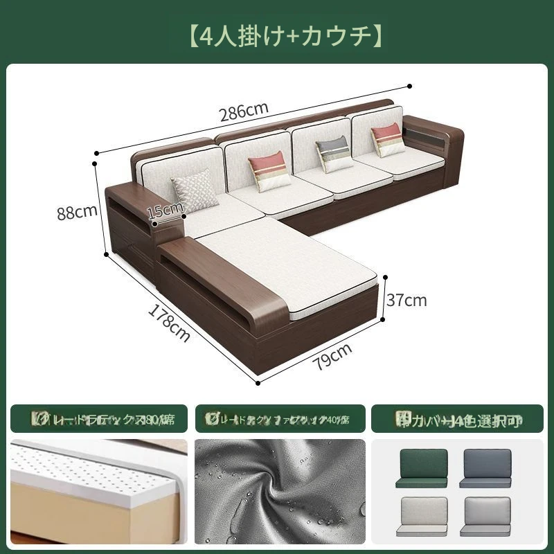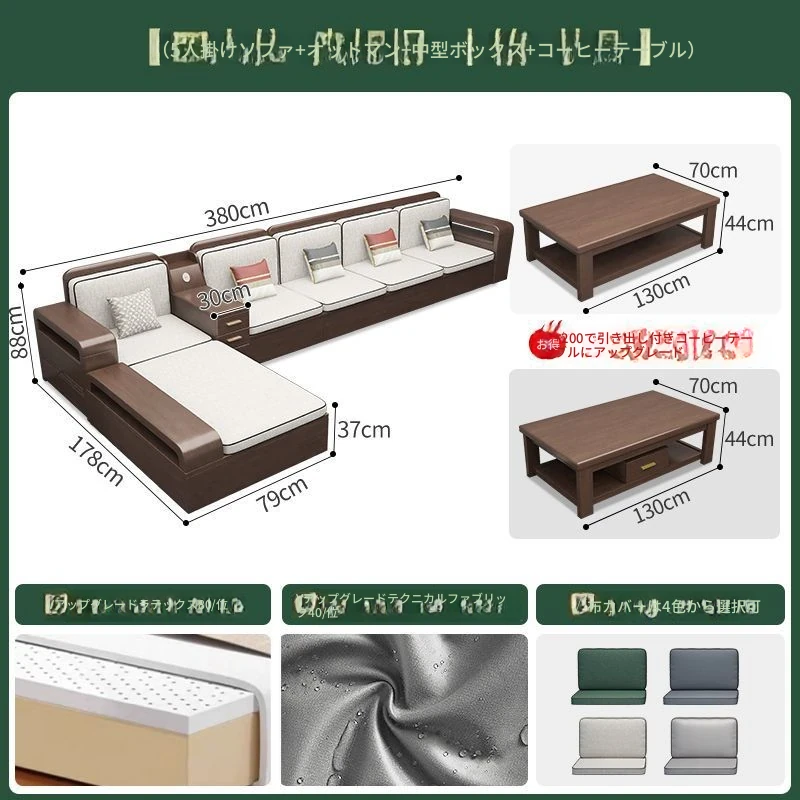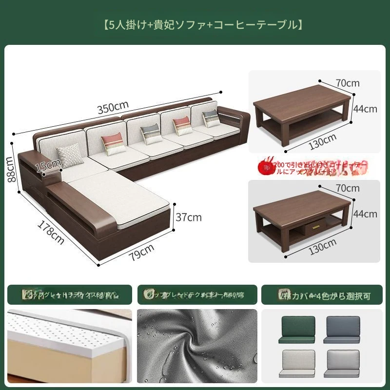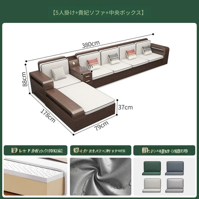 五人掛け+貴妃ソファ+中箱+コーヒーテーブル【3.8メートル】