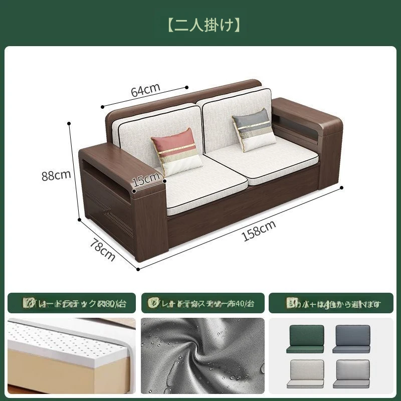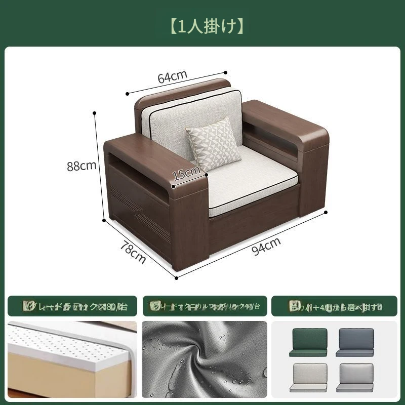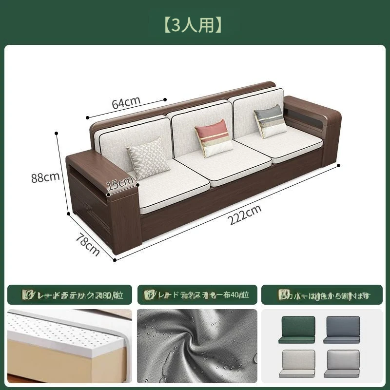 三人掛け+貴妃ソファ+中箱【ウォールナット】