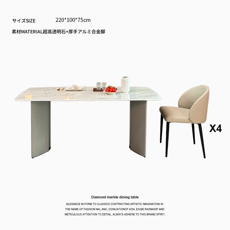 2.2メートル大理石ダイニングテーブル+4椅子