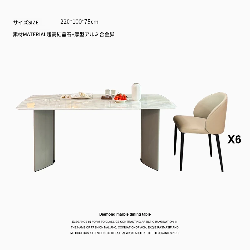 2.2メートル大理石ダイニングテーブル+6椅子
