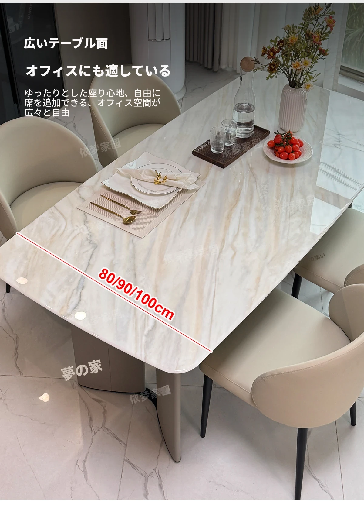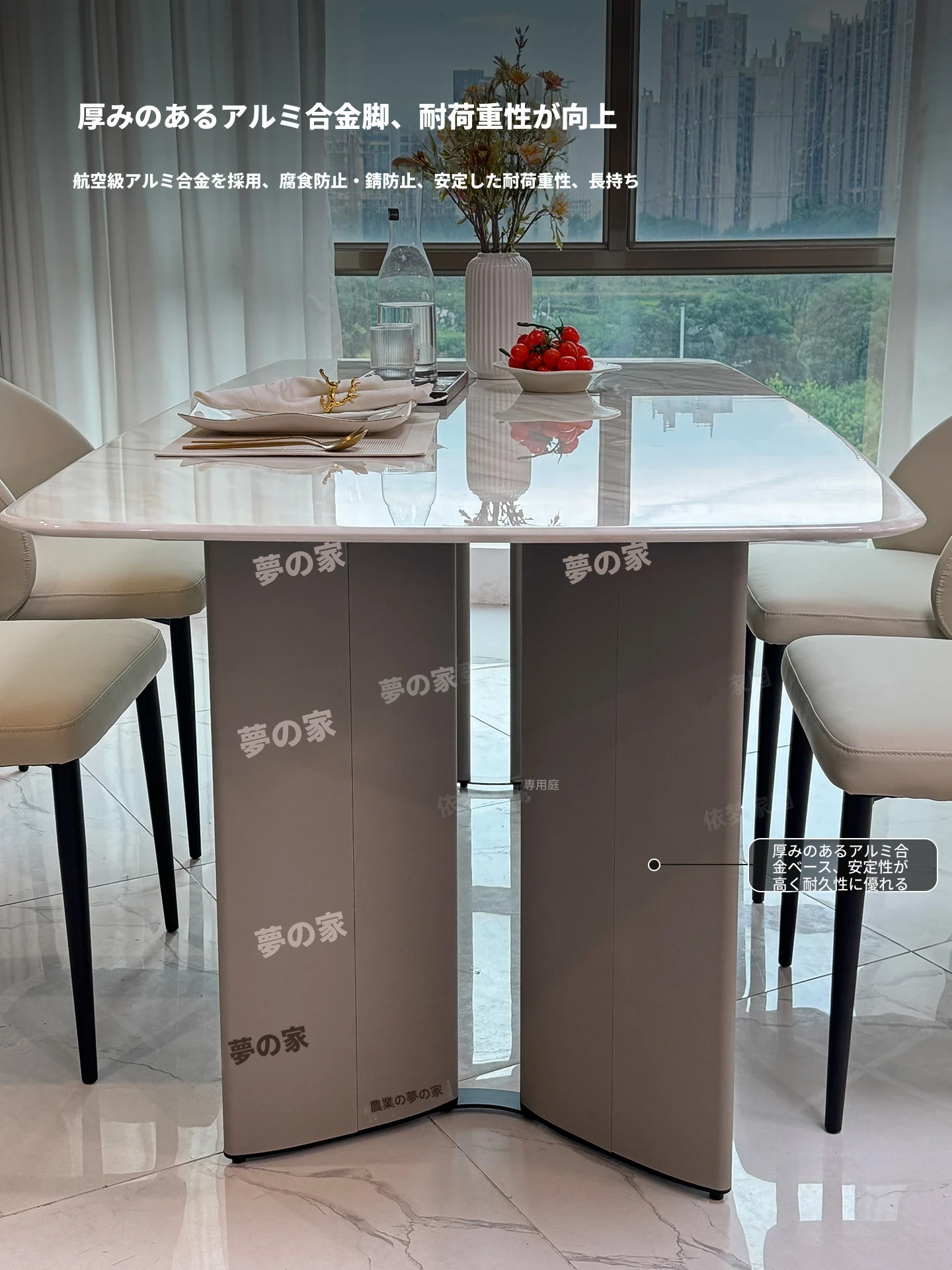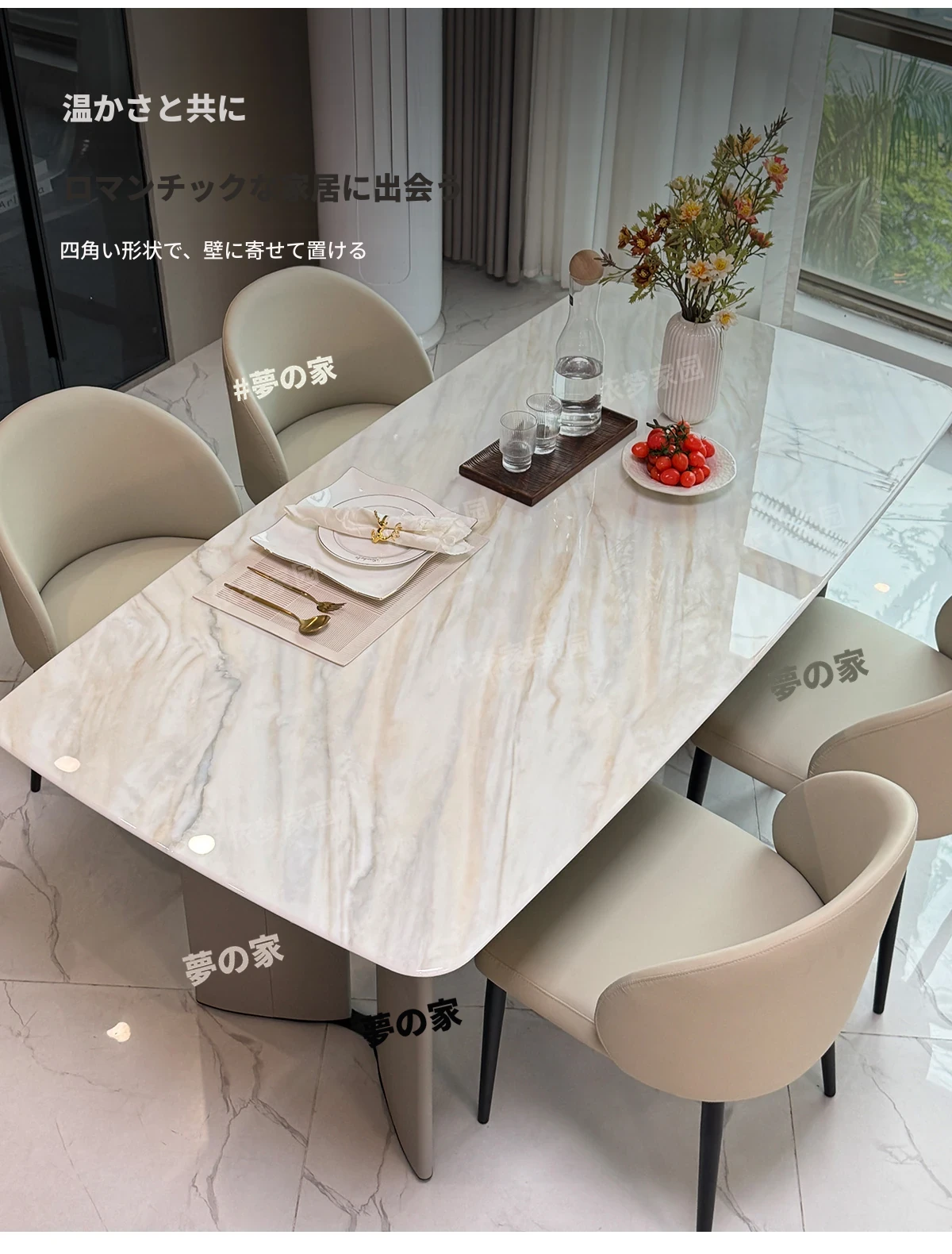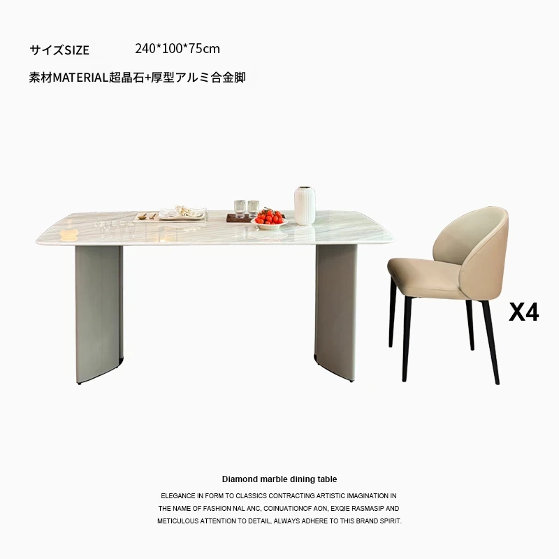 2.4メートル大理石ダイニングテーブル+4椅子