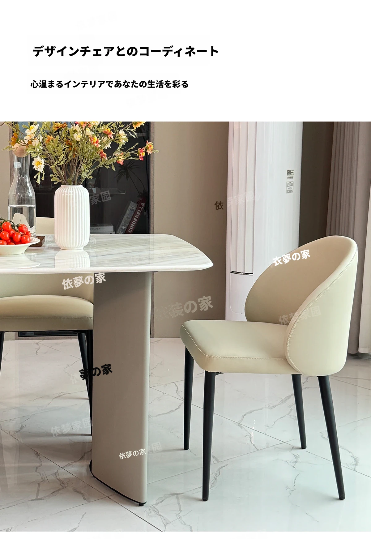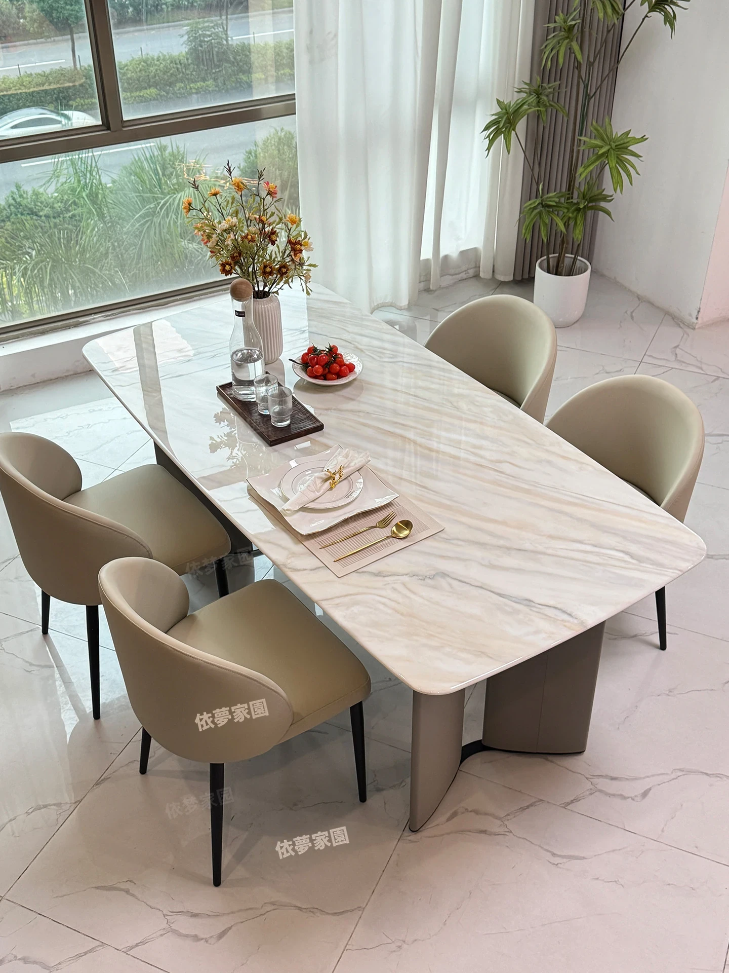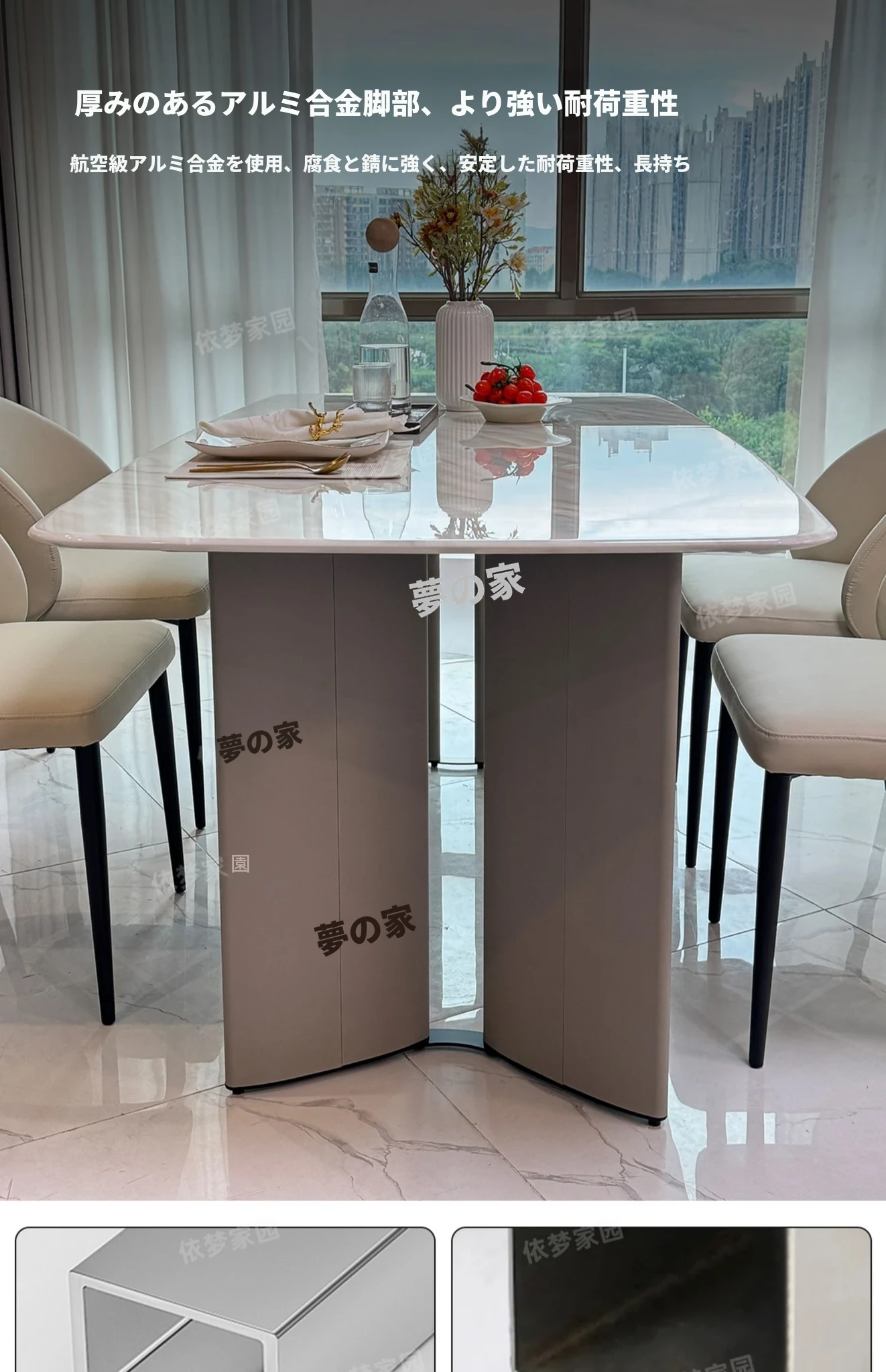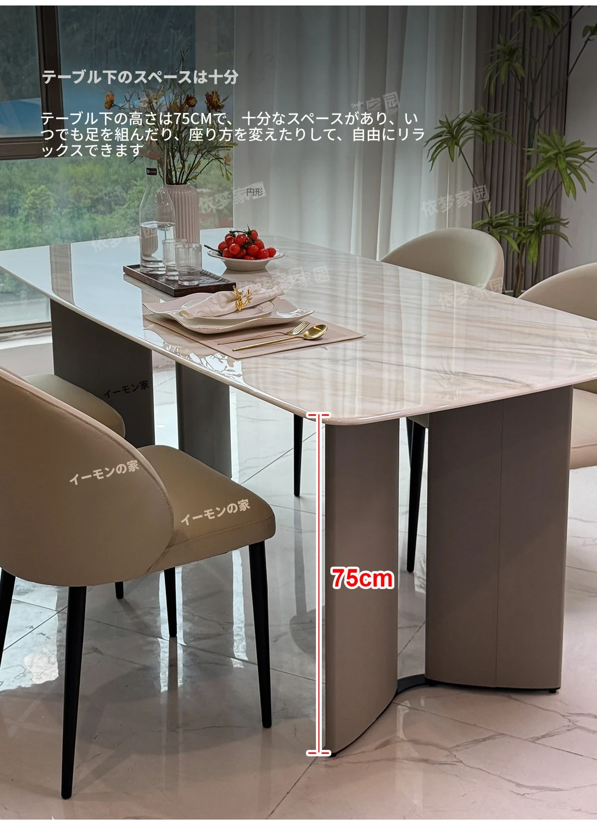 2.4メートル大理石ダイニングテーブル+4椅子