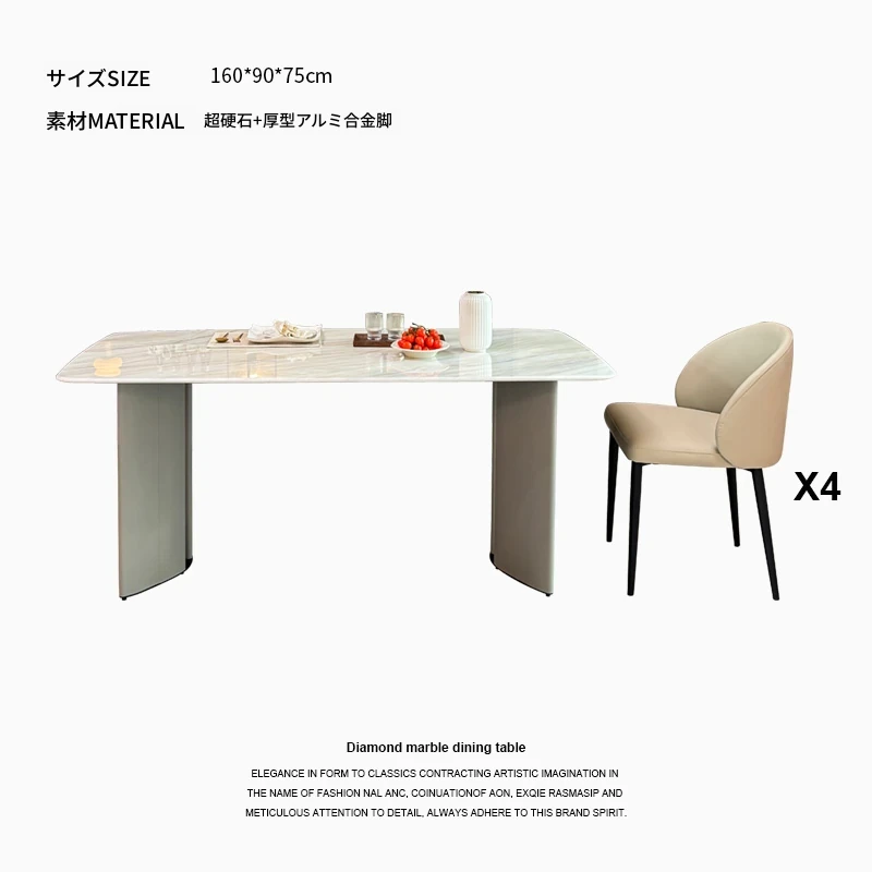 1.6メートル大理石ダイニングテーブル+4椅子