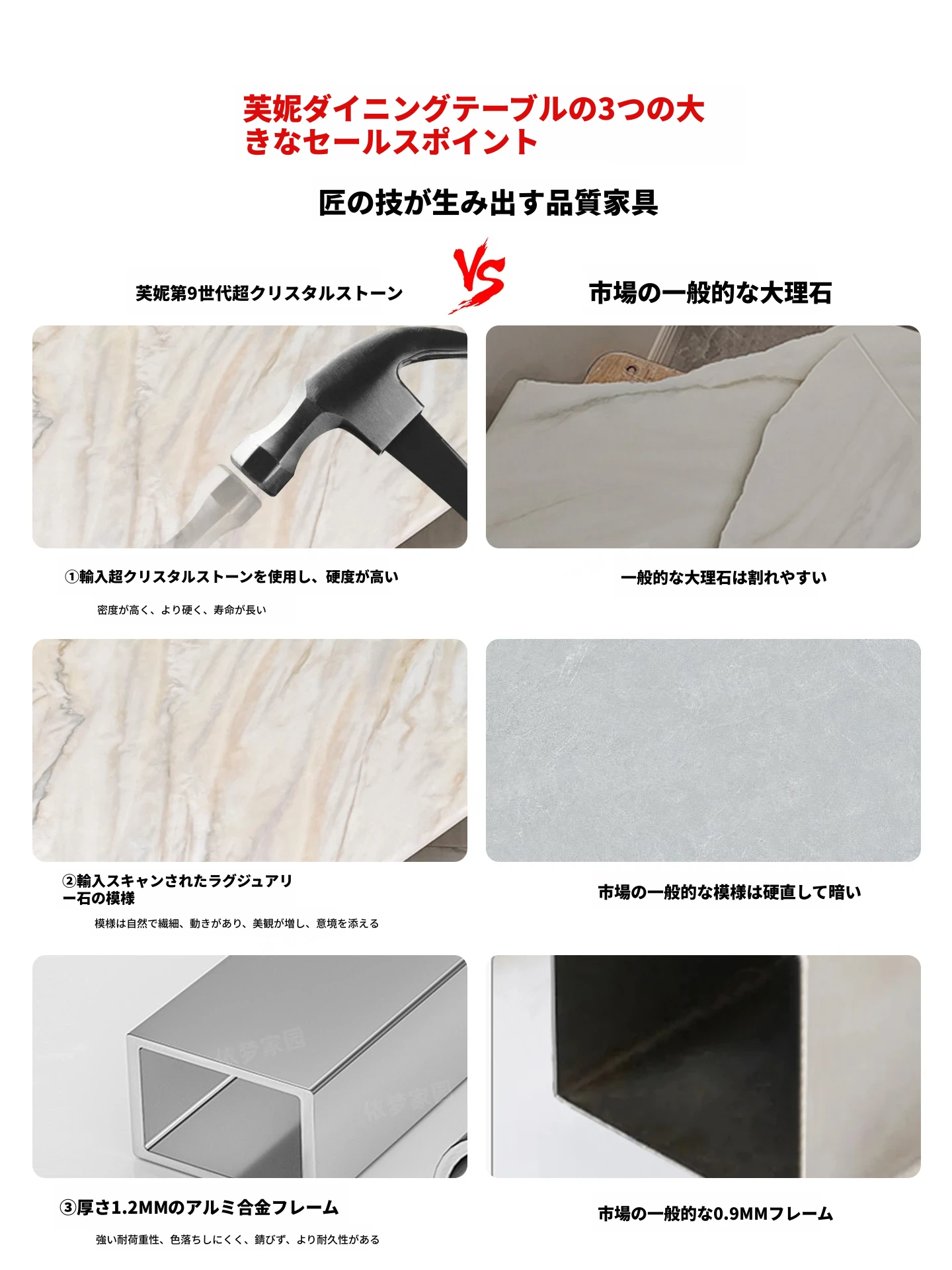 2.4メートル大理石ダイニングテーブル+6椅子
