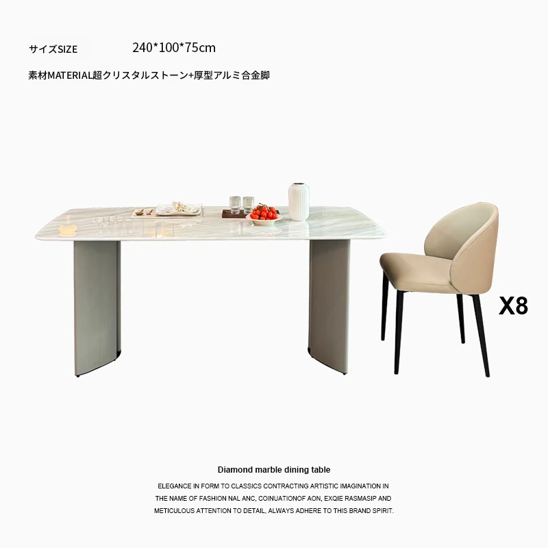 2.4メートル大理石ダイニングテーブル+8椅子
