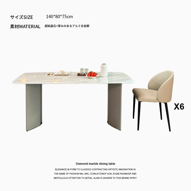 1.4メートル大理石ダイニングテーブル+6椅子