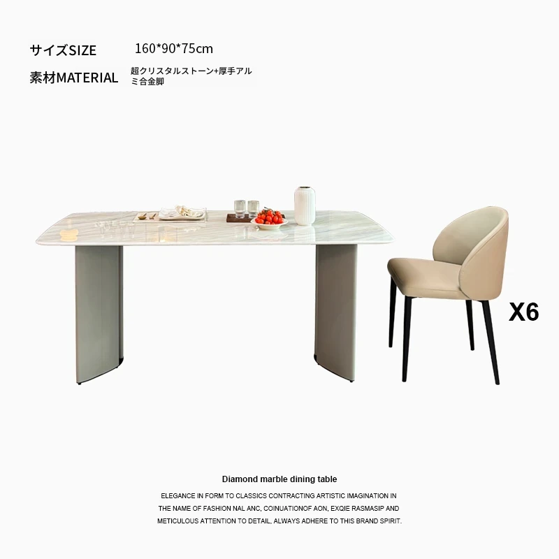 1.6メートル大理石ダイニングテーブル+6椅子