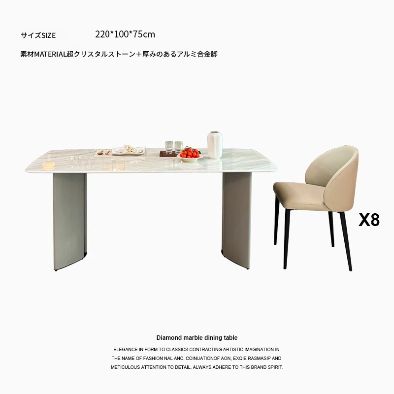 2.2メートル大理石ダイニングテーブル+8椅子