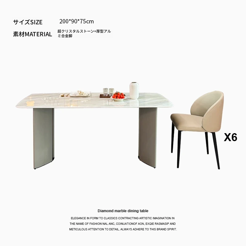 2メートル大理石ダイニングテーブル+6椅子