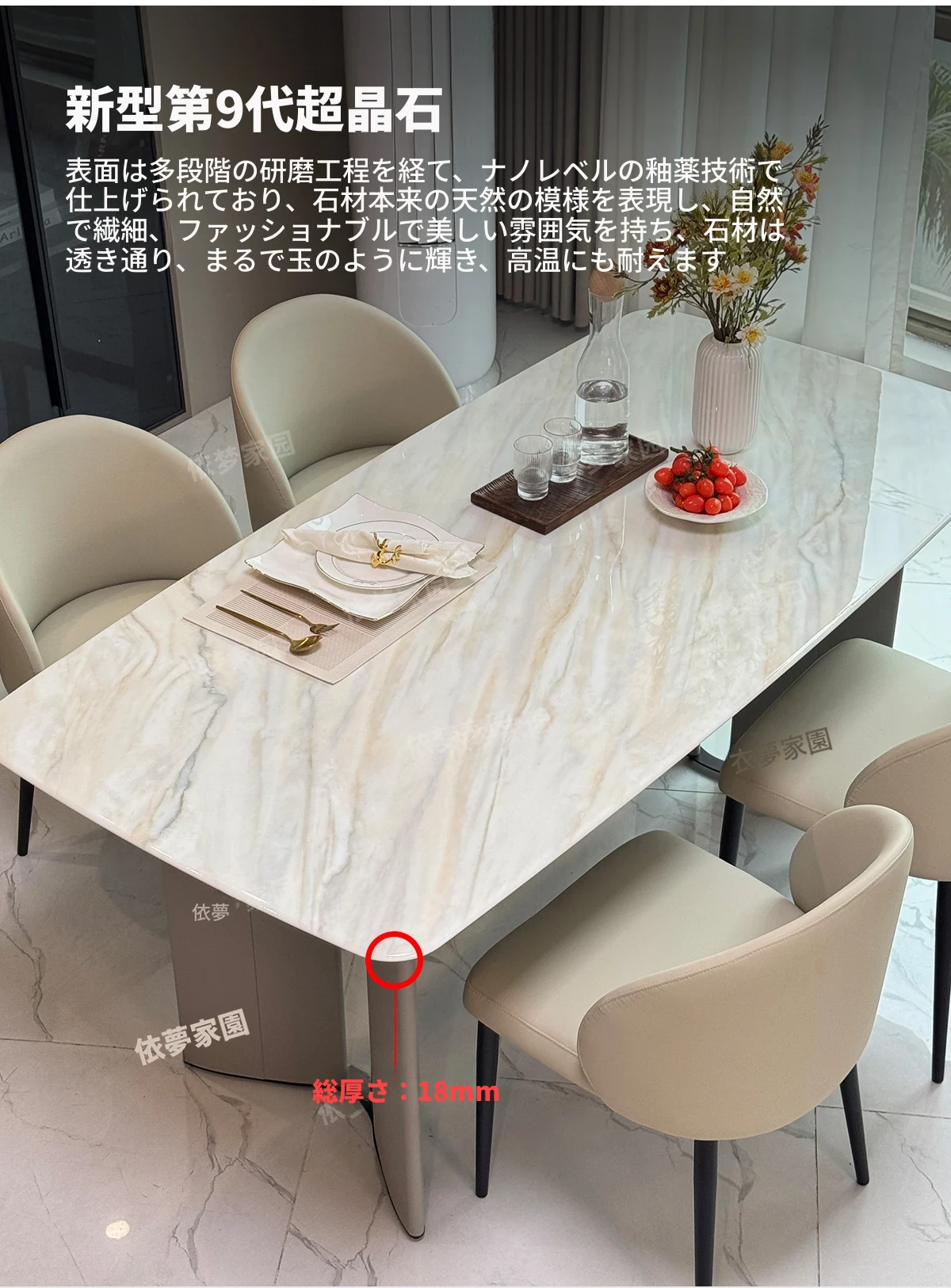 1.8メートル大理石ダイニングテーブル+6椅子