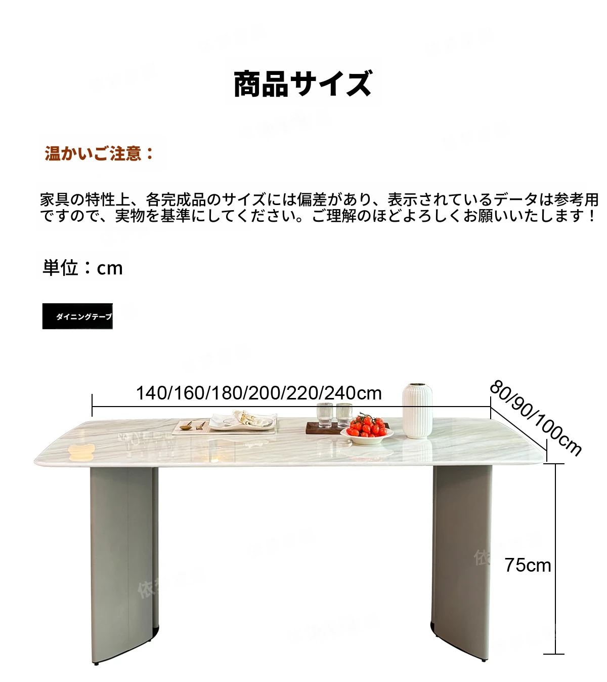 2メートル大理石ダイニングテーブル