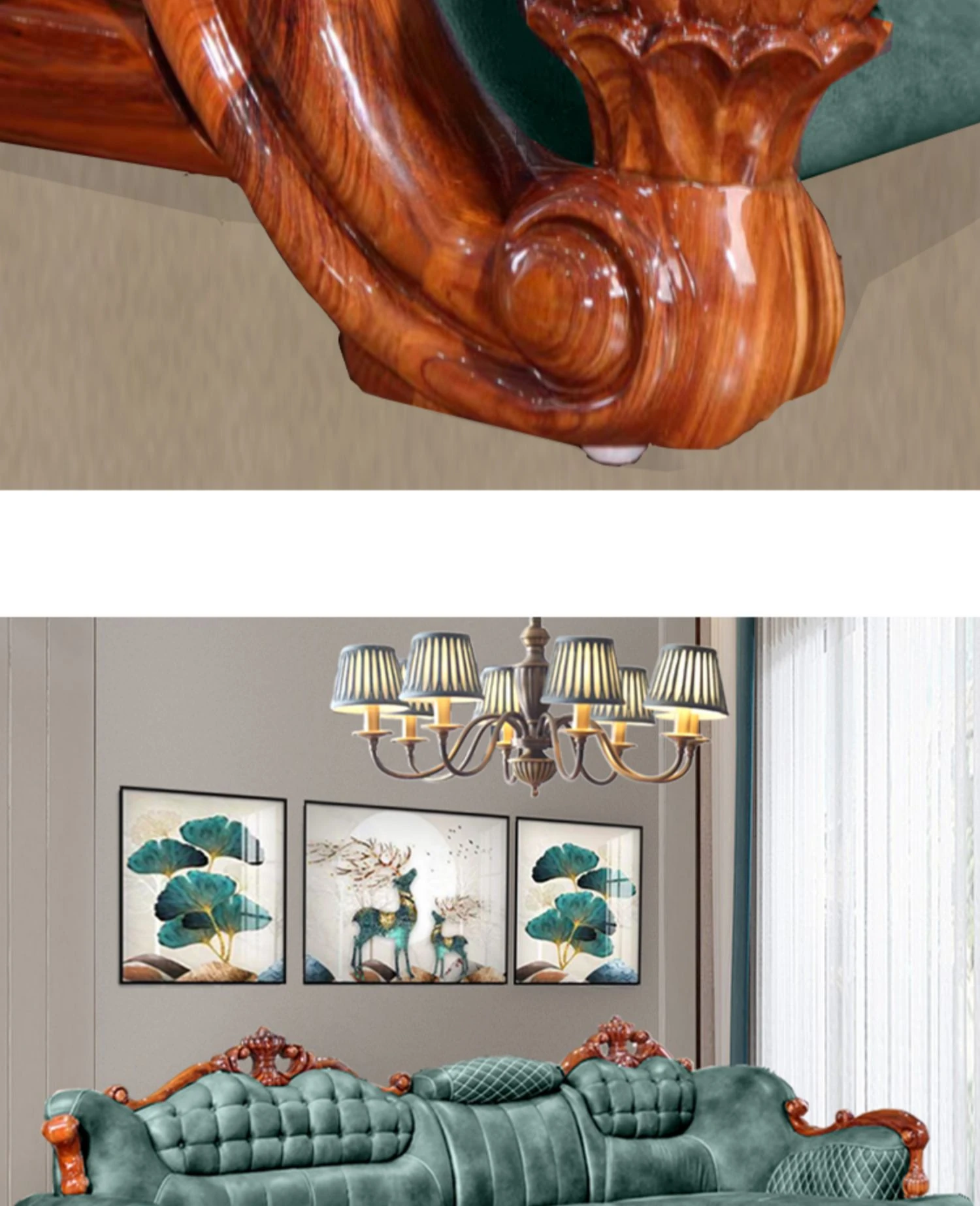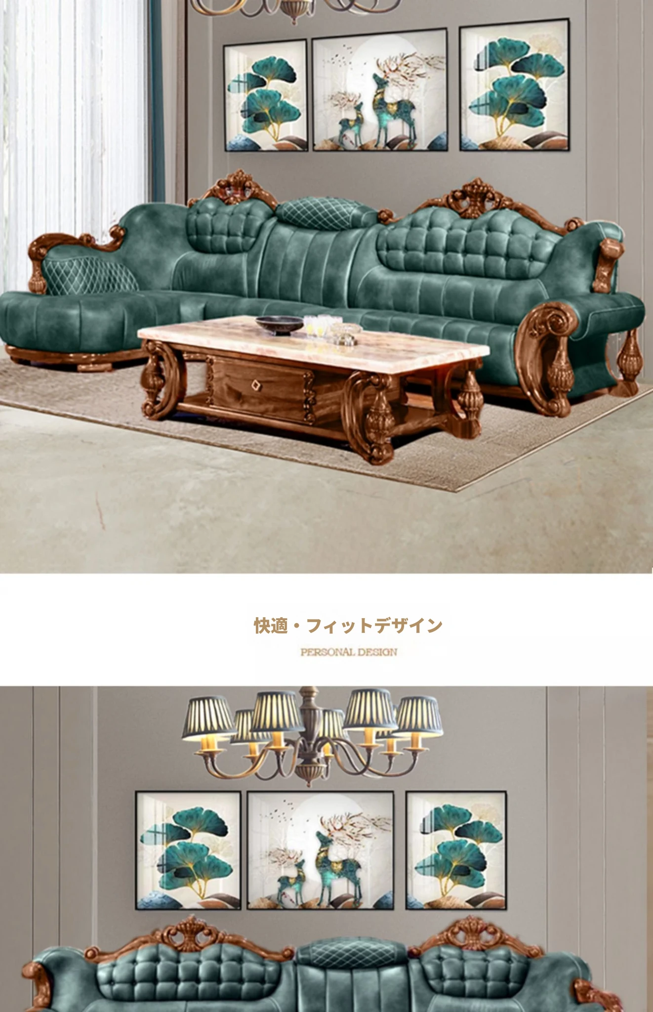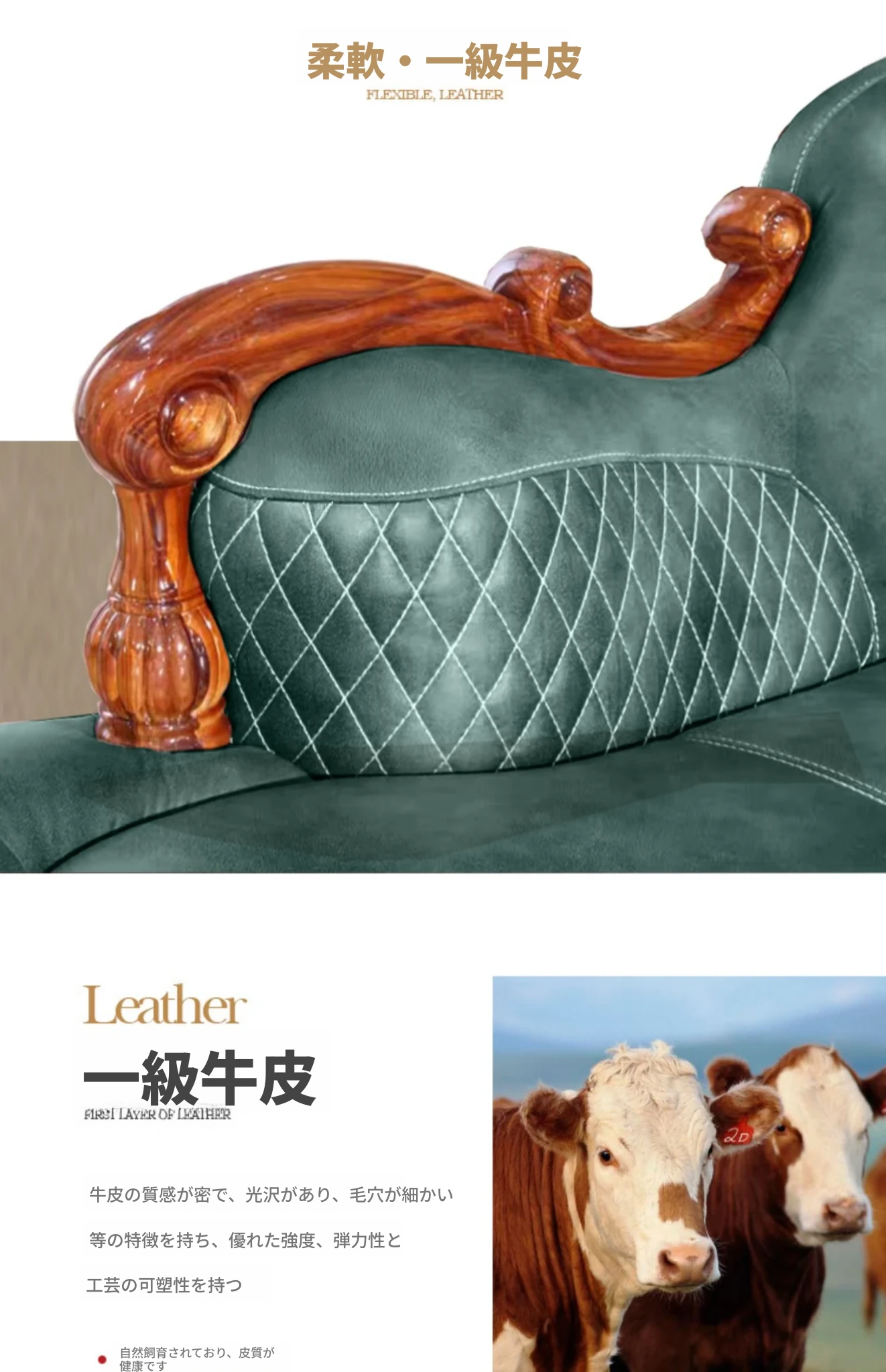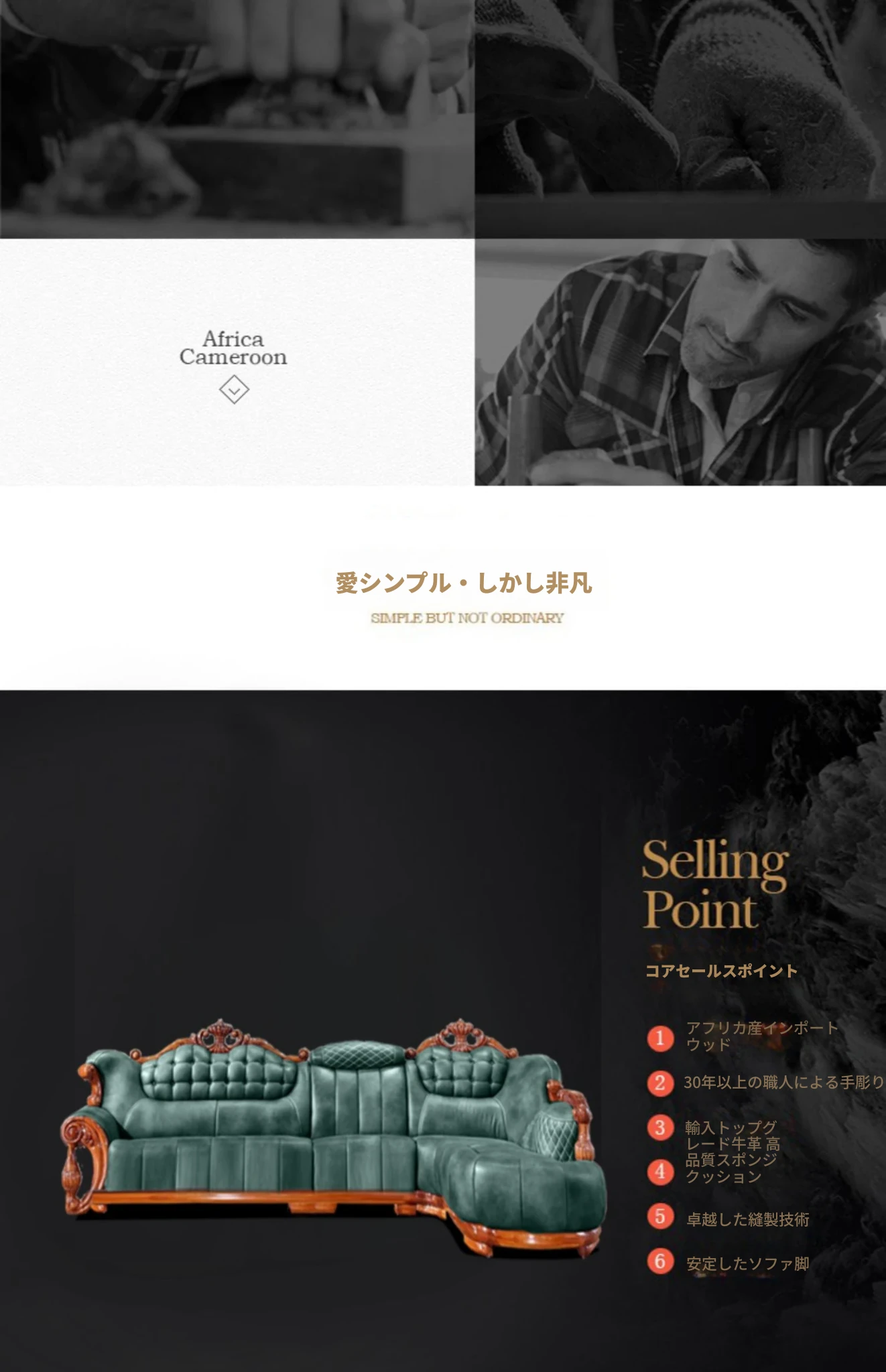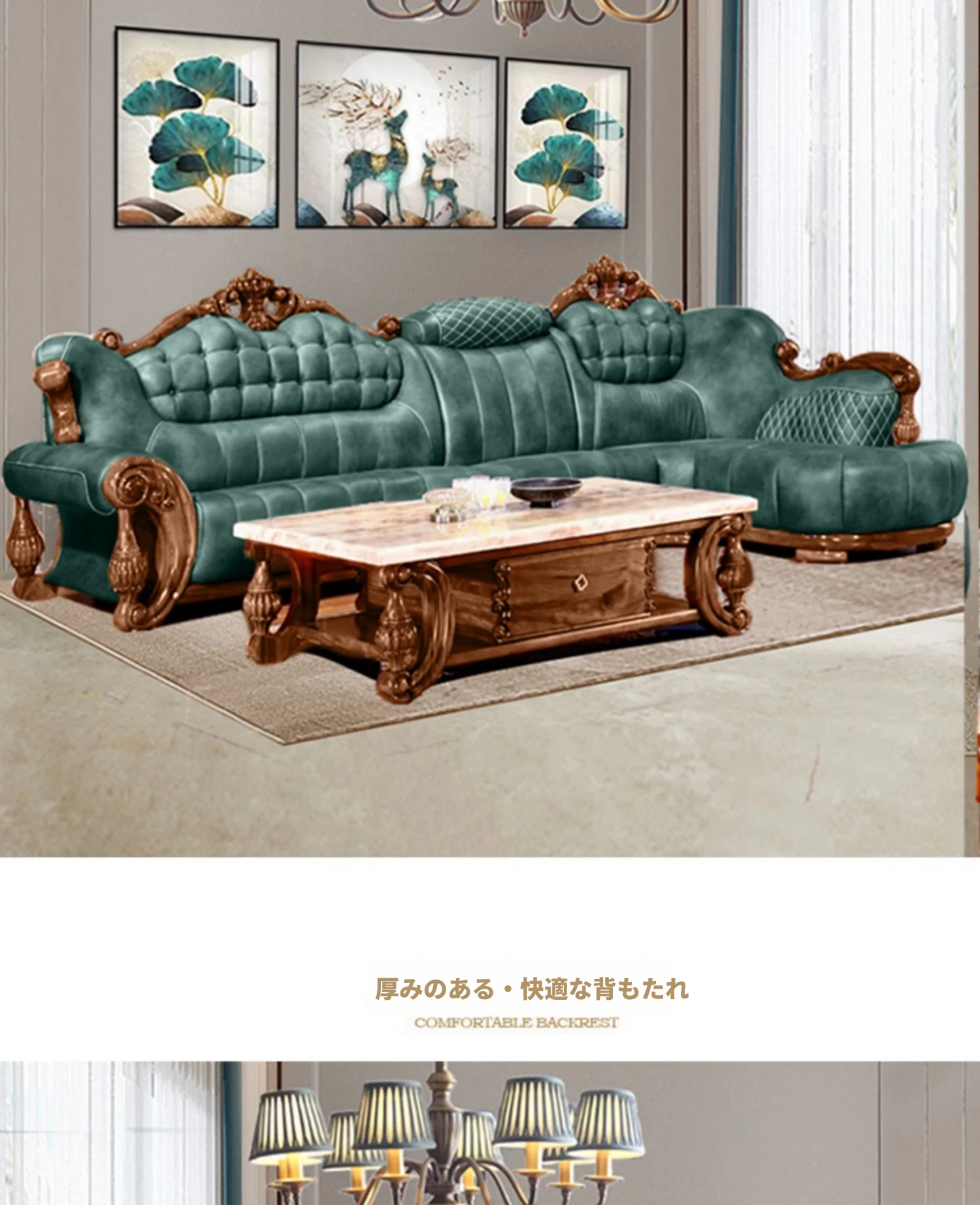 小牛世家のウッドブラックコーナーソファー、豪華な彫刻入りのデザイン!厚みのある無垢材使用で、別荘スタイルの欧風リビングにぴったりの一品。快適さと高級感を両立させたおしゃれなインテリアを実現!