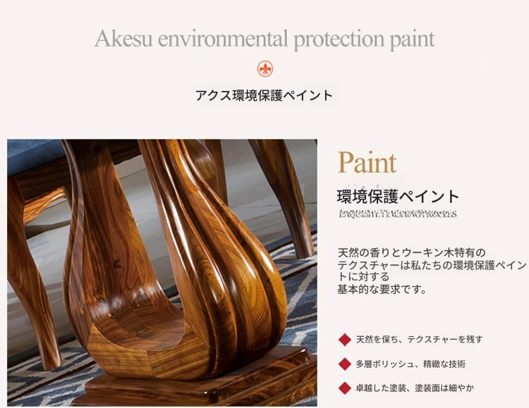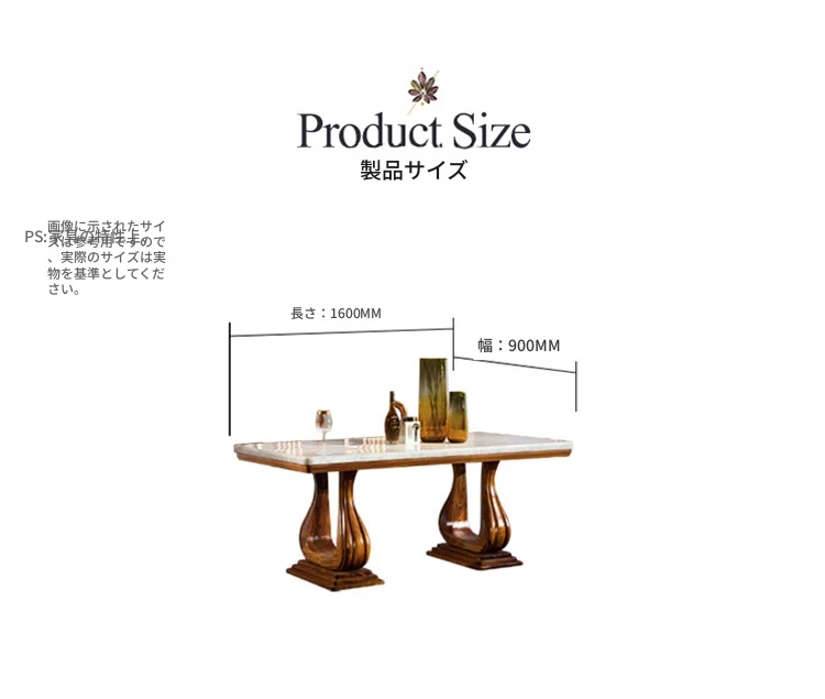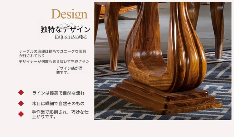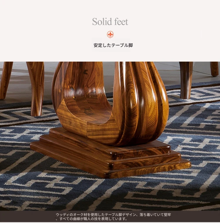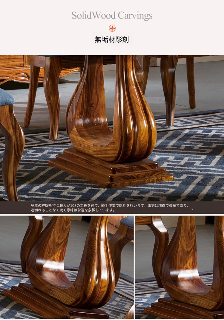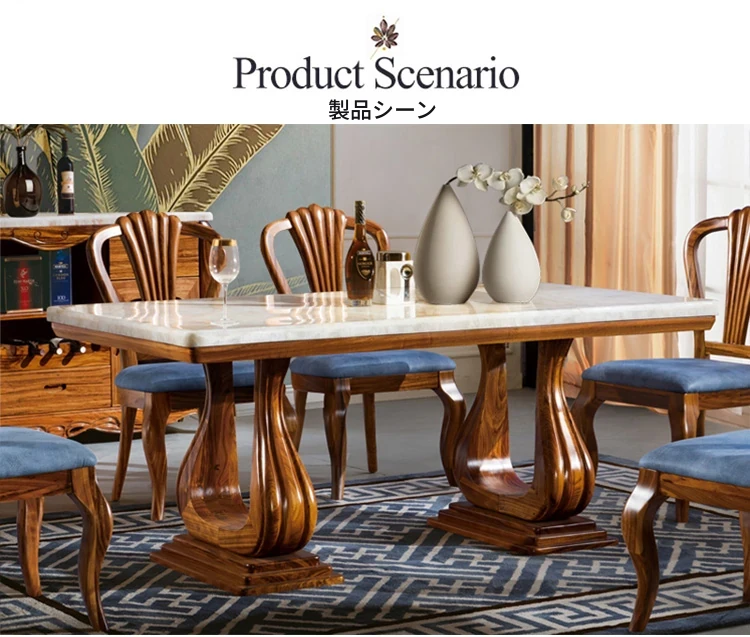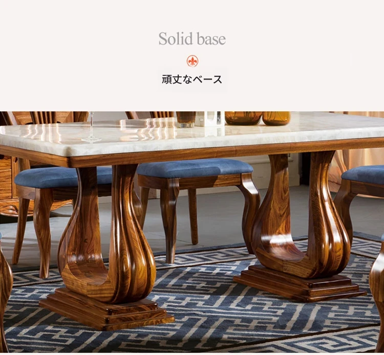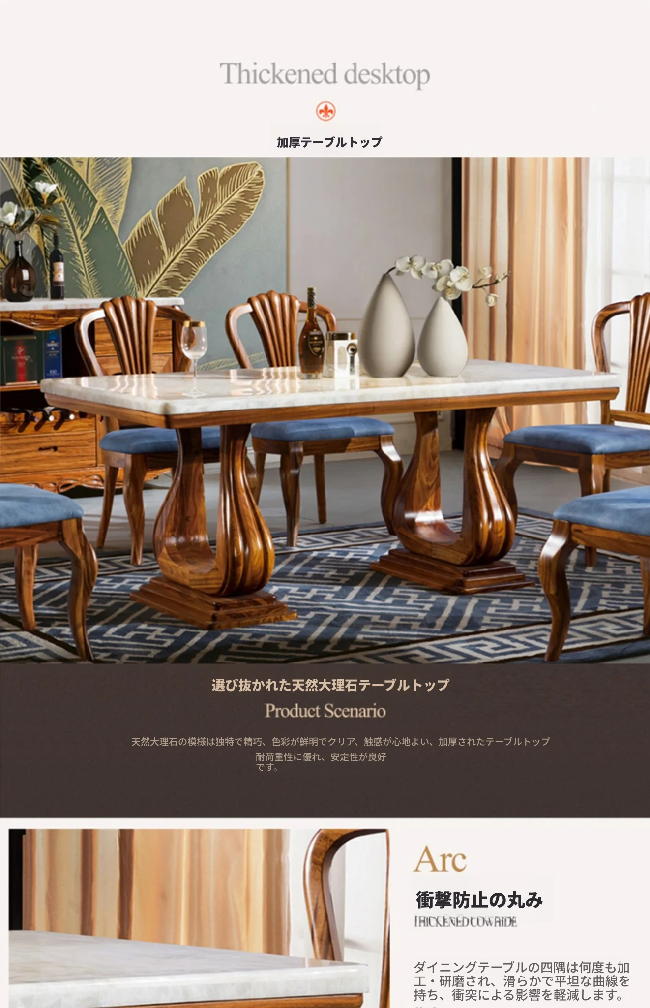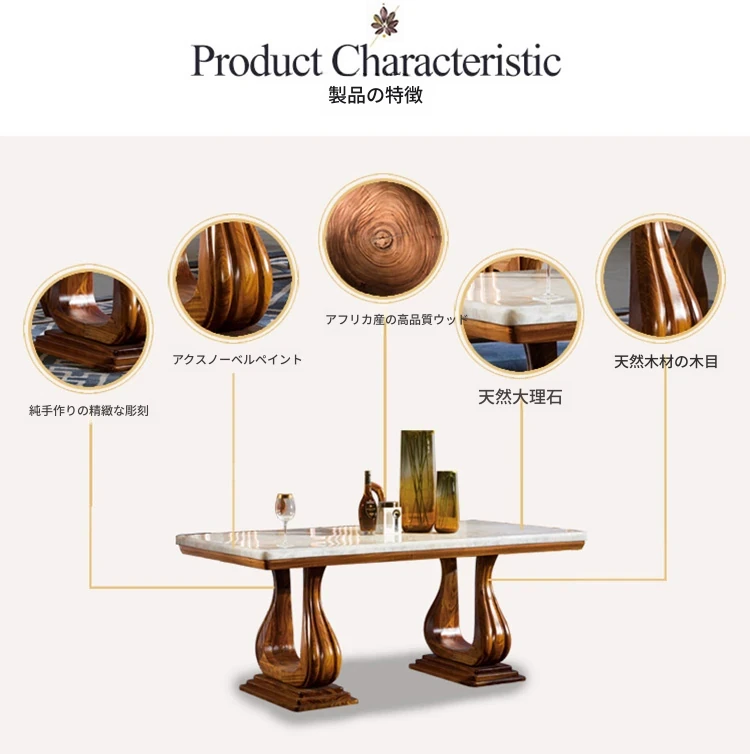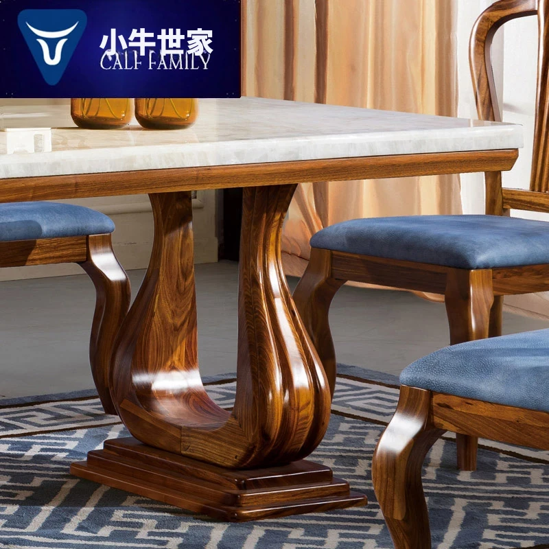 小牛世家のウッドマーブルダイニングテーブル&チェアセット - ヨーロピアンスタイルの彫刻デザイン、贅沢な長方形ダイニング家具で洗練された食卓を演出!
