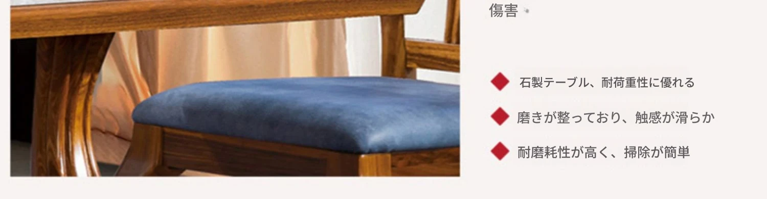 1.8*1メートルのウッド炭石のダイニングテーブル