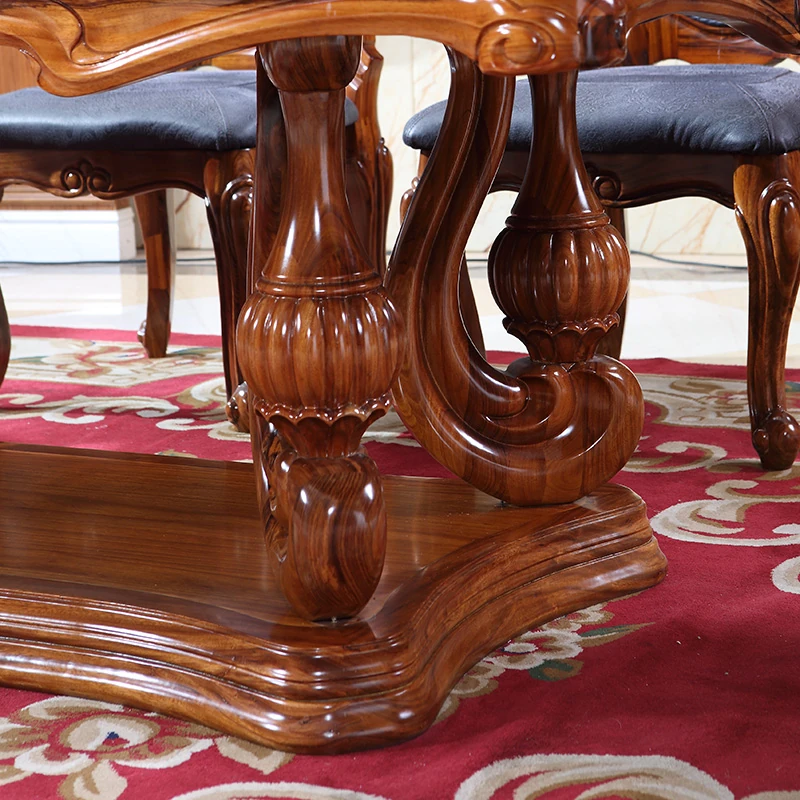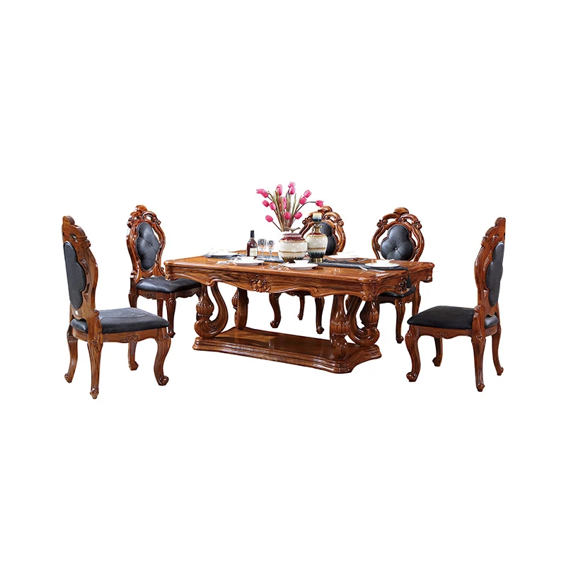 優雅なデザインの丸型から四角に変形する伸縮式ダイニングテーブルセット!実木彫刻と大理石の組み合わせで、狭い空間にもぴったりの小型サイズ。シンプルでありながら高級感あふれる欧風スタイルをお楽しみください。