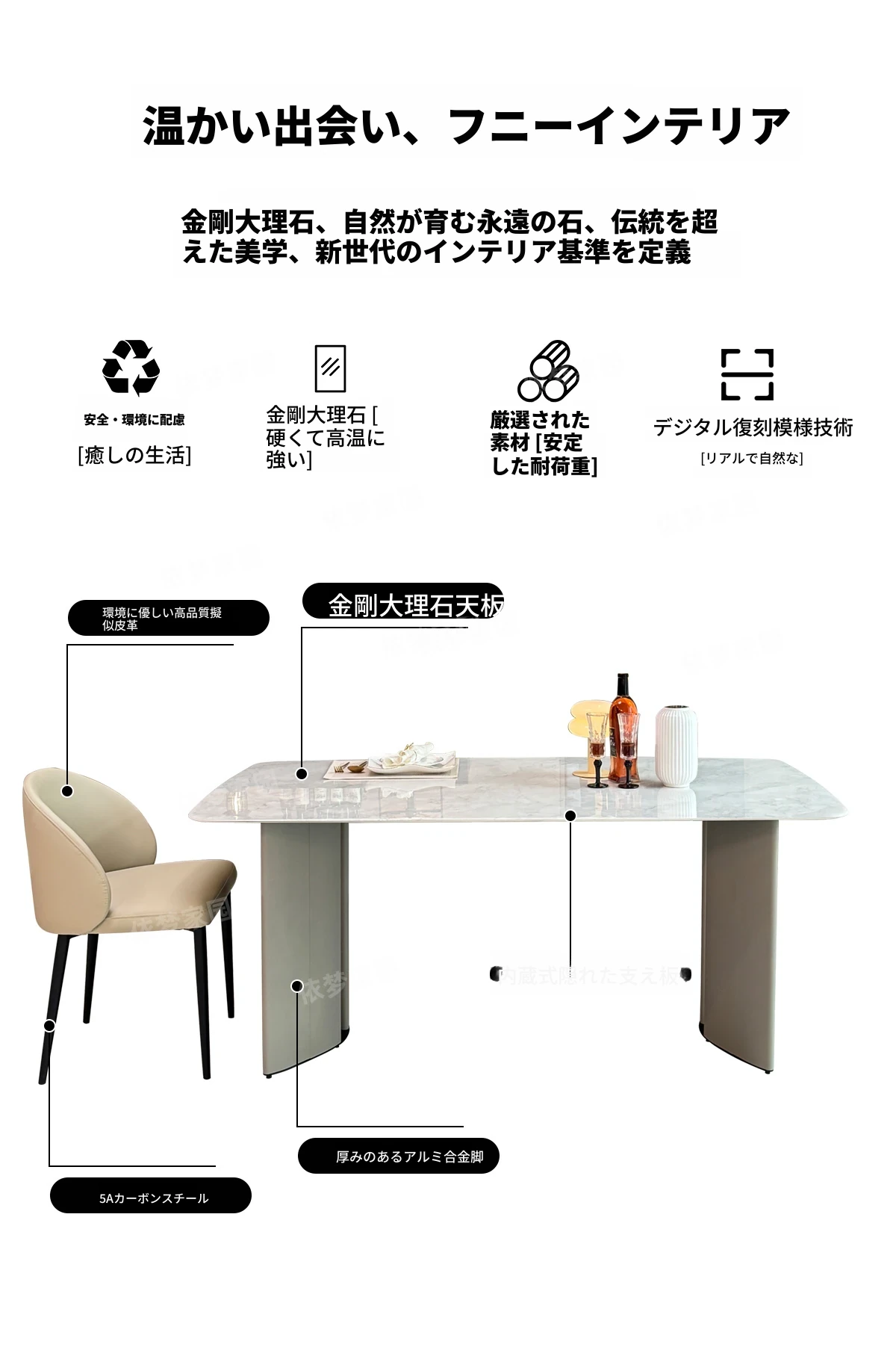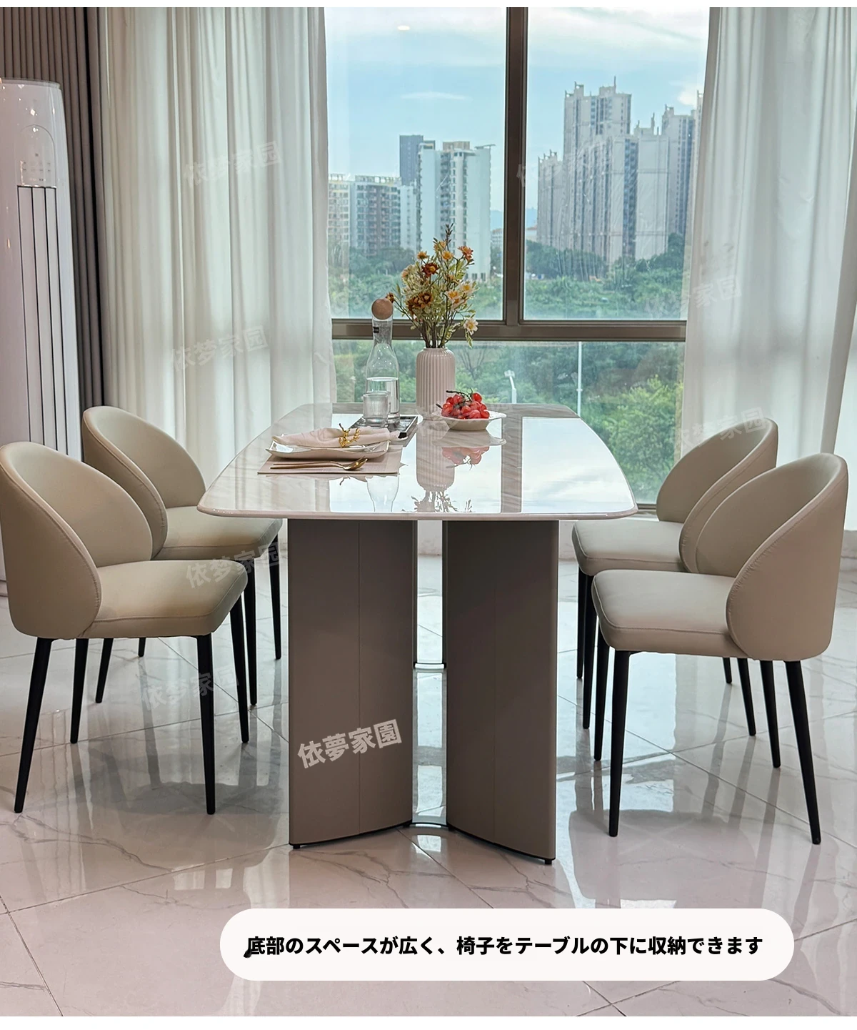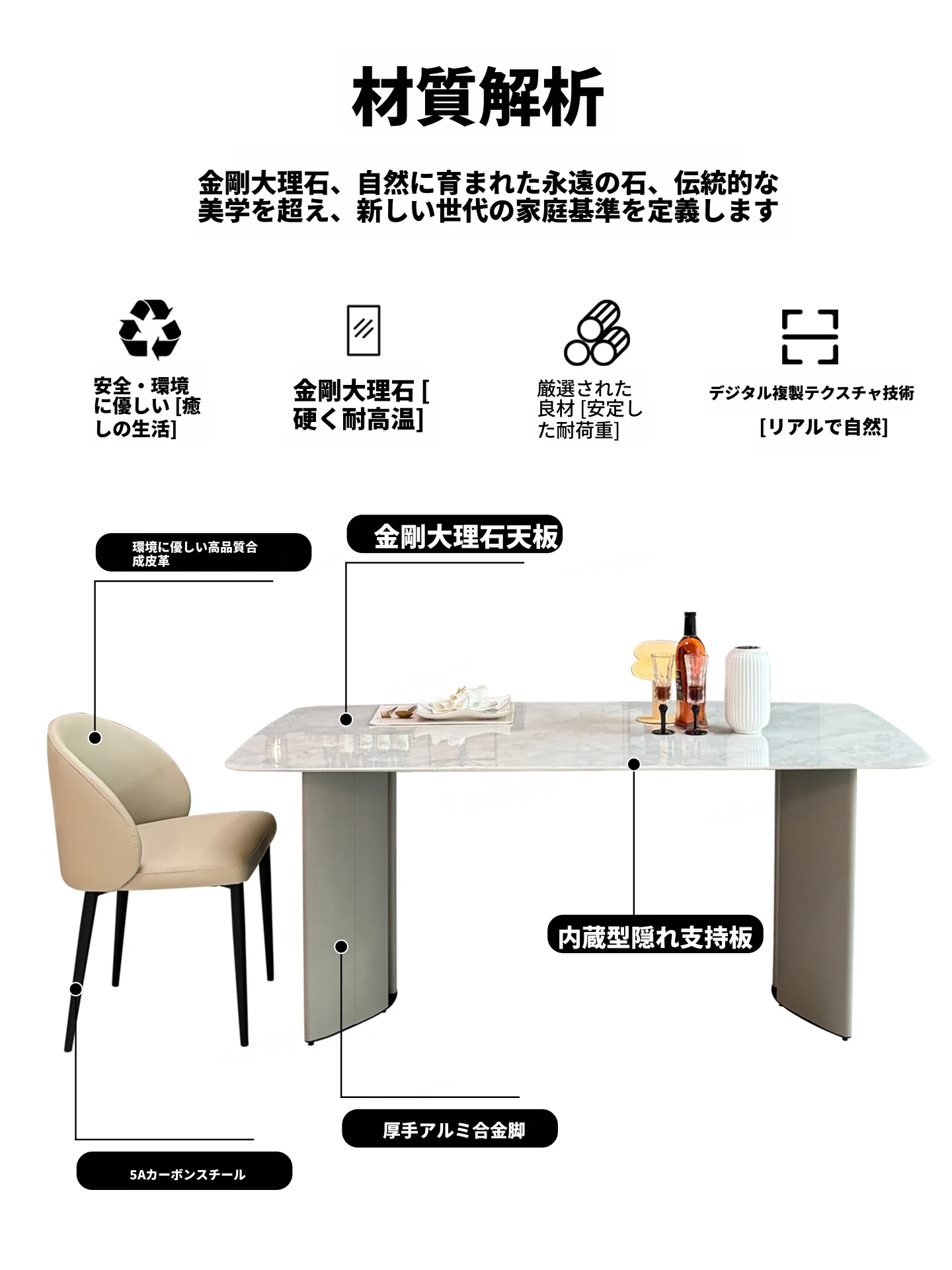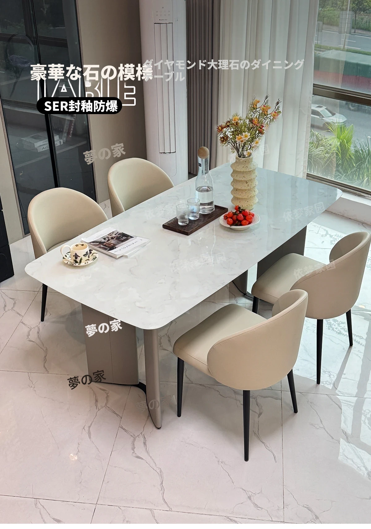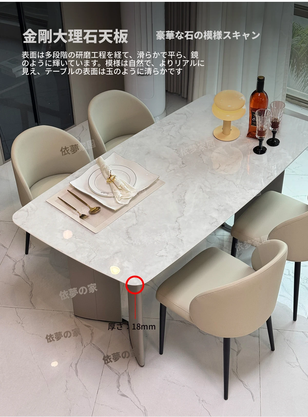 高級感溢れる軽奢大理石ダイニングテーブル&チェアセット - 天然超晶石&微晶石を使用した洗練されたデザイン!贅沢な彩晶石テーブルで、特別なひとときを演出します。