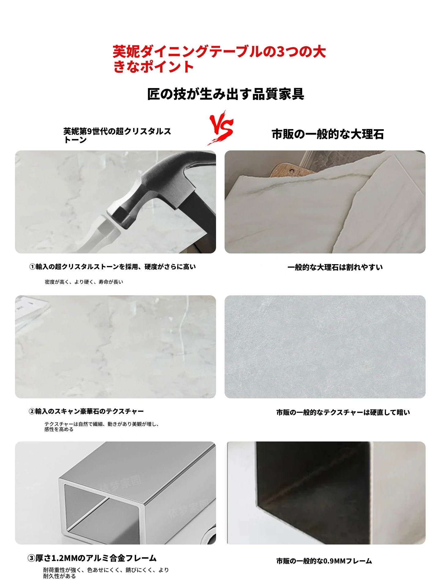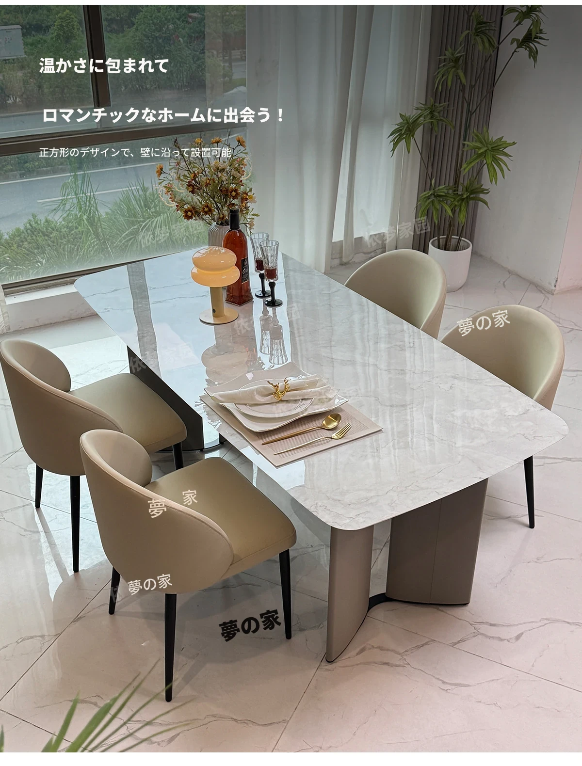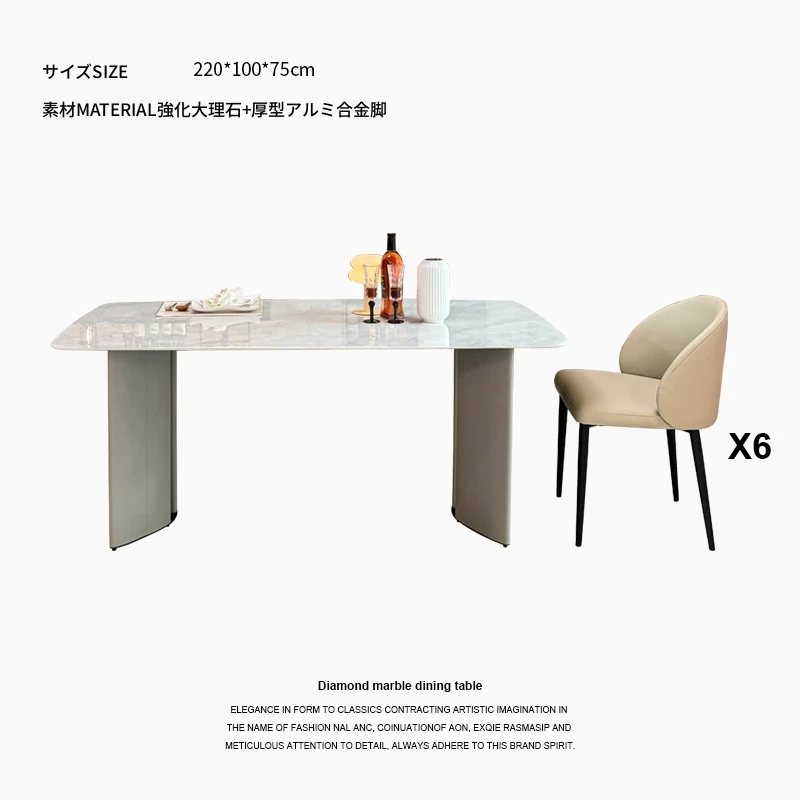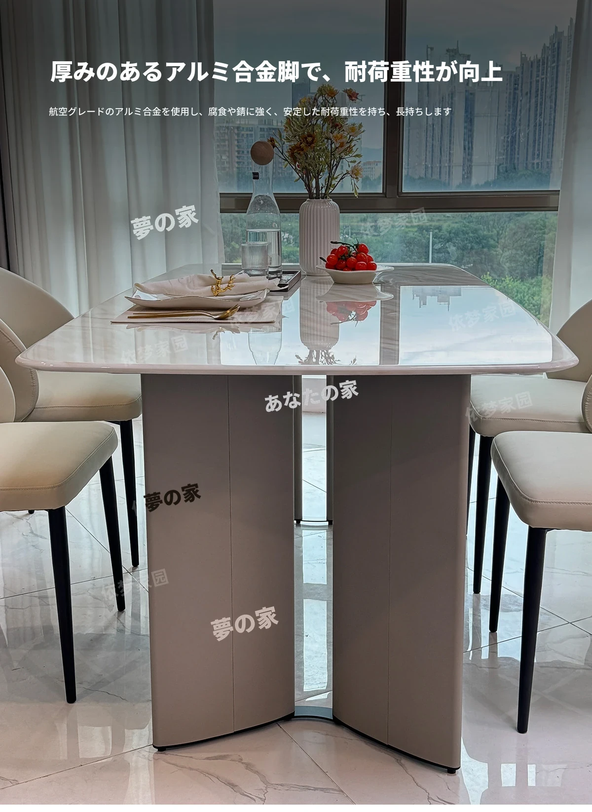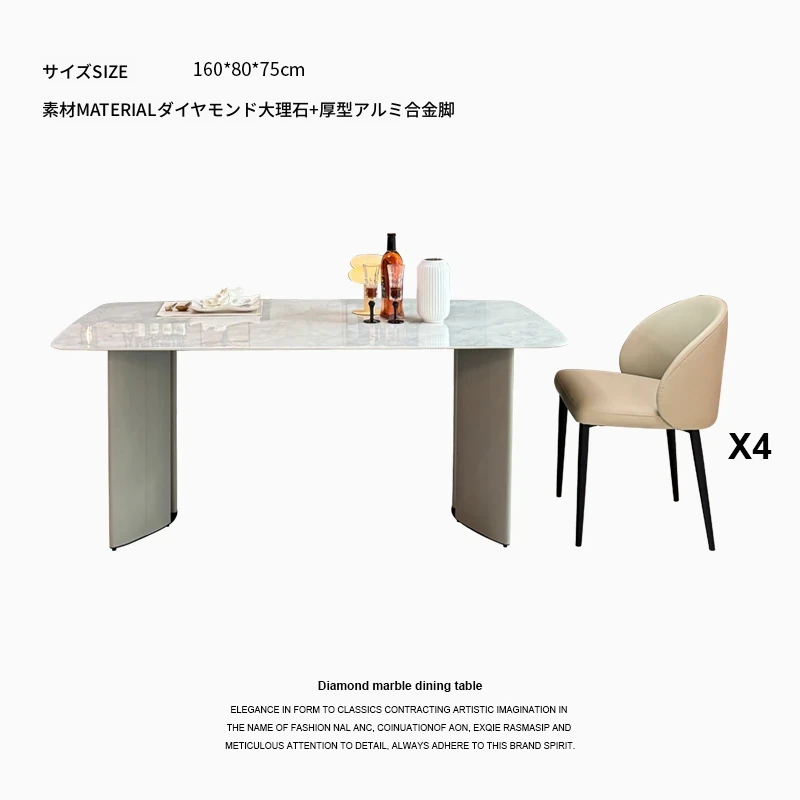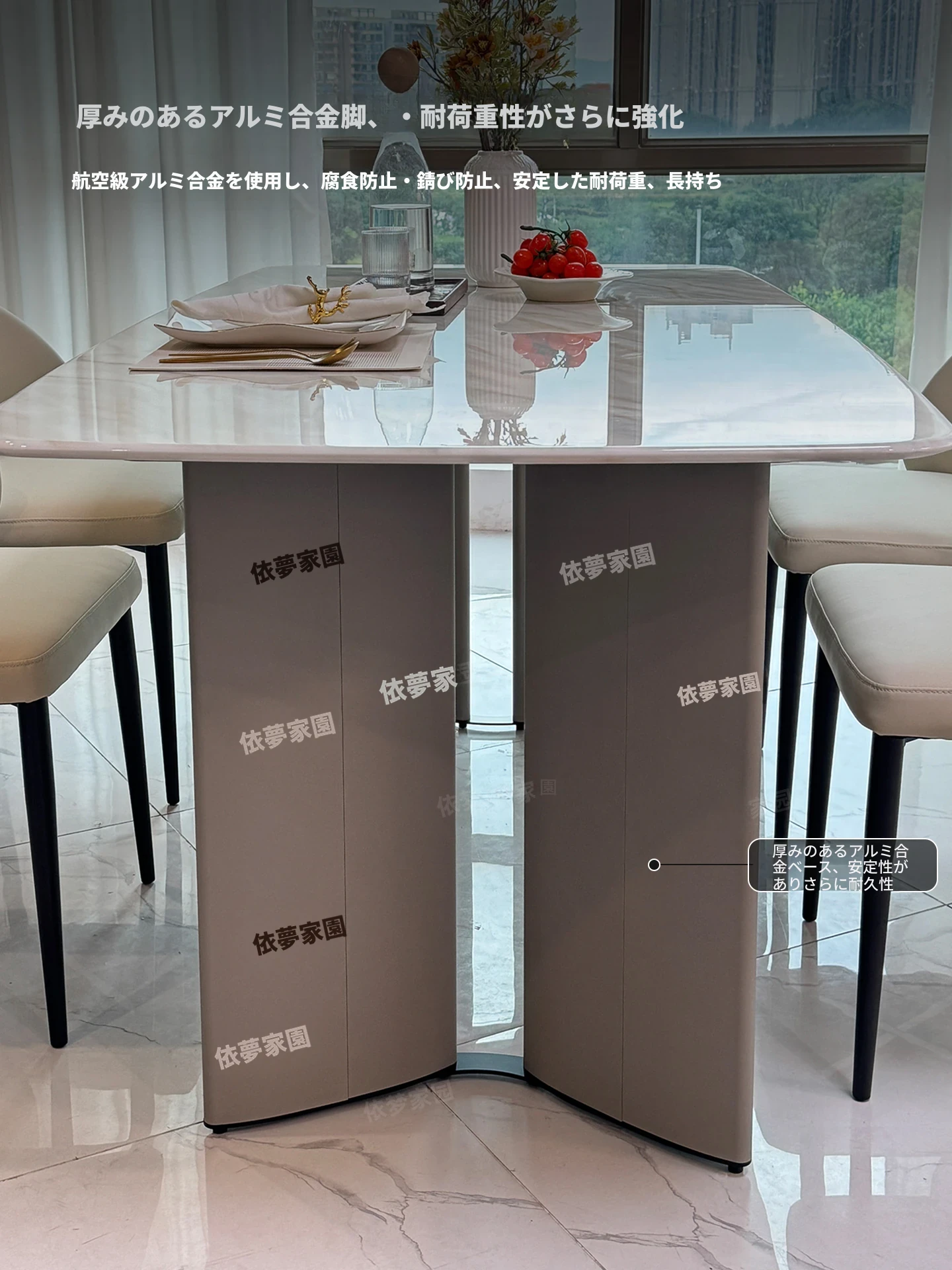 高級感溢れる軽奢大理石ダイニングテーブル&チェアセット - 天然超晶石&微晶石を使用した洗練されたデザイン!贅沢な彩晶石テーブルで、特別なひとときを演出します。