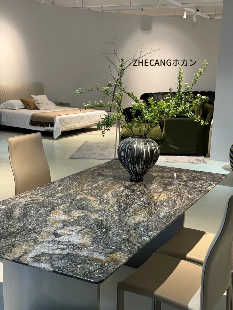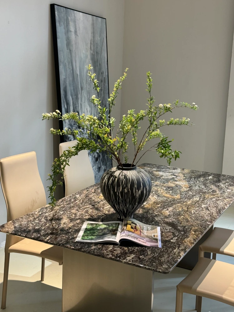 2.4メートルの高級石材ダイニングテーブル+4椅子