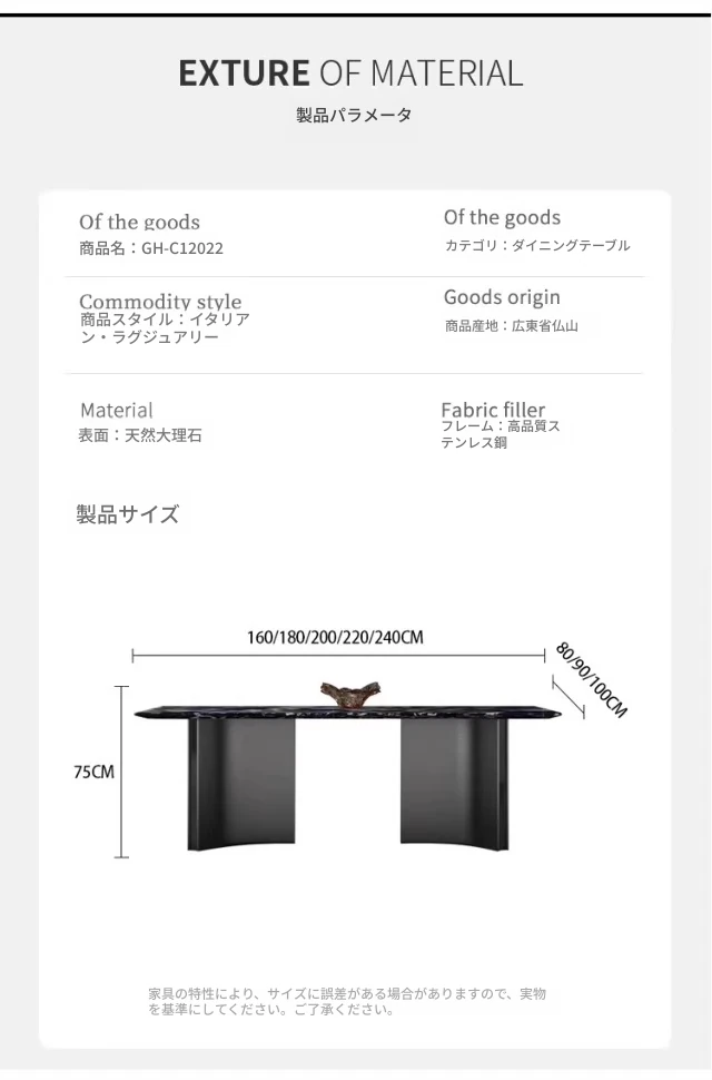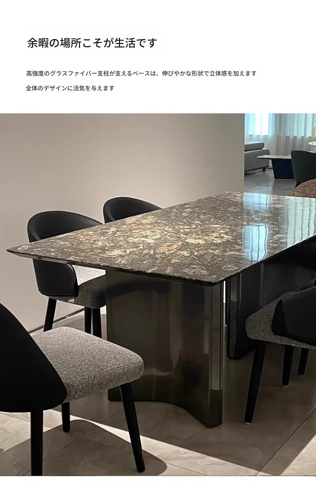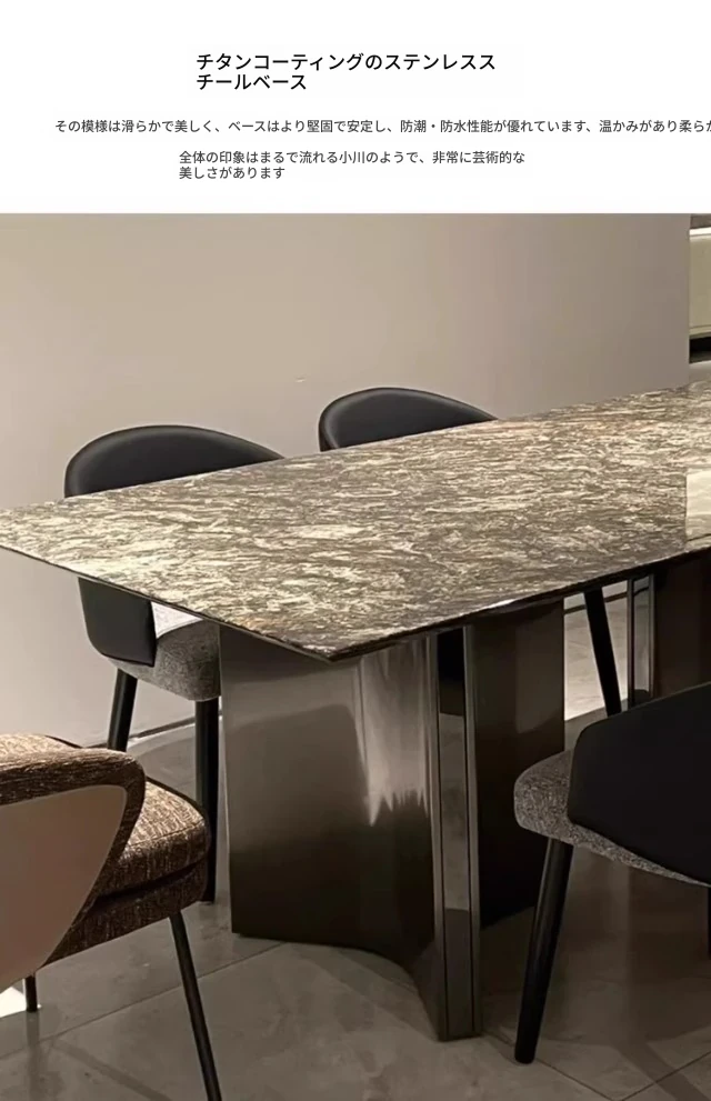 2.2メートルの高級石材ダイニングテーブル+8椅子
