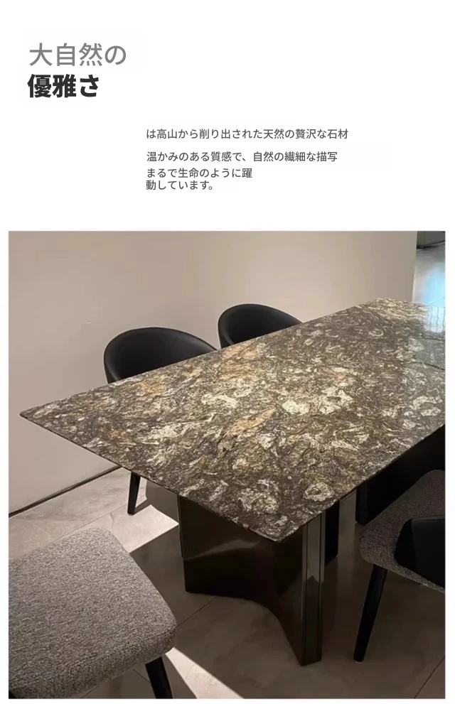 2.2メートルの高級石材ダイニングテーブル+6椅子