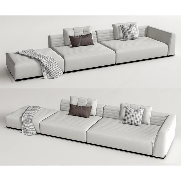 Elegant Italian Minimalist Sofa Set for Sales Office - Perfect for Hotel Lounges, VIP Areas, and Showrooms with Chic Chaise Lounge Design. Ideal for Comfortable Client Meetings and Relaxation.