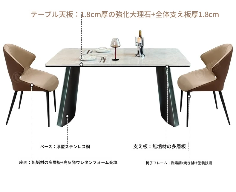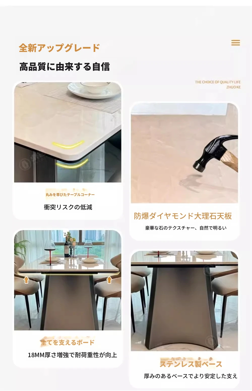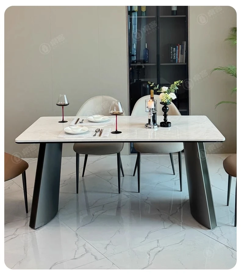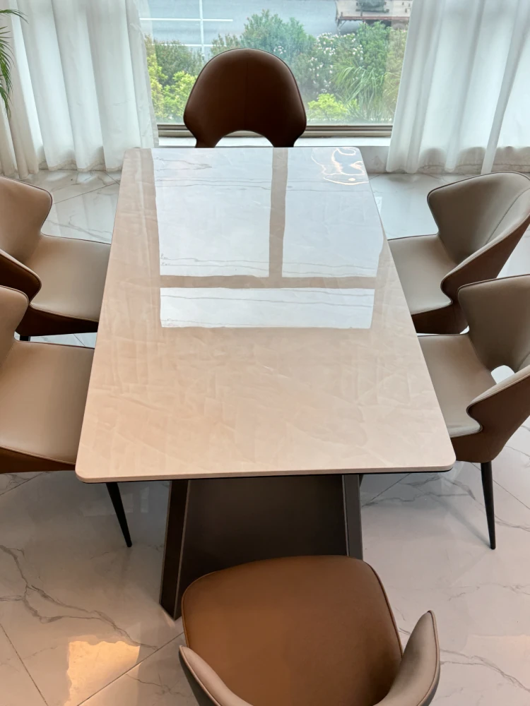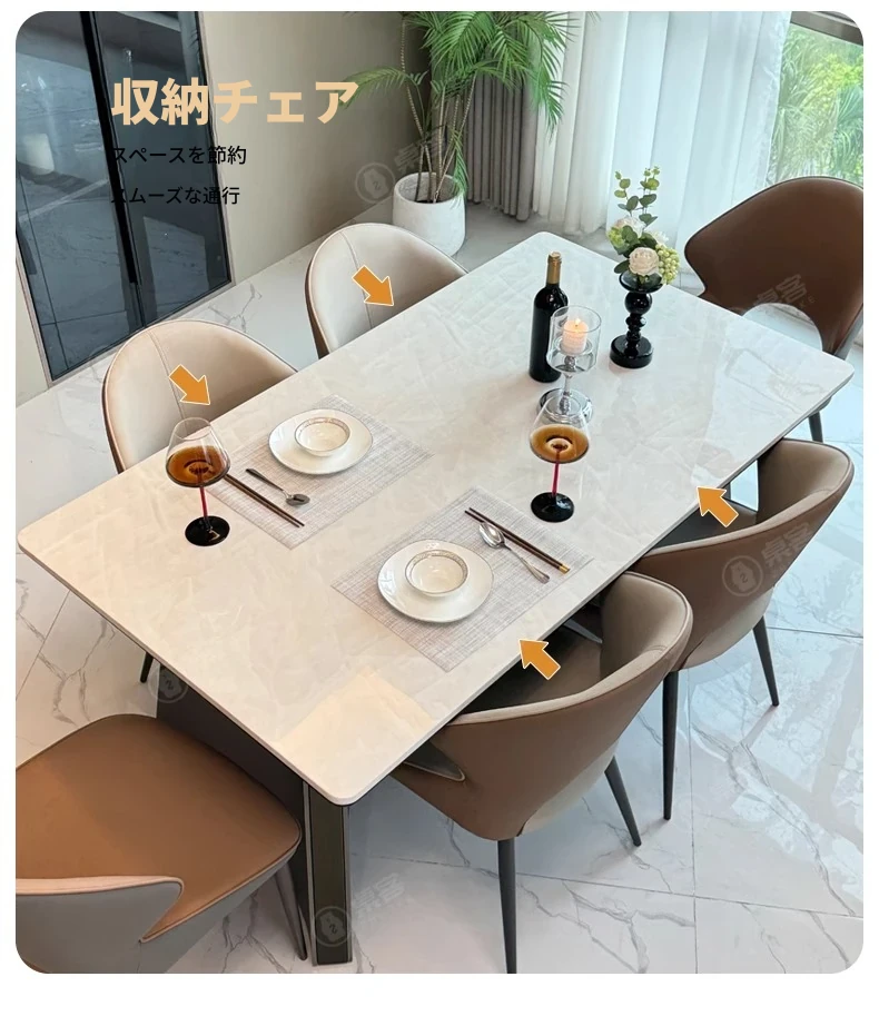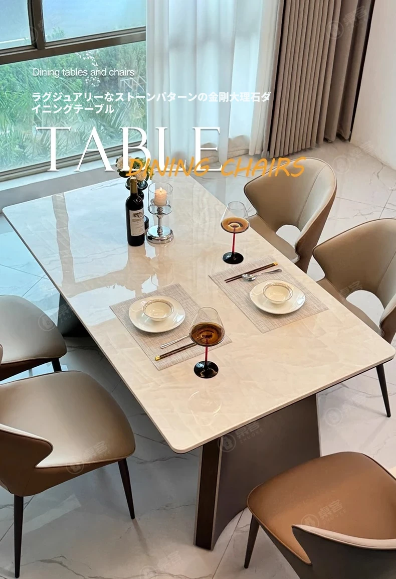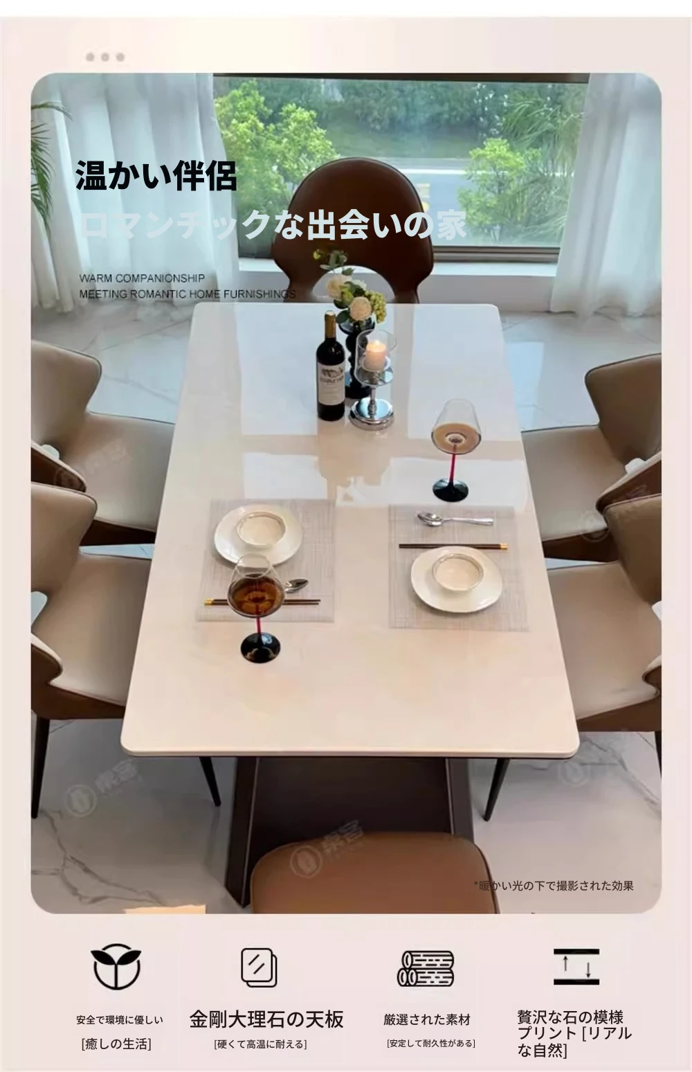 2025年新作!高級感溢れる軽奢スタイルの長方形ダイニングテーブルセット - モダンでシンプルな大理石製、家族や友人との食事にぴったり!