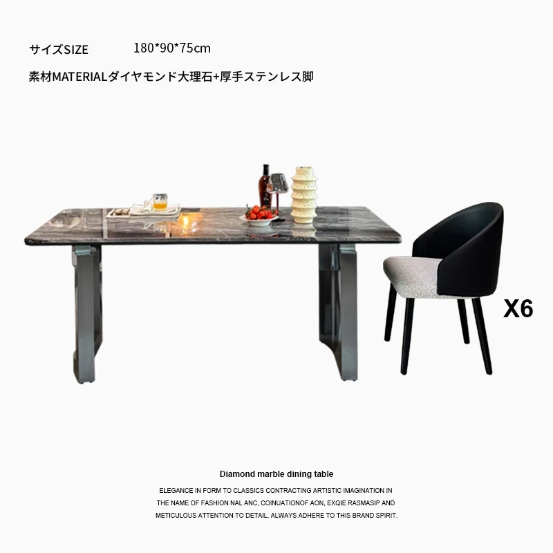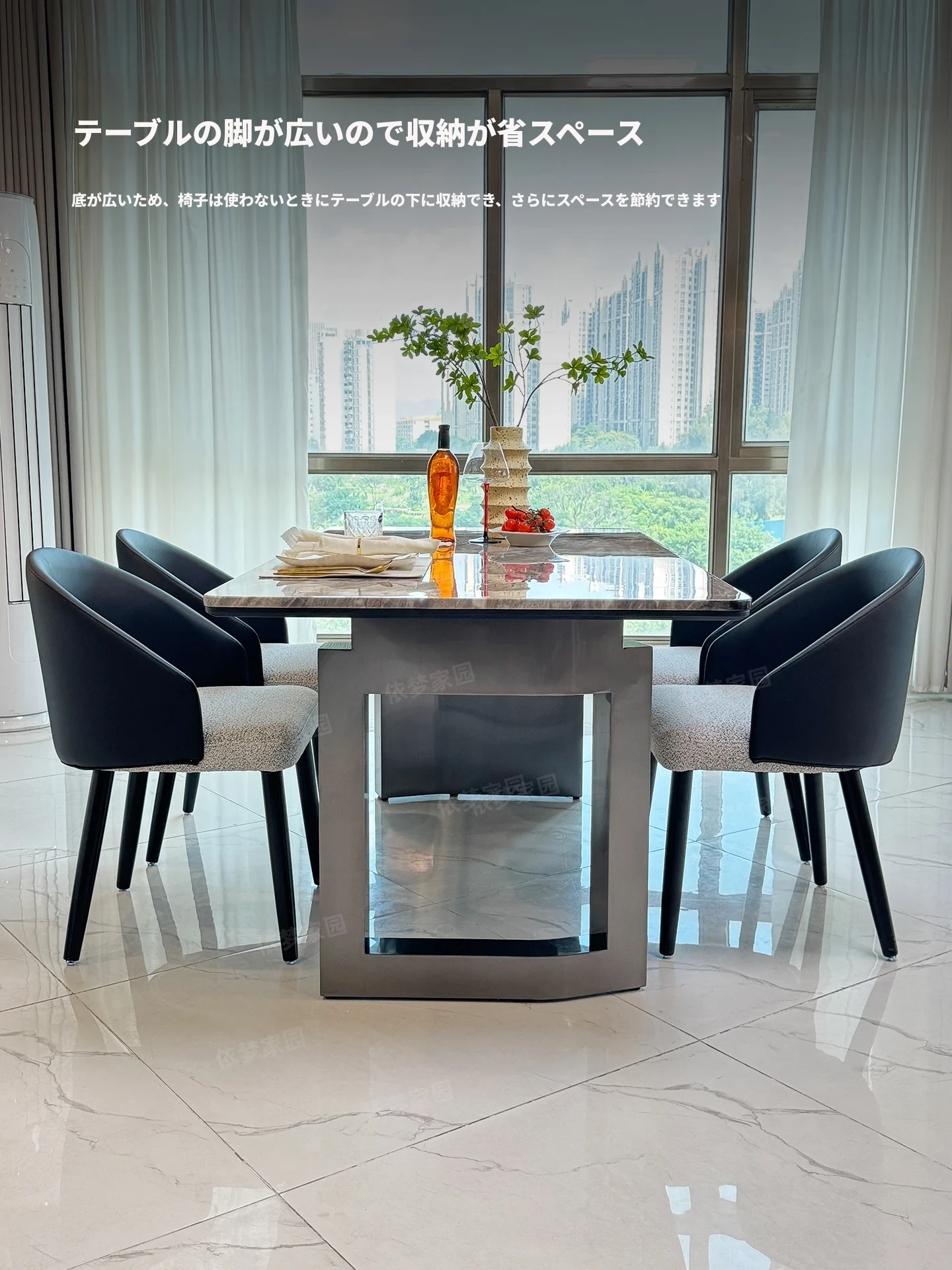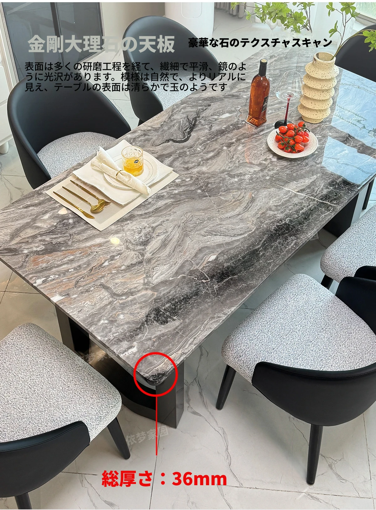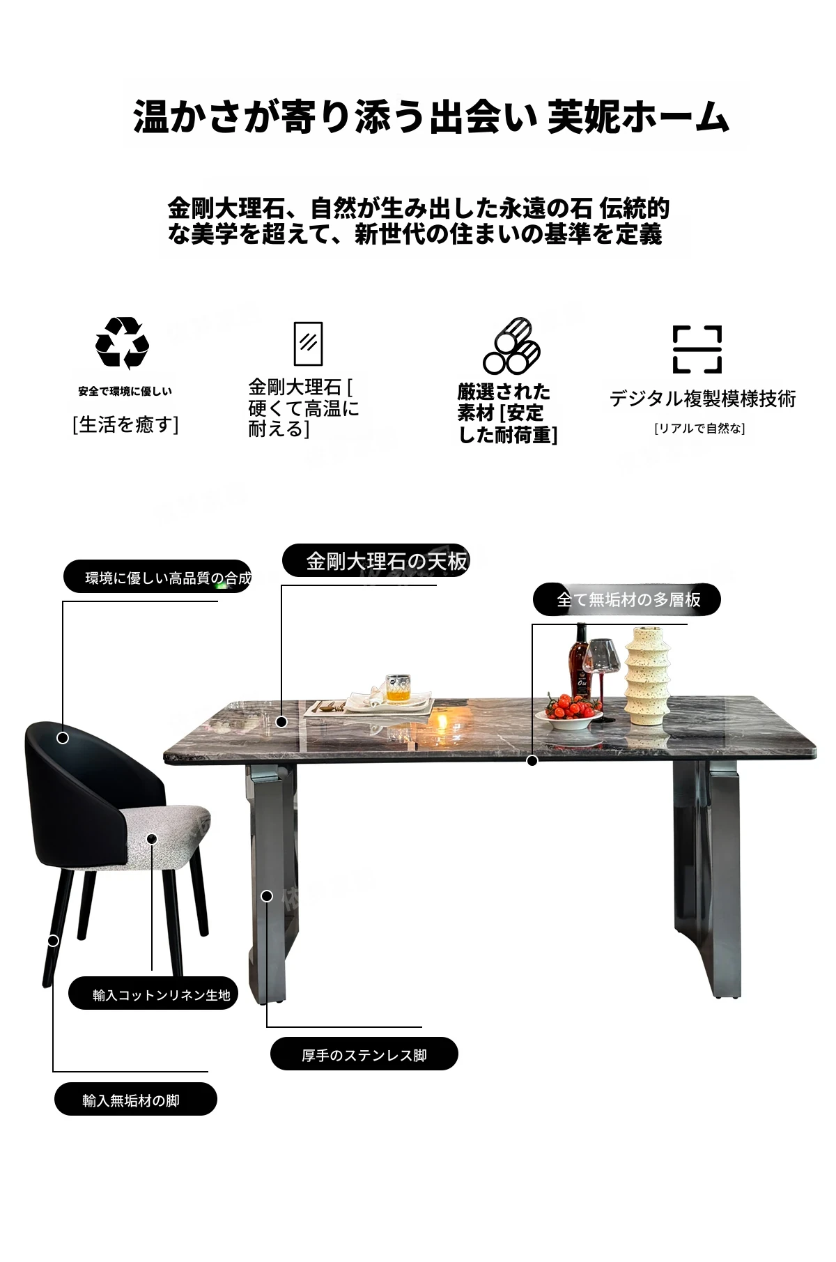 高級感あふれる大理石ダイニングテーブルセット - モダンでシンプルなデザイン、天然ミクロクリスタルストーン使用で高級感満載。おしゃれな食卓を演出し、特別なひとときをお届けします!