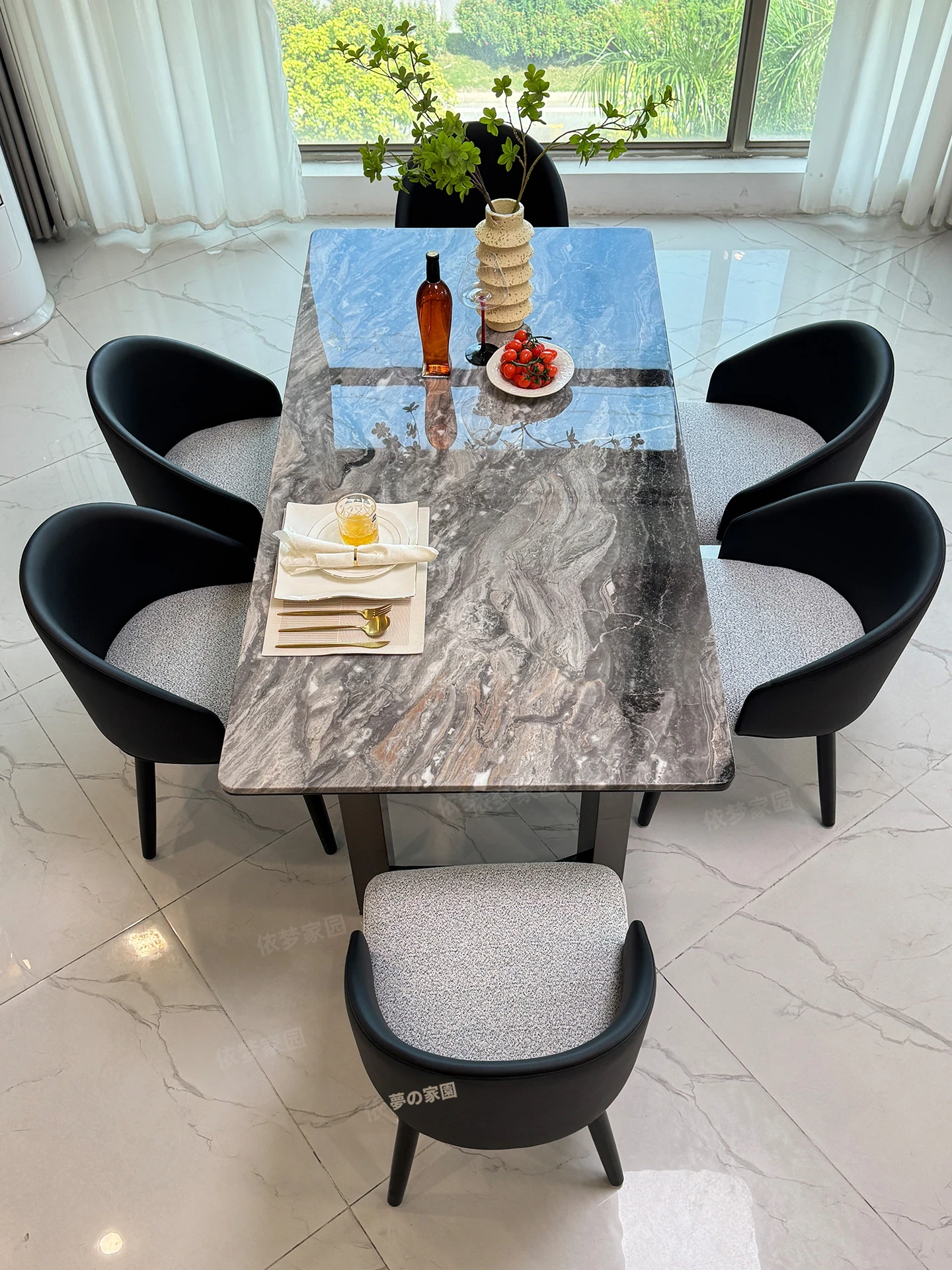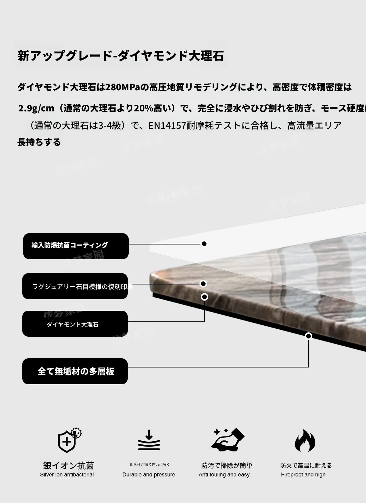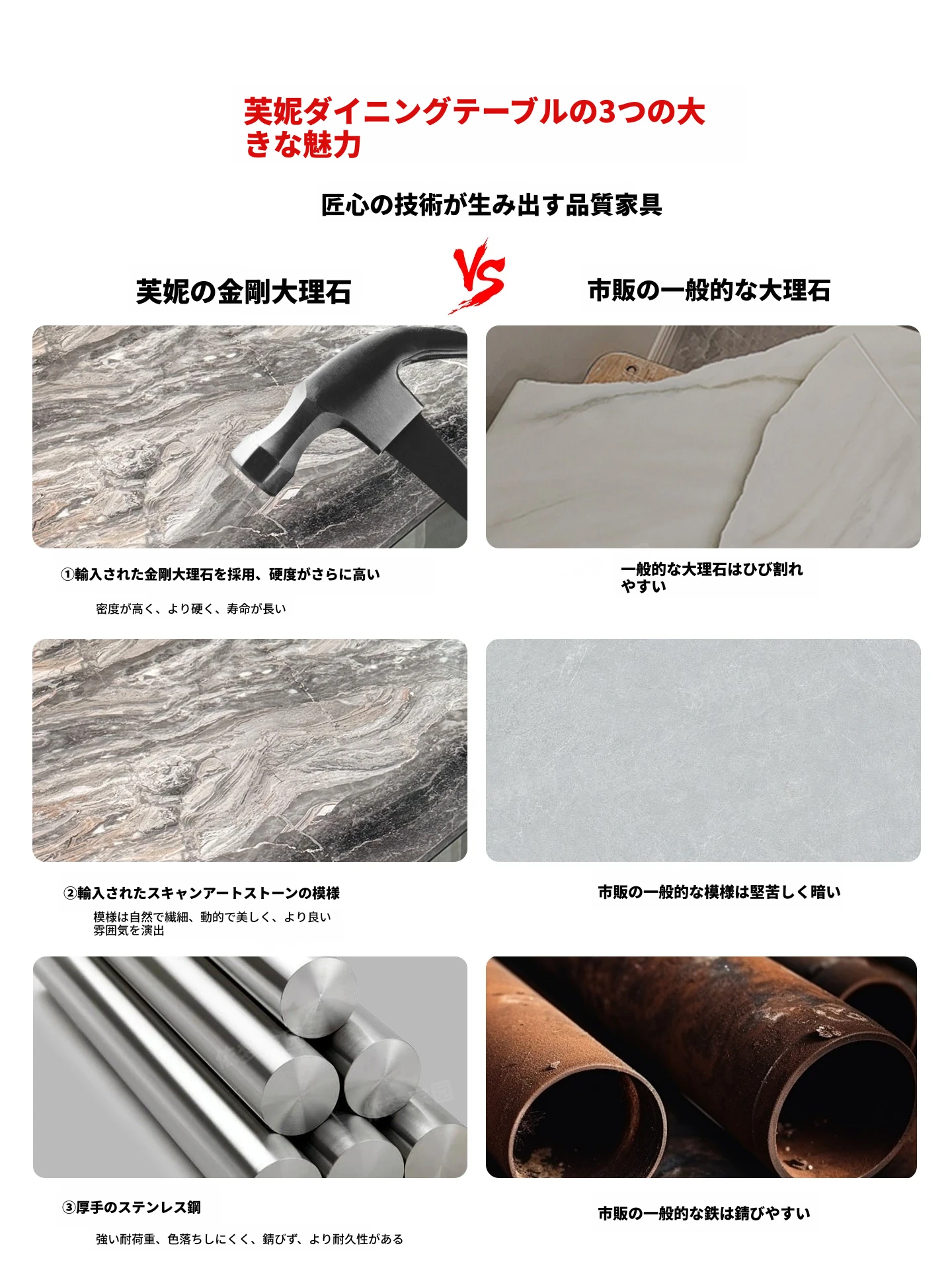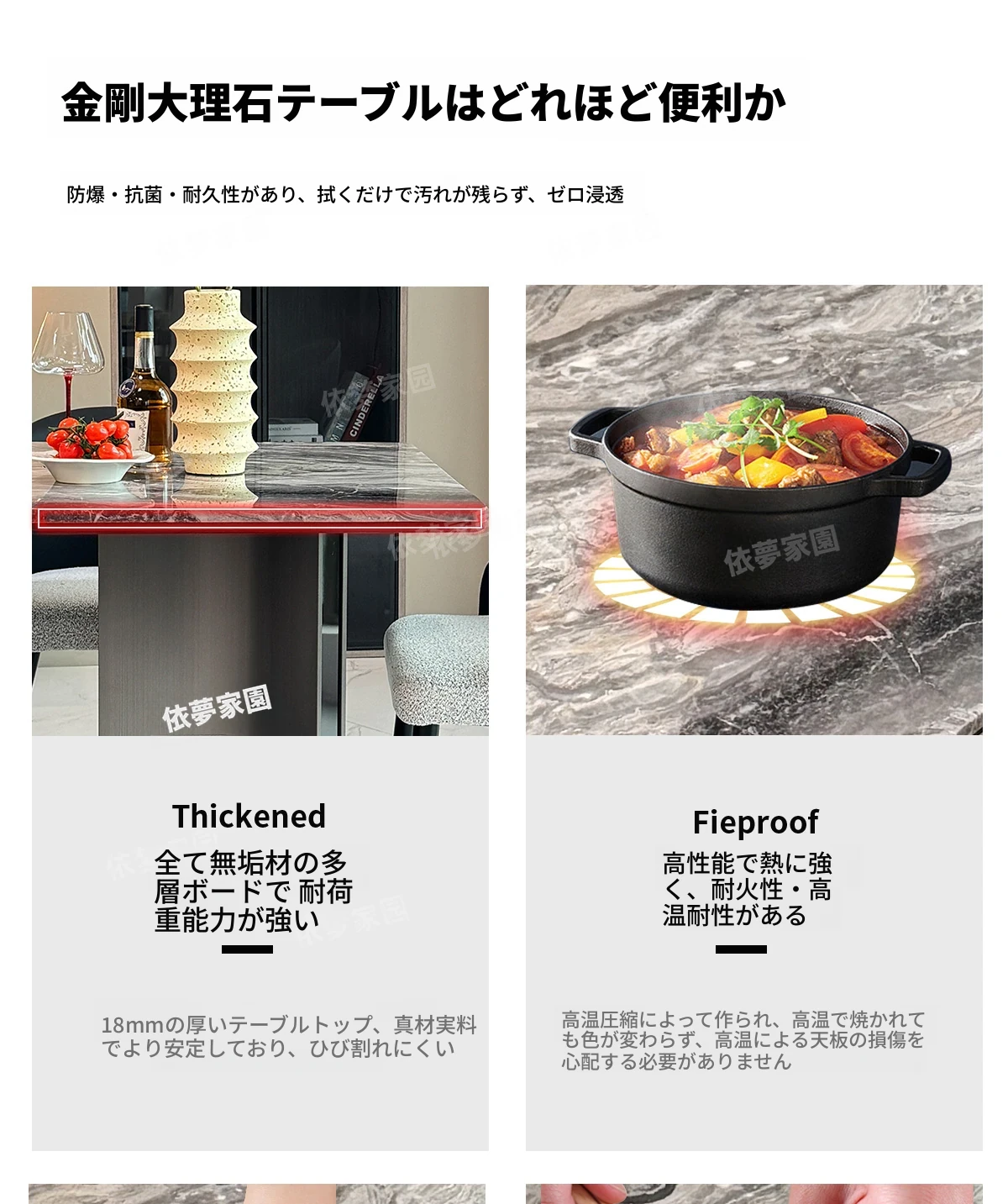 高級感あふれる大理石ダイニングテーブルセット - モダンでシンプルなデザイン、天然ミクロクリスタルストーン使用で高級感満載。おしゃれな食卓を演出し、特別なひとときをお届けします!