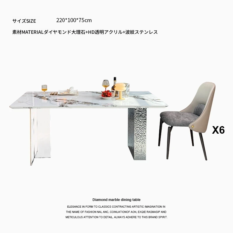 2.2メートル大理石ダイニングテーブル+6椅子