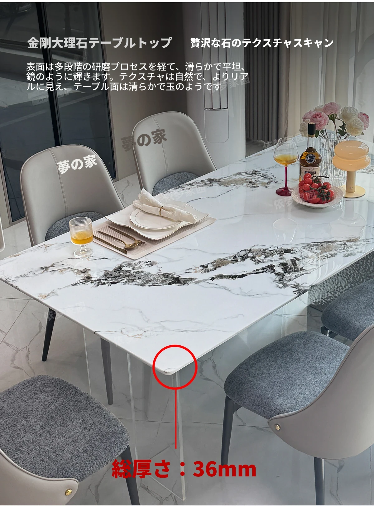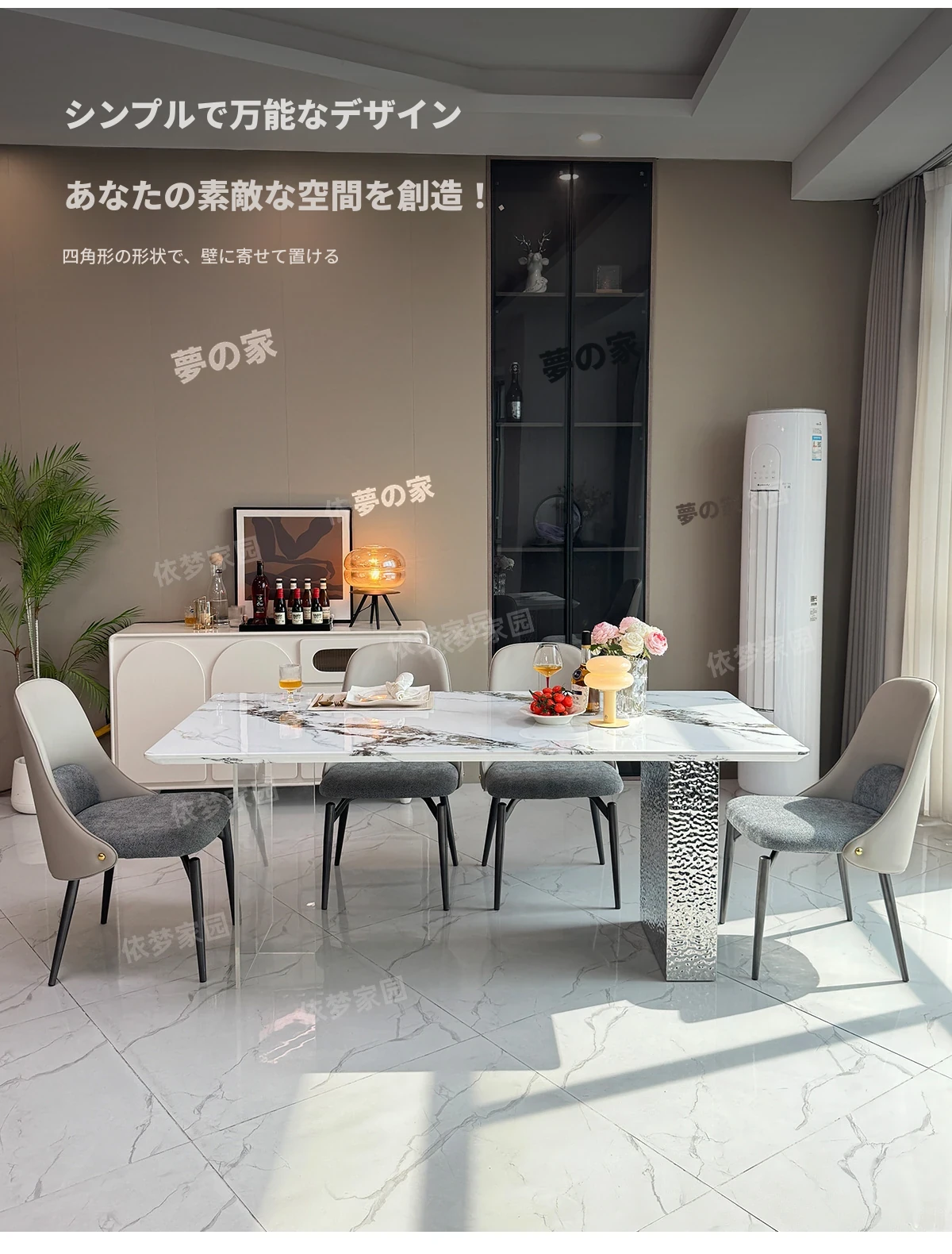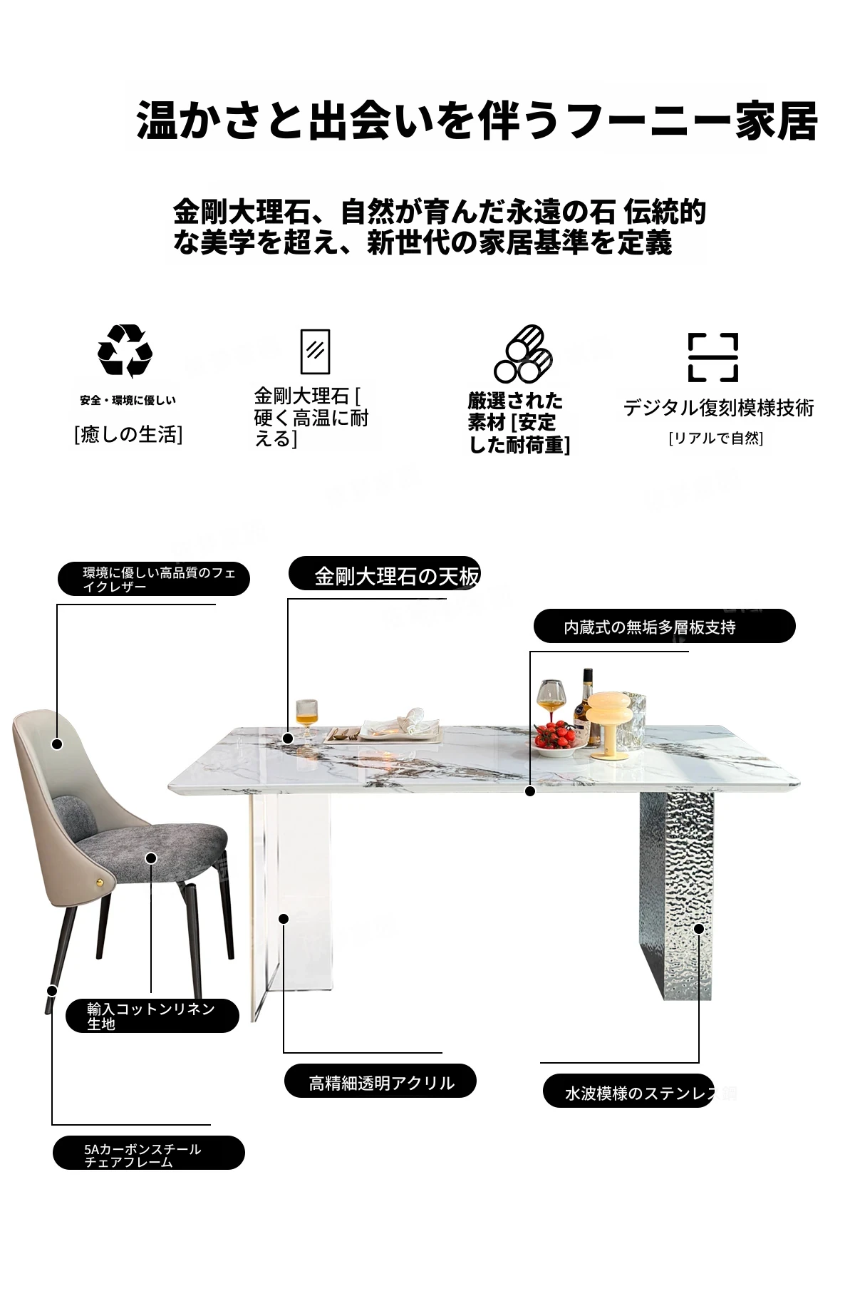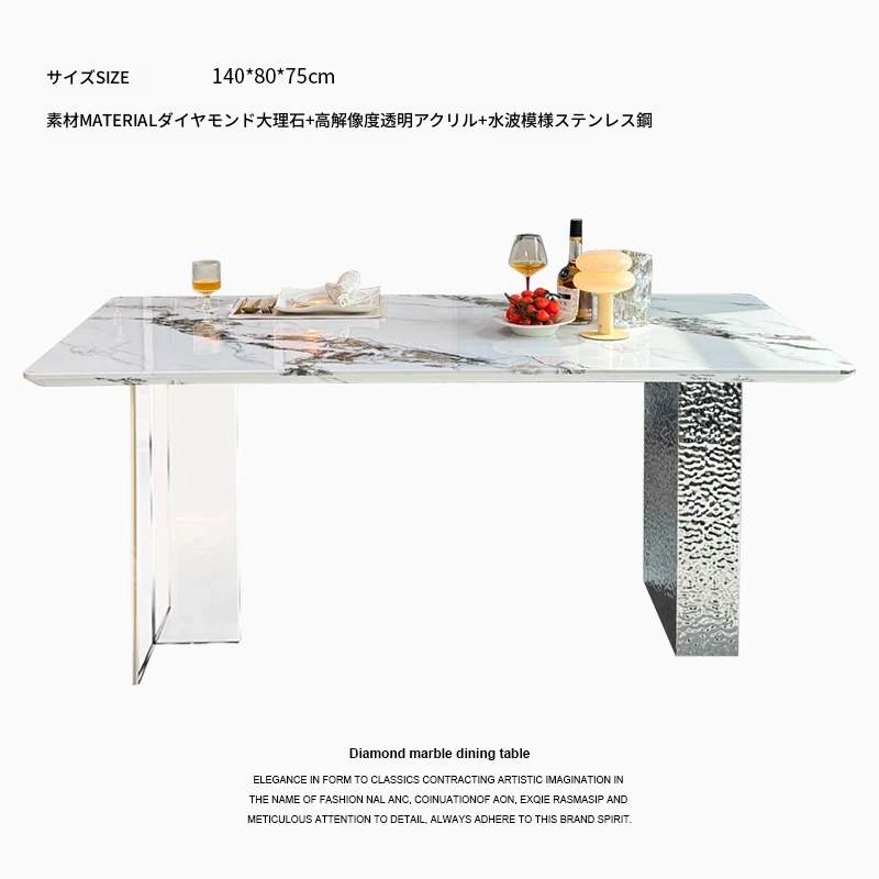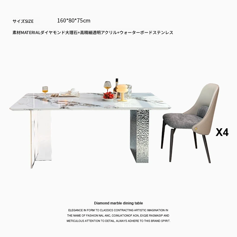 洗練された大理石のダイニングテーブル&チェアセット - モダンでシンプルなデザインが魅力!高級感あふれる家庭用アイテムで、毎日の食卓を特別な空間に演出します。