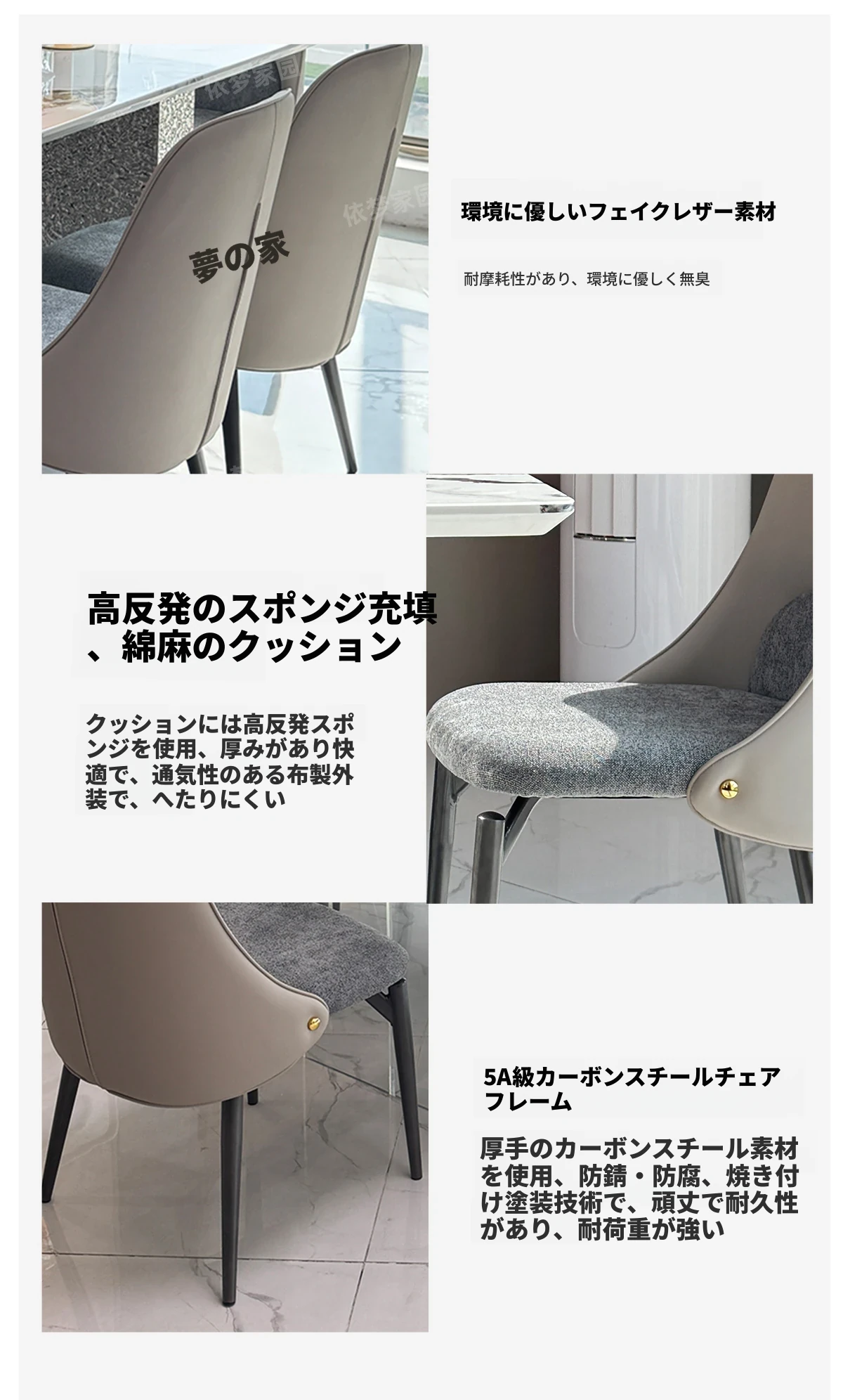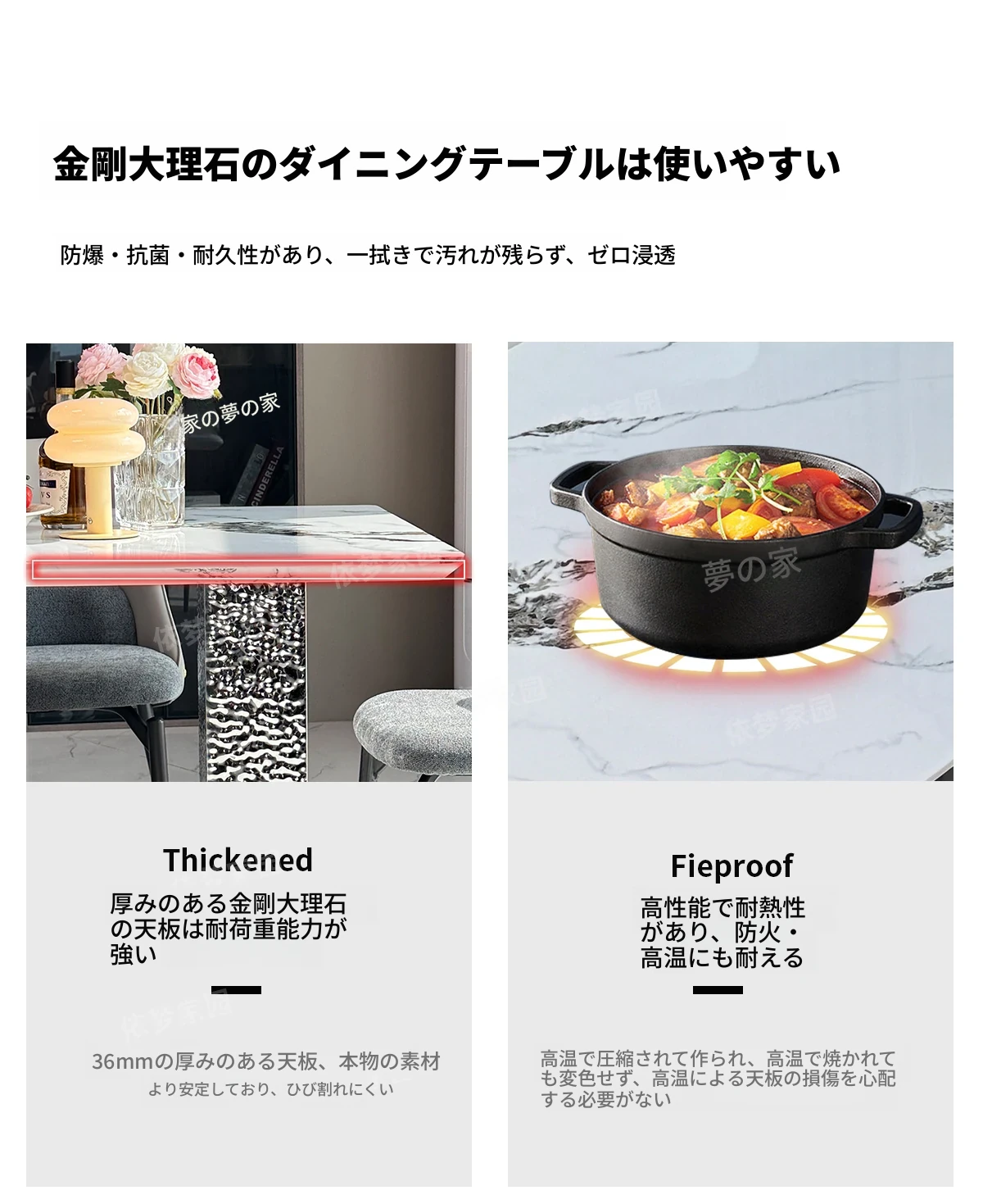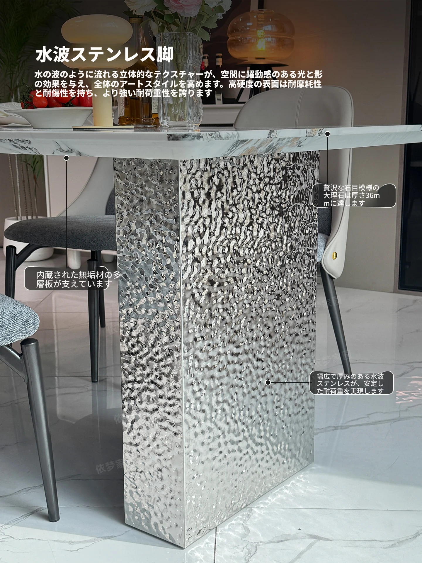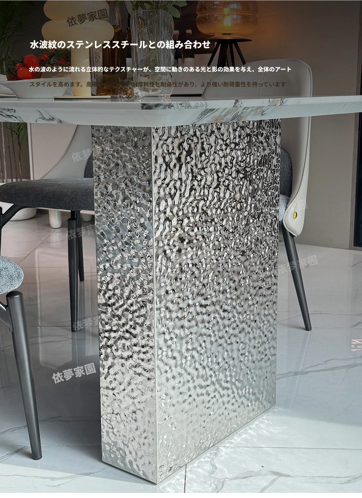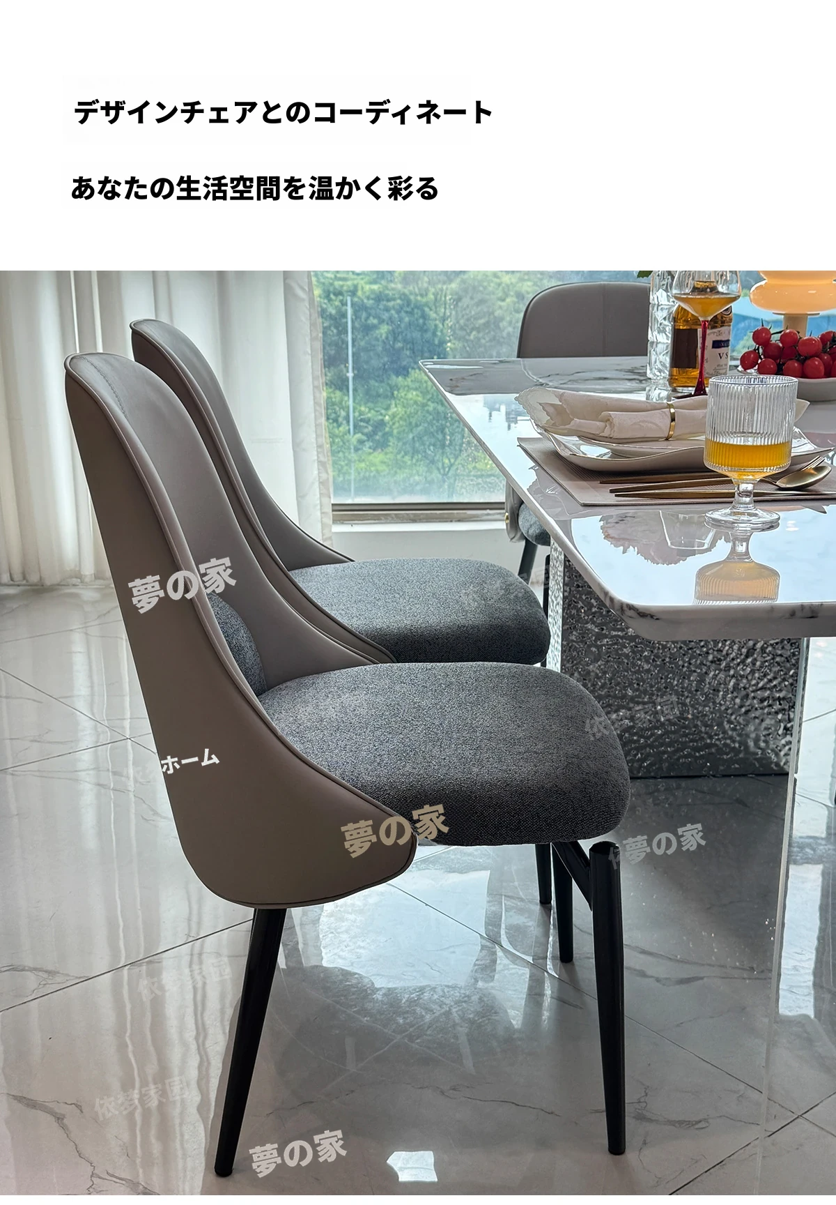 洗練された大理石のダイニングテーブル&チェアセット - モダンでシンプルなデザインが魅力!高級感あふれる家庭用アイテムで、毎日の食卓を特別な空間に演出します。