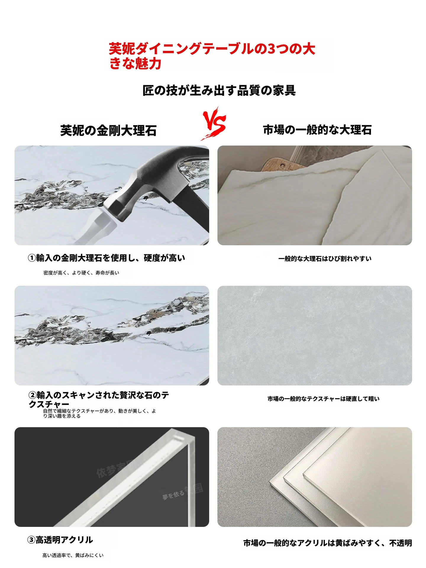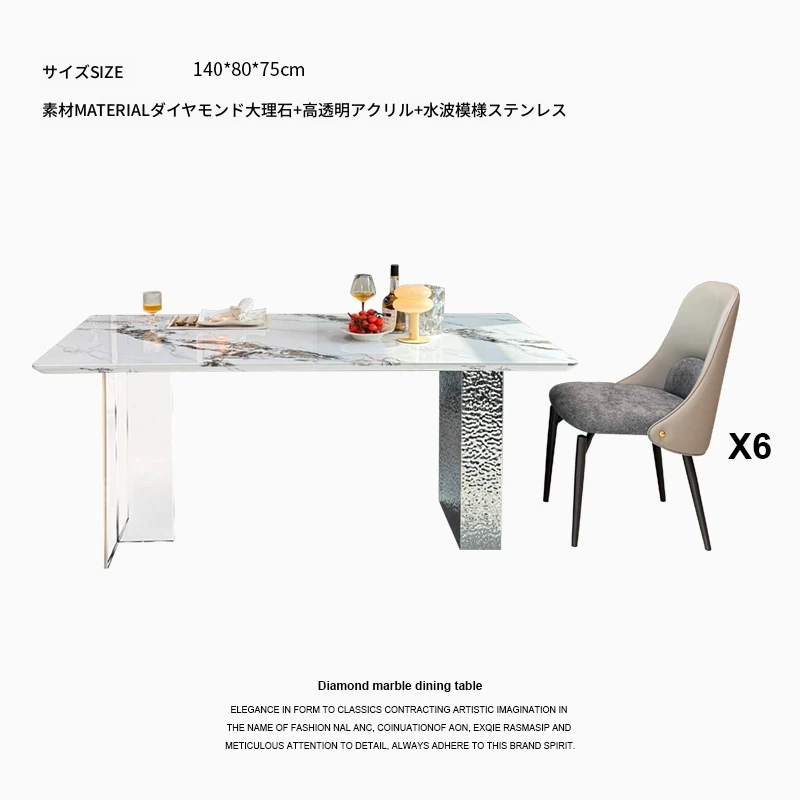 1.8メートル大理石ダイニングテーブル+6椅子