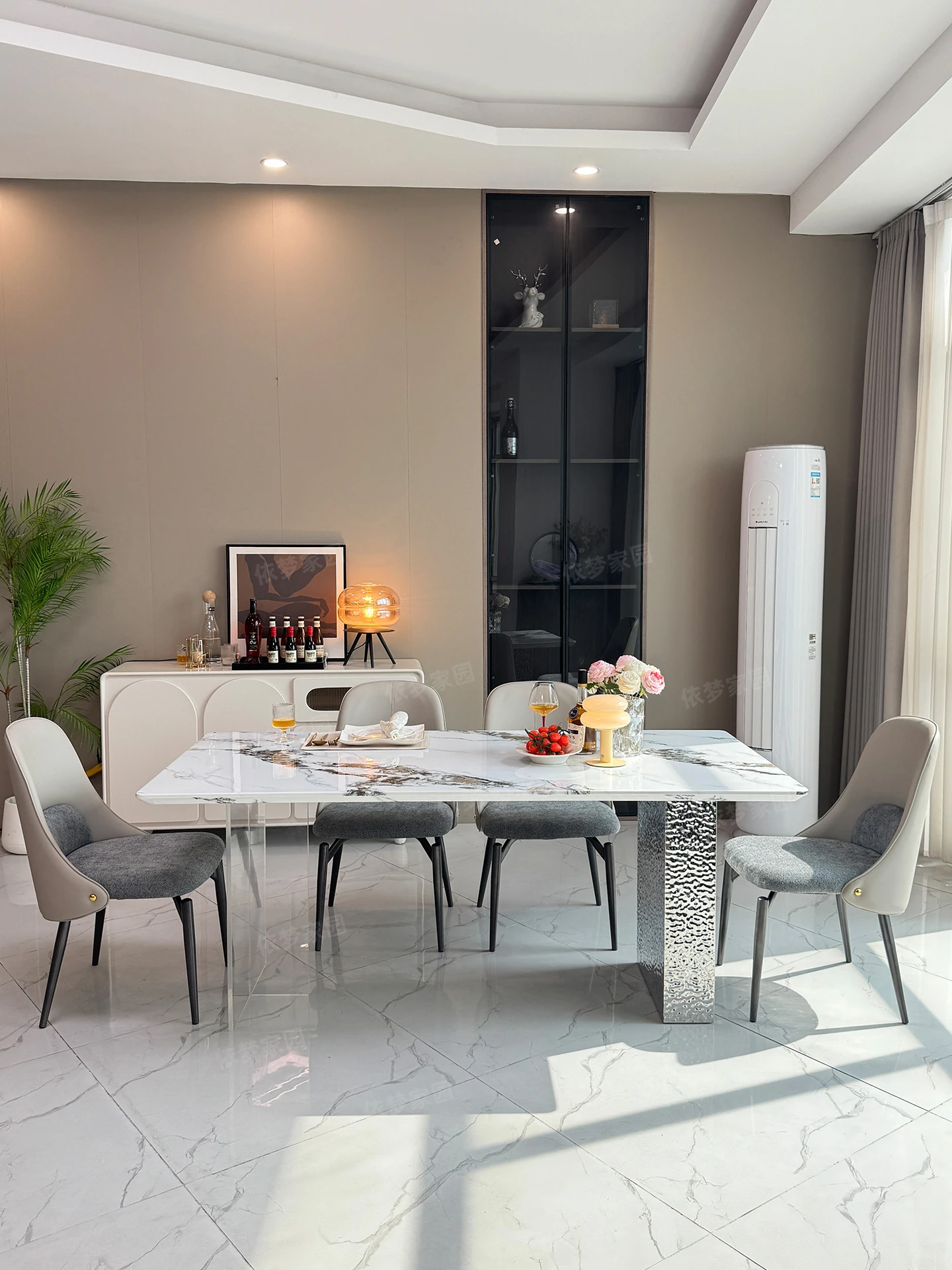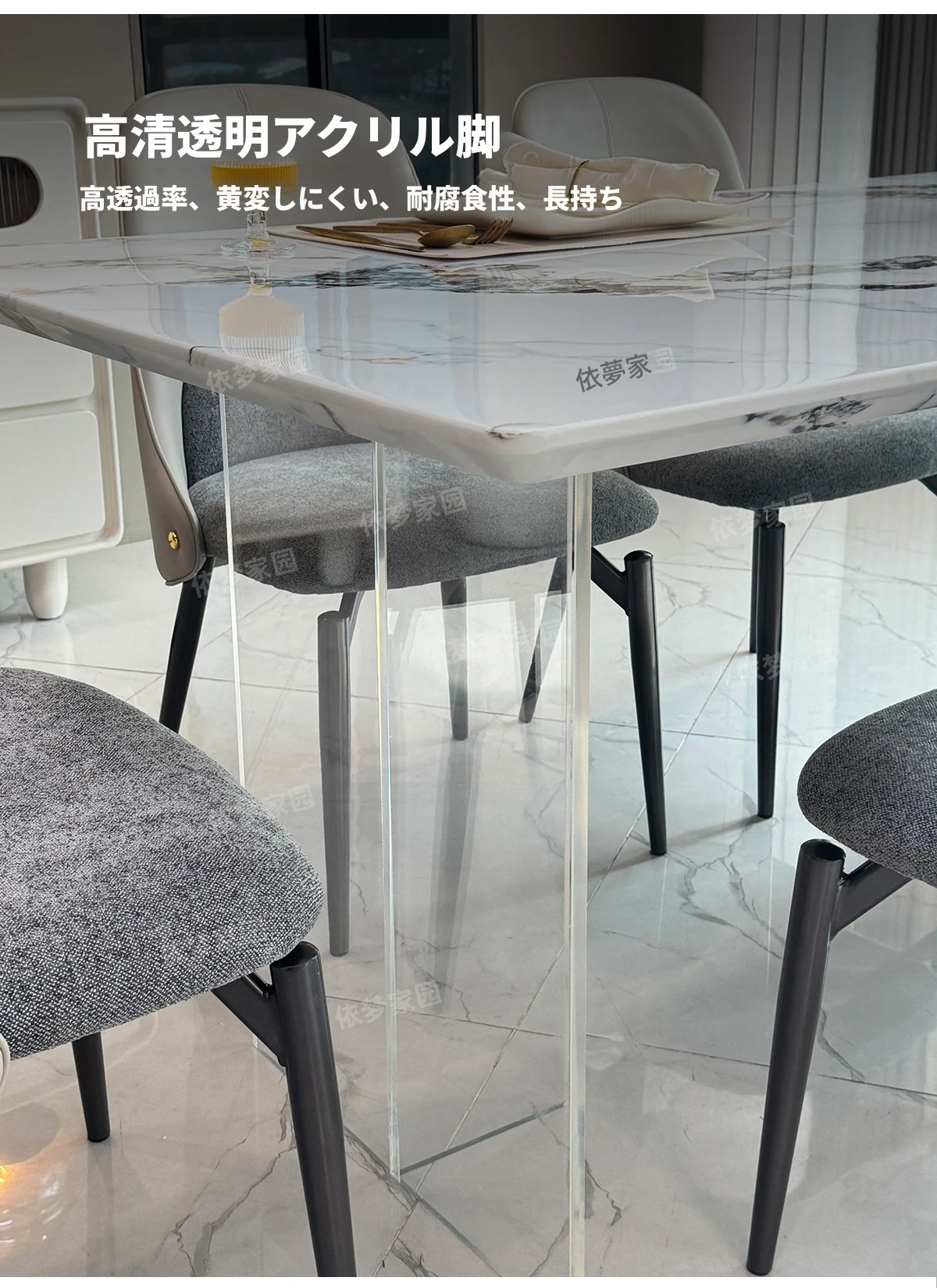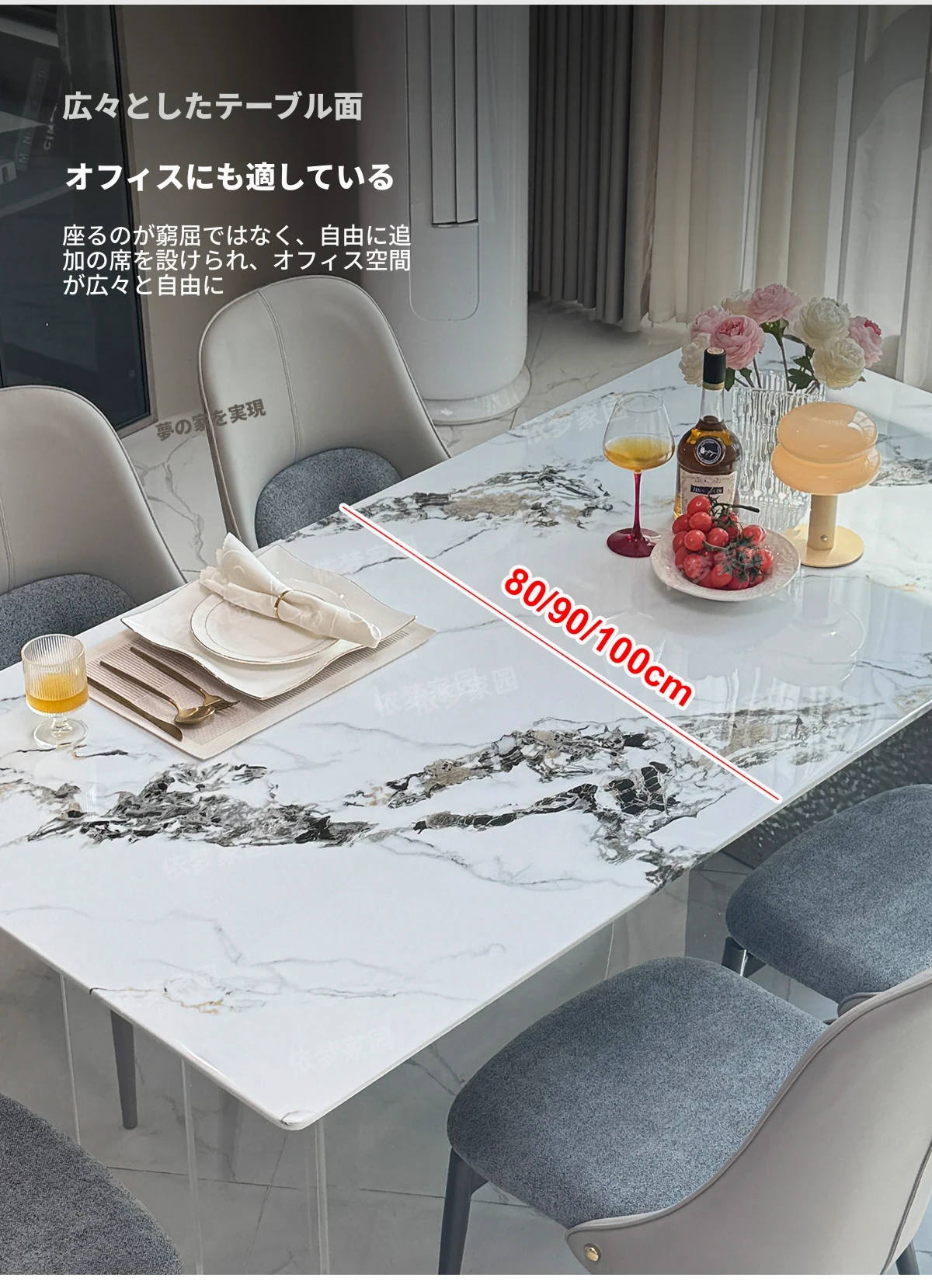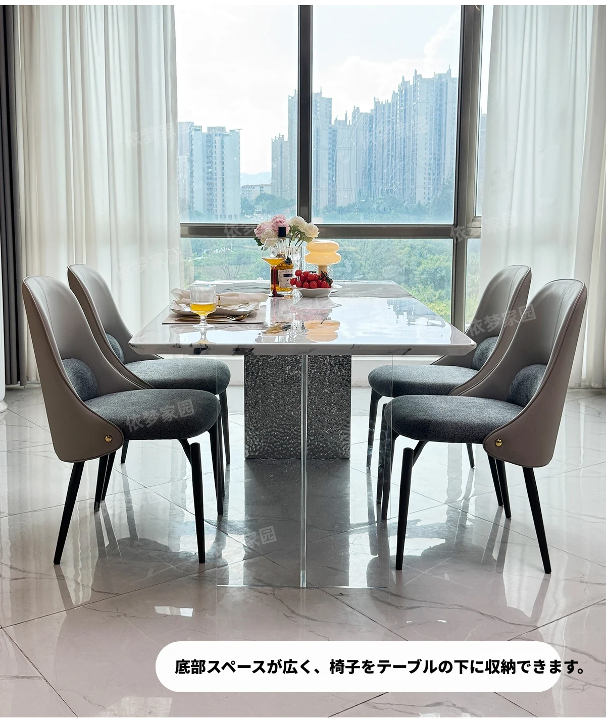 2.4メートル大理石ダイニングテーブル+4椅子