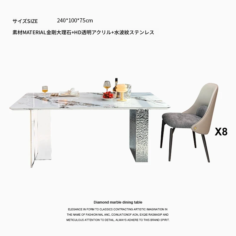 2.4メートル大理石ダイニングテーブル+8椅子