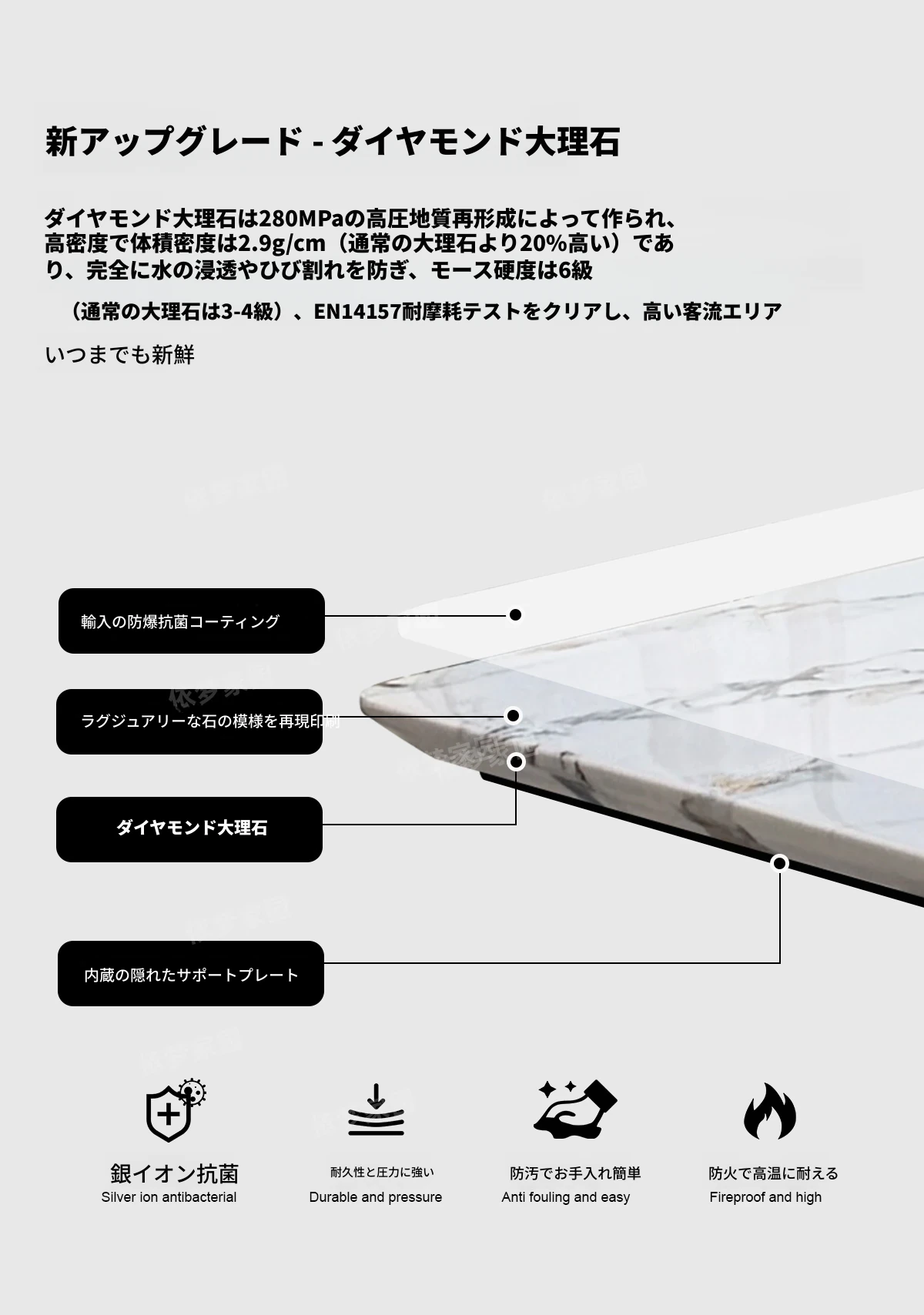 1.8メートル大理石ダイニングテーブル