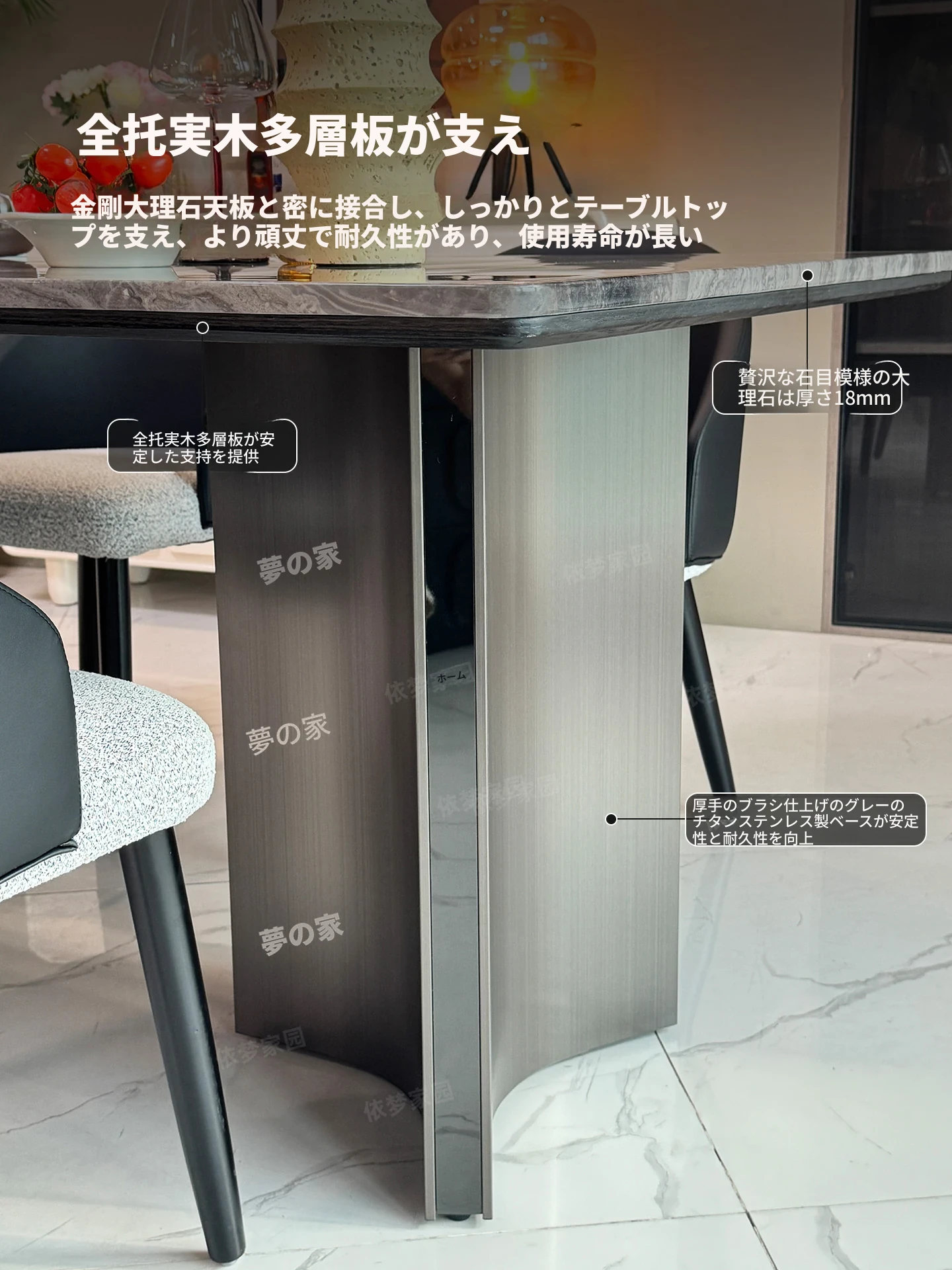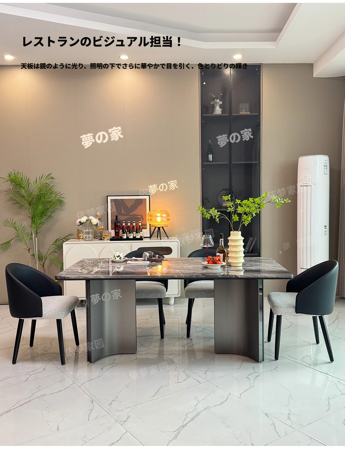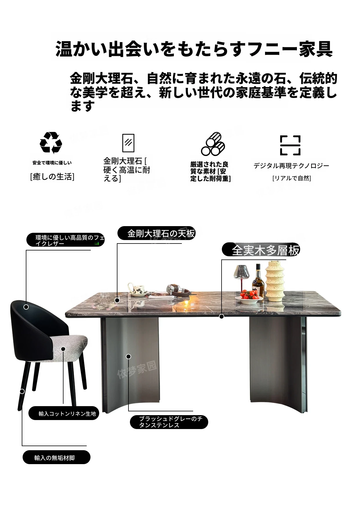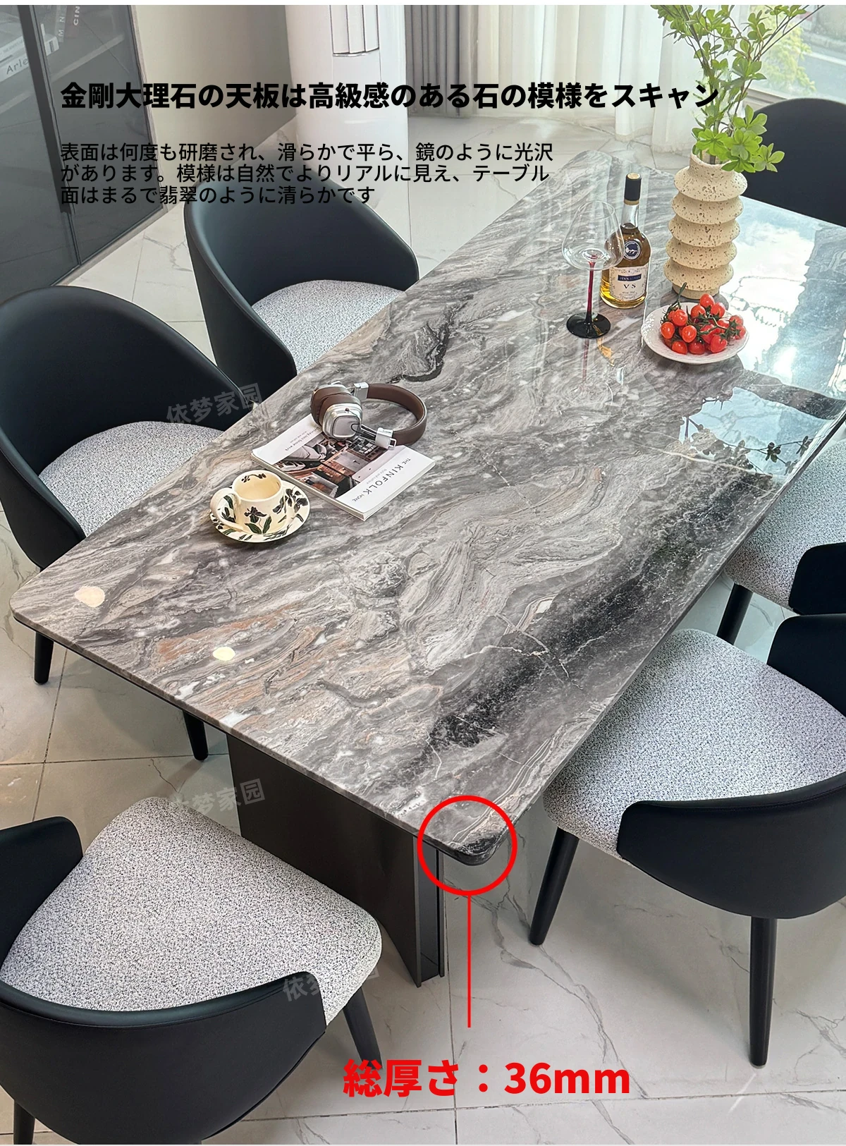 軽奢感漂う大理石ダイニングテーブル&チェアセット|モダンでシンプルなデザイン|天然ミクロクリスタル石を使用した贅沢な食卓を演出!