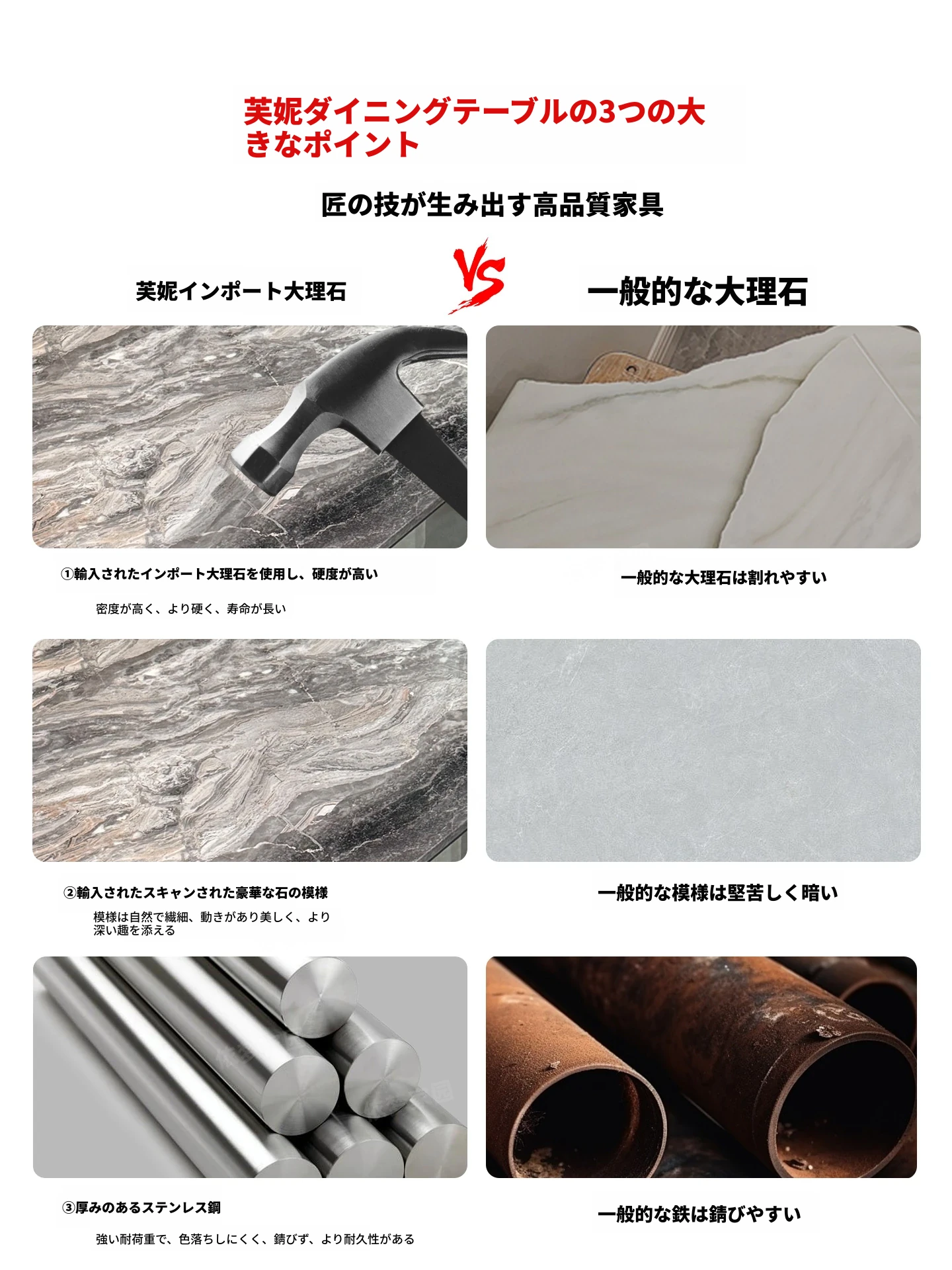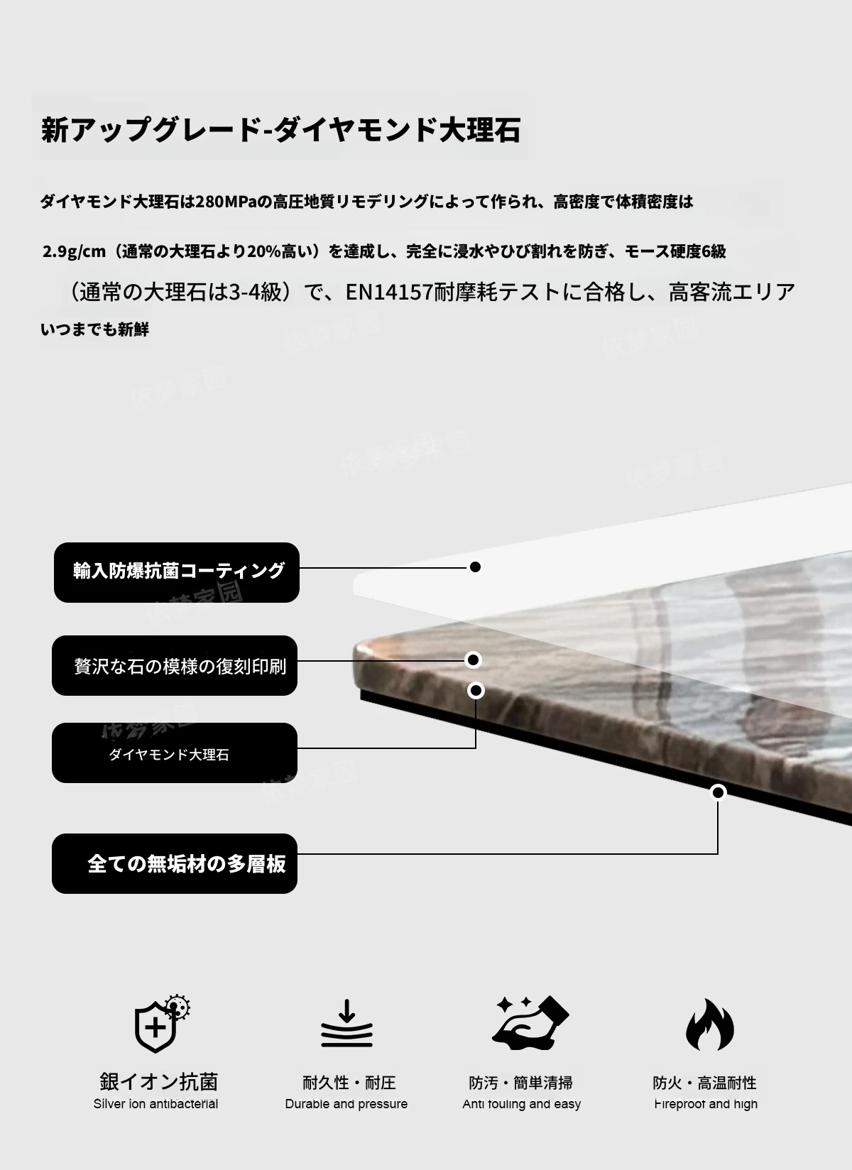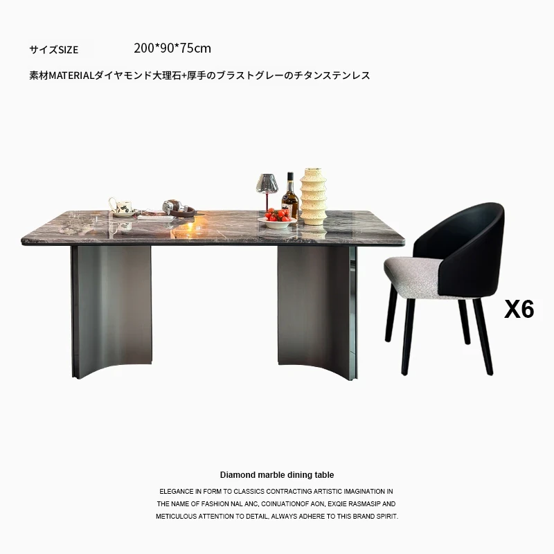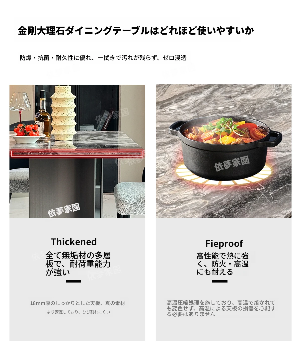 軽奢感漂う大理石ダイニングテーブル&チェアセット|モダンでシンプルなデザイン|天然ミクロクリスタル石を使用した贅沢な食卓を演出!