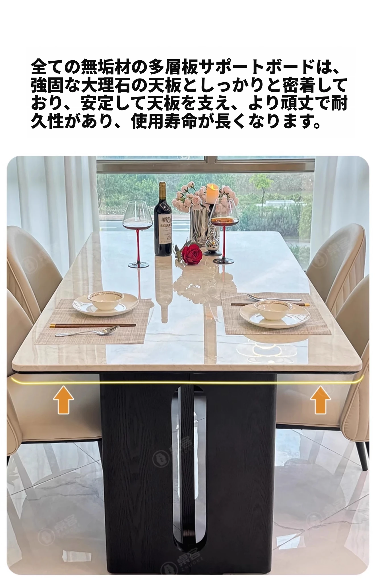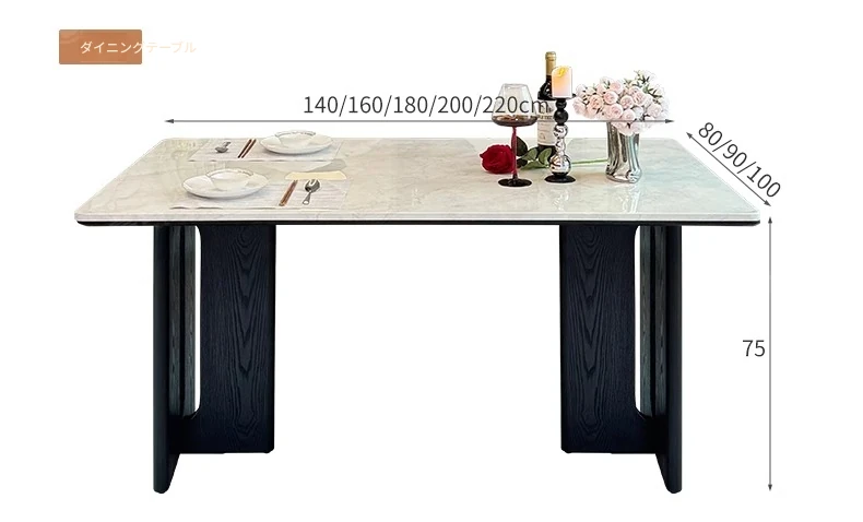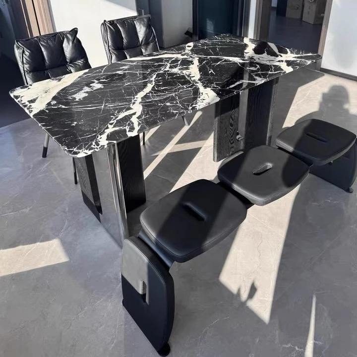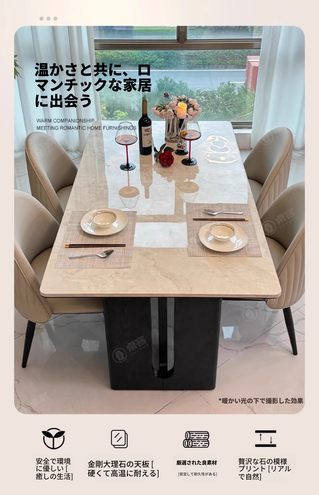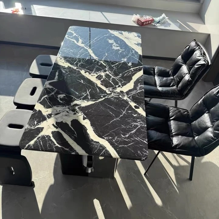 高級シンプル軽奢大理石ダイニングテーブル ブラックローズストーンの贅沢な石纹面 食卓椅子セット 小型住宅に最適なスタイリッシュなダイニングテーブル