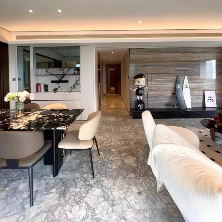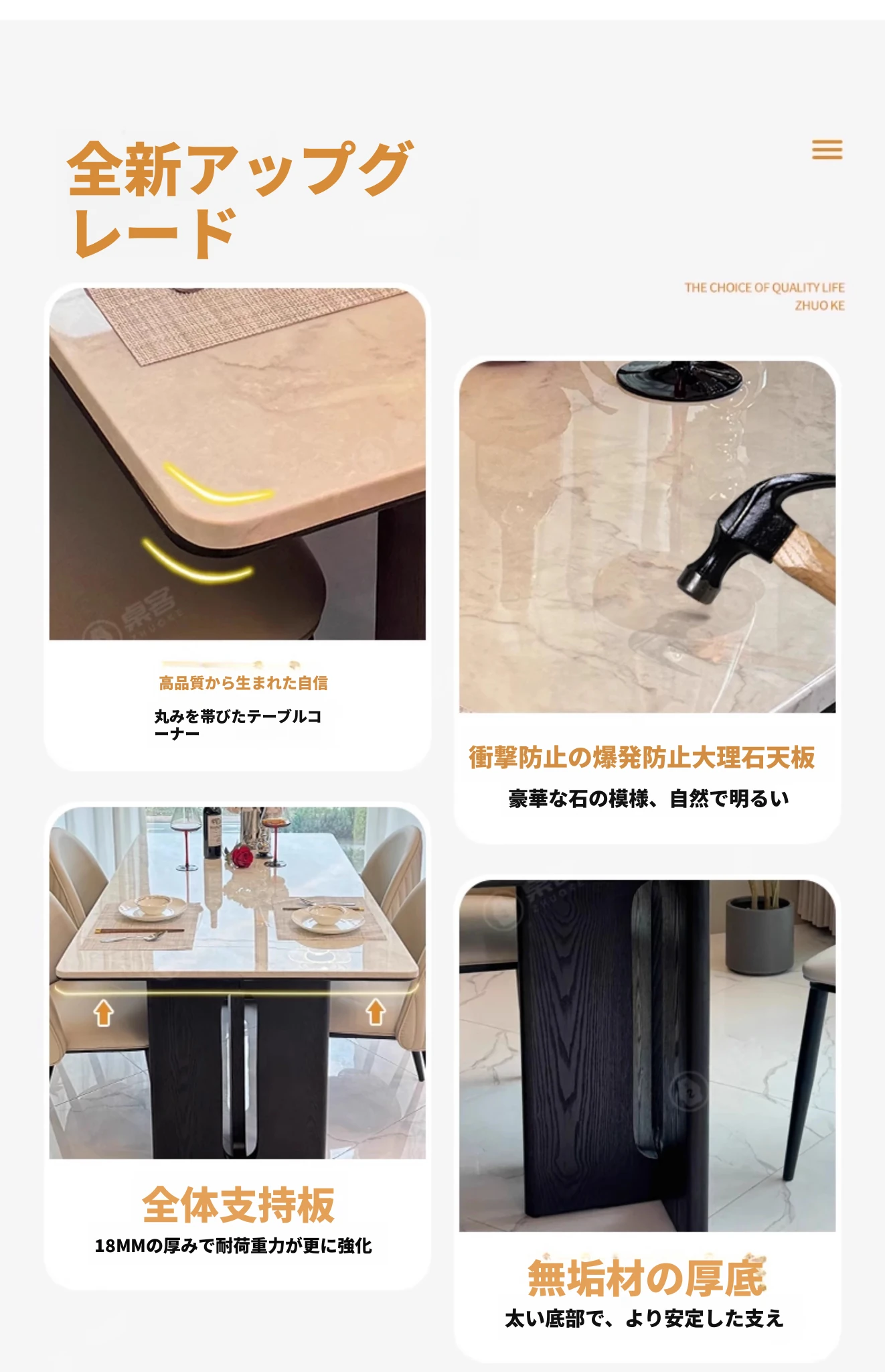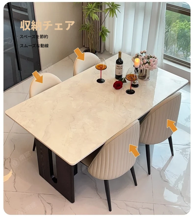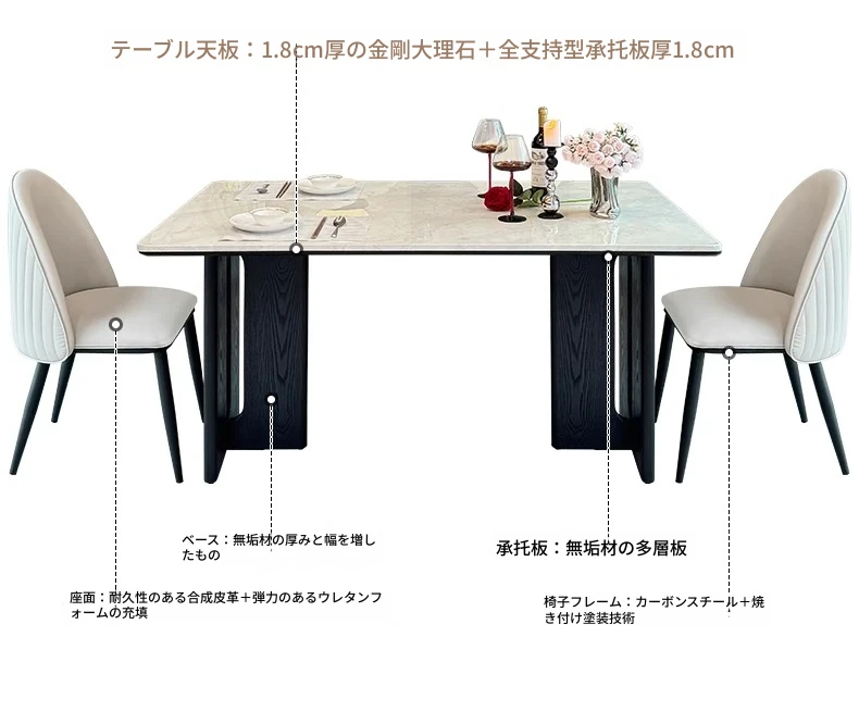 高級シンプル軽奢大理石ダイニングテーブル ブラックローズストーンの贅沢な石纹面 食卓椅子セット 小型住宅に最適なスタイリッシュなダイニングテーブル