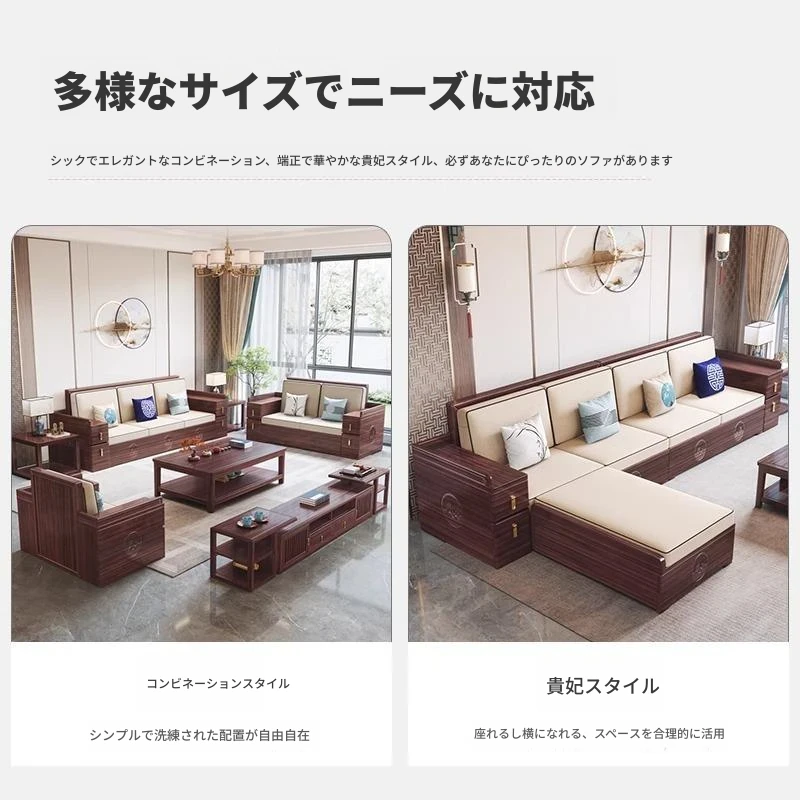 新中式ウッド調ウッドソファーセット - 贅沢なデザインで、居心地の良いリビング空間を演出。W18#仕様で、収納力抜群。お客様をもてなすのに最適なアイテム!
